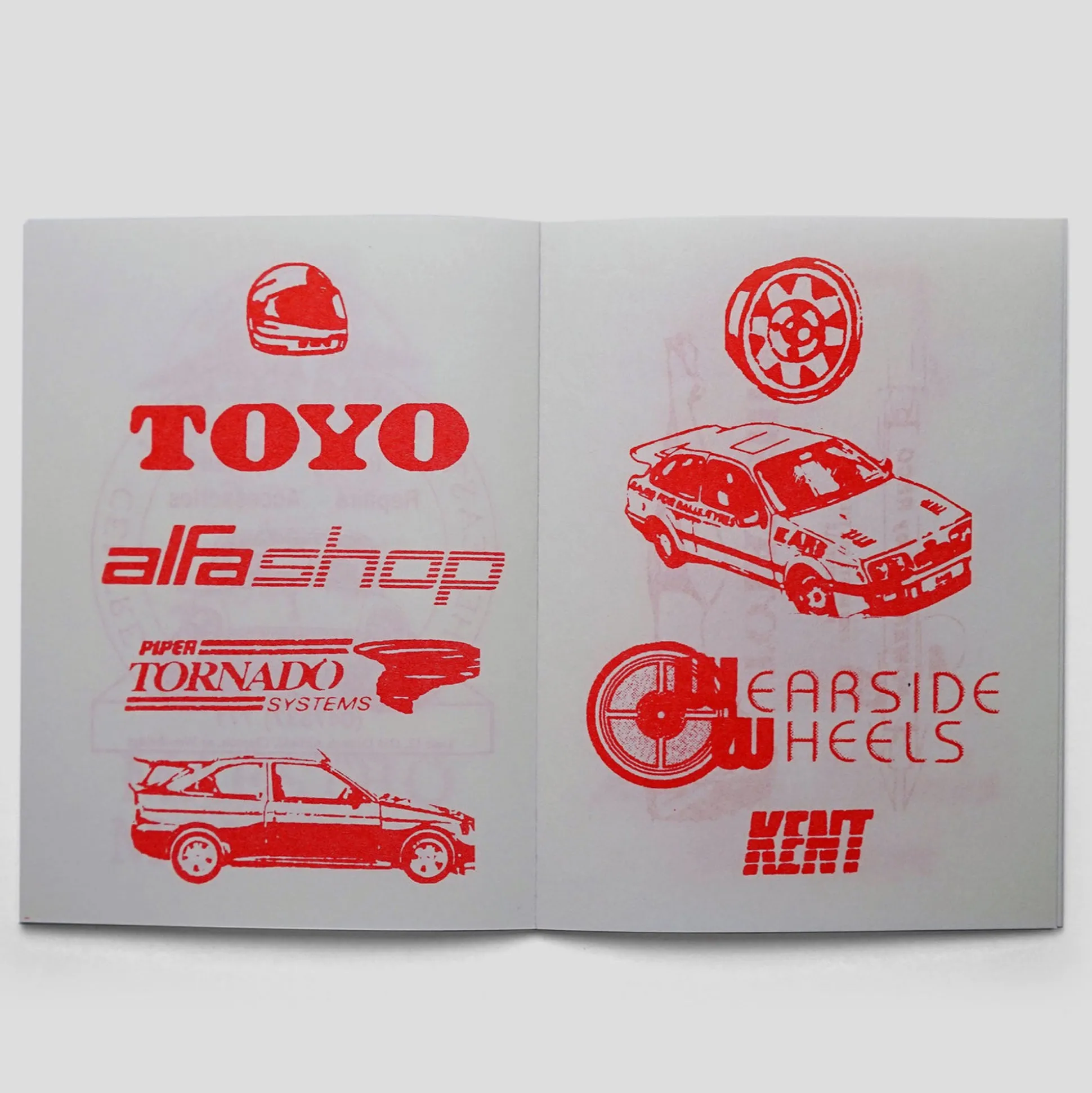 Klasse Wrecks presents their popular graphic zines KFAX to Pass~Port Store & Gallery. Planet Luke dives in with the driving gloves and delves into the early 90s scene of British car modification. KFAX15 is dripped in a glossy Ferrari red and comes with ‘go faster’ stripes naturally, strictly for the boy racers.