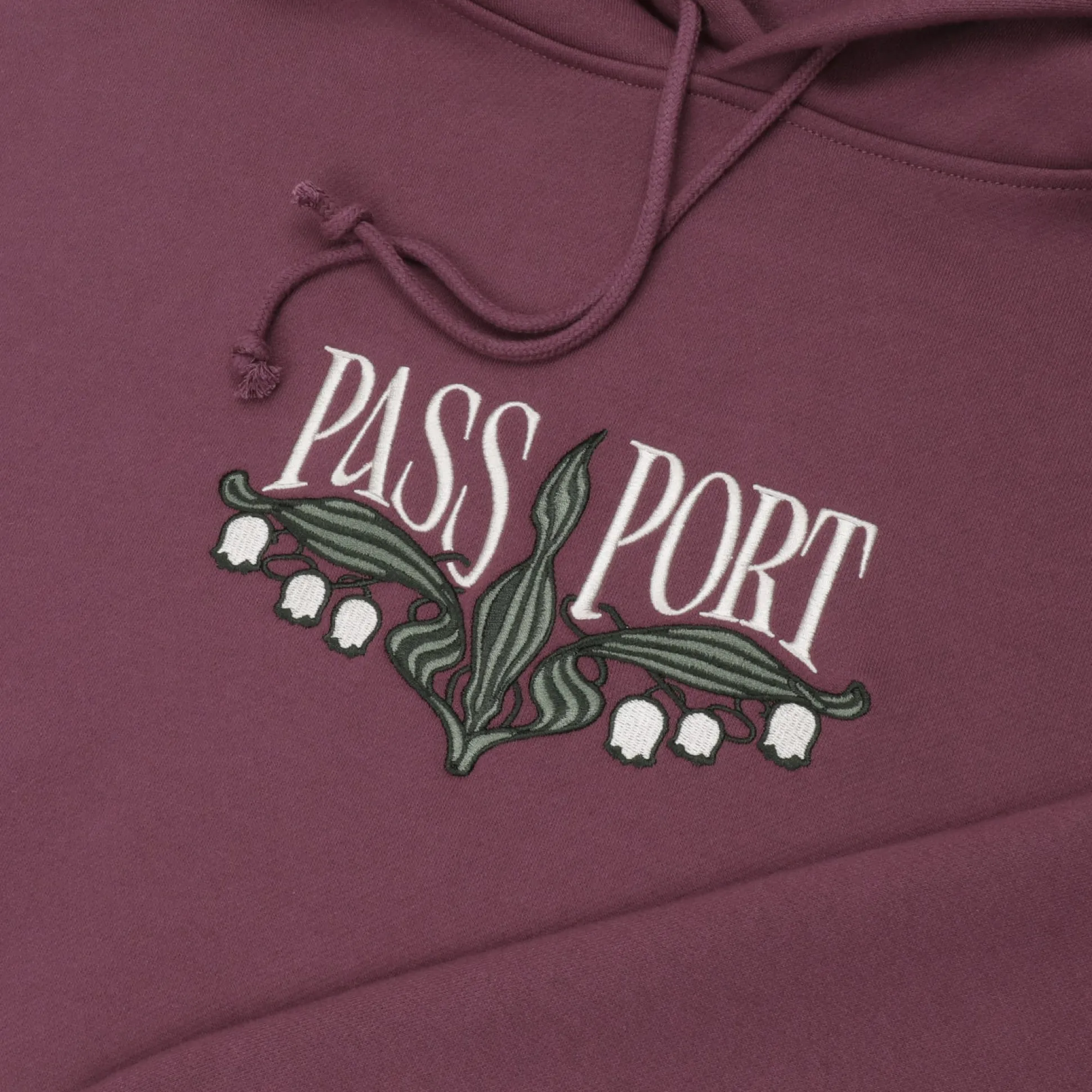 Pass~Port Lily of The Valley Hoodie from range #43. The Pass~Port jumper is made from a cotton polyester blend and features embroidery on front in our classic hoodie fit.