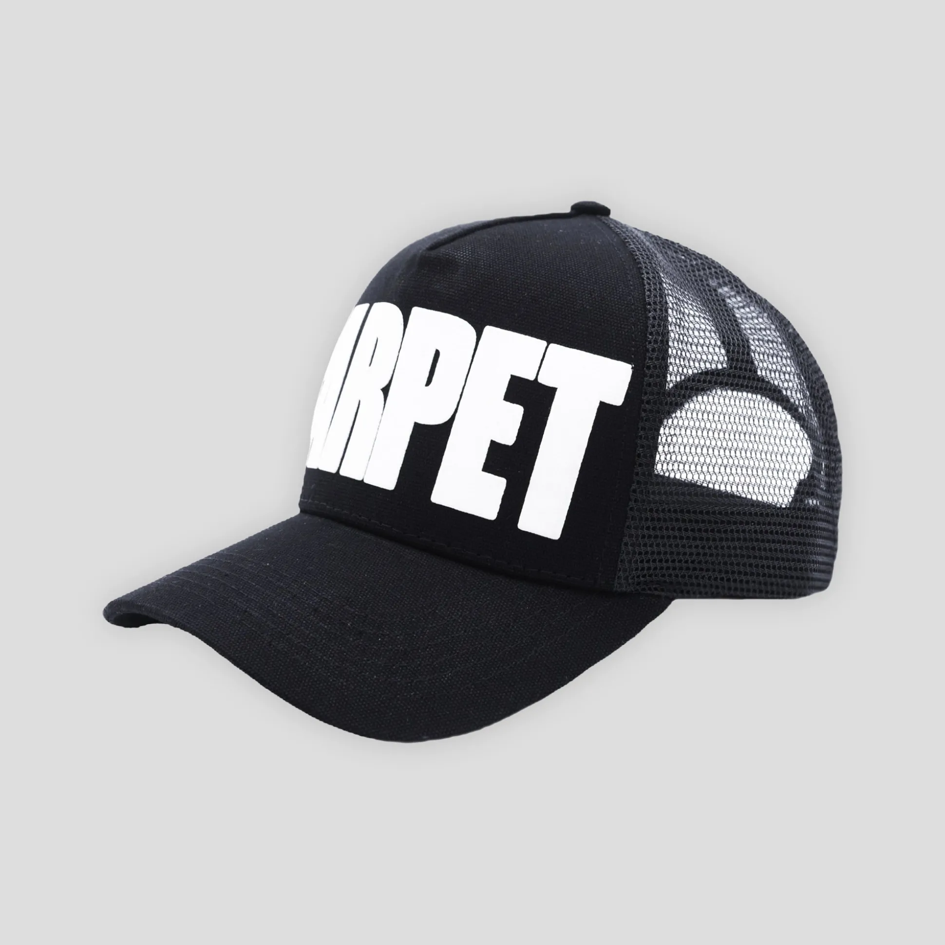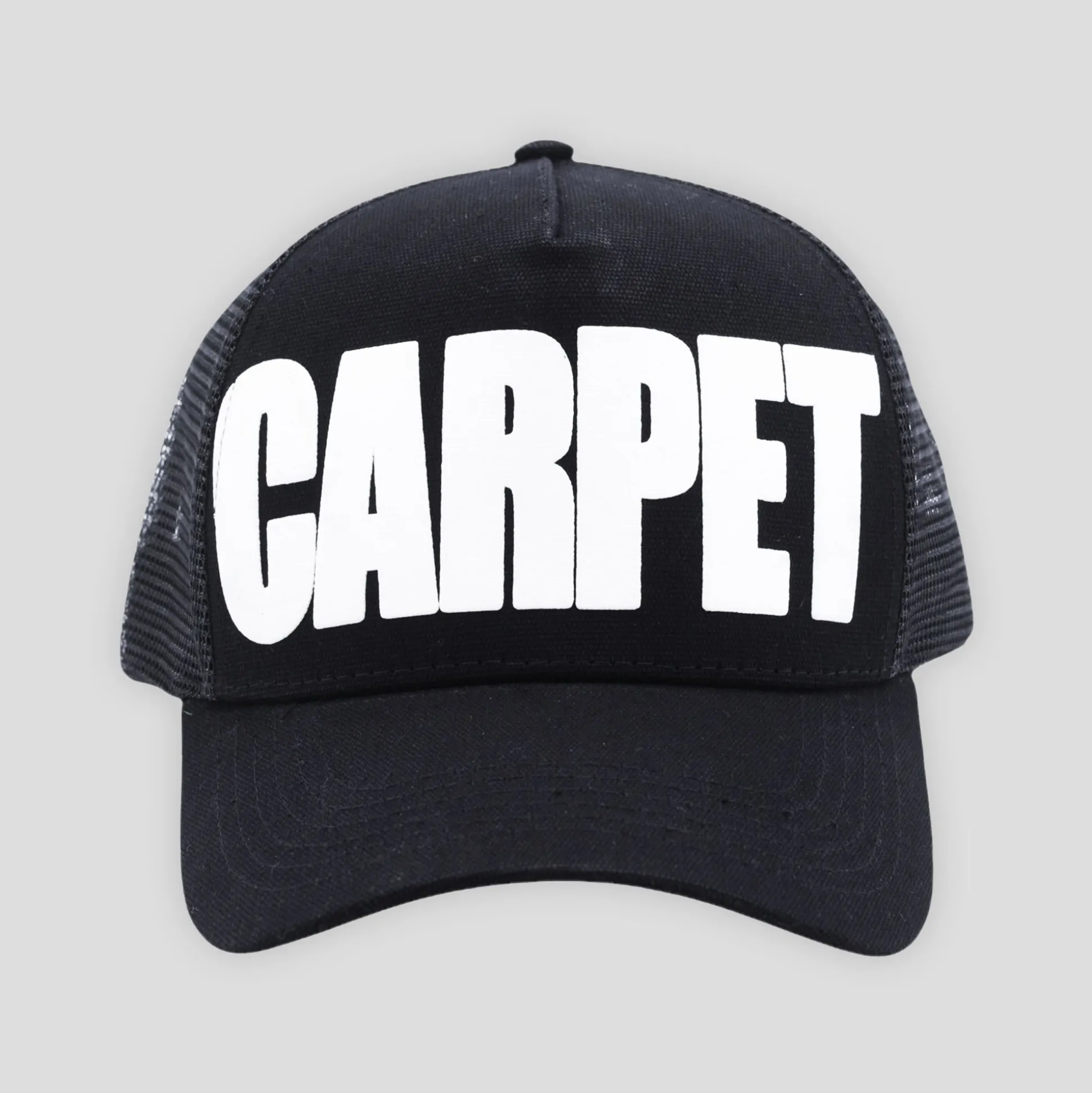 New Carpet Company season 19 drop 2 out now in at Pass~Port Store & Gallery. This cap is a trucker style cap with carpet branding on front and back strap adjustment.