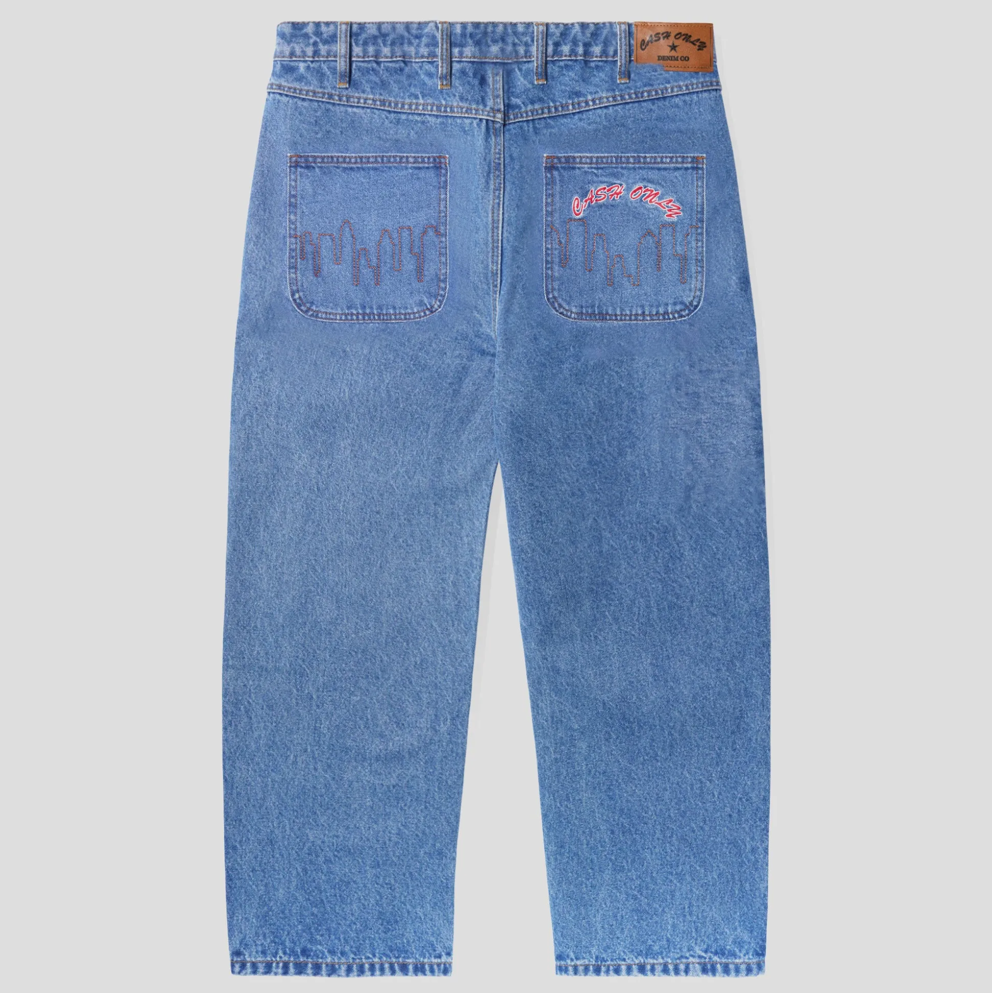 Cash Only returns to Pass~Port Store and Gallery with Drop 13 available now. The Cash Only baggy denim pants is made from 100% cotton denim and fits baggy with slight taper. The Logo Denim Jeans also feature embroidery on front and back as well as contrast gold stitching.