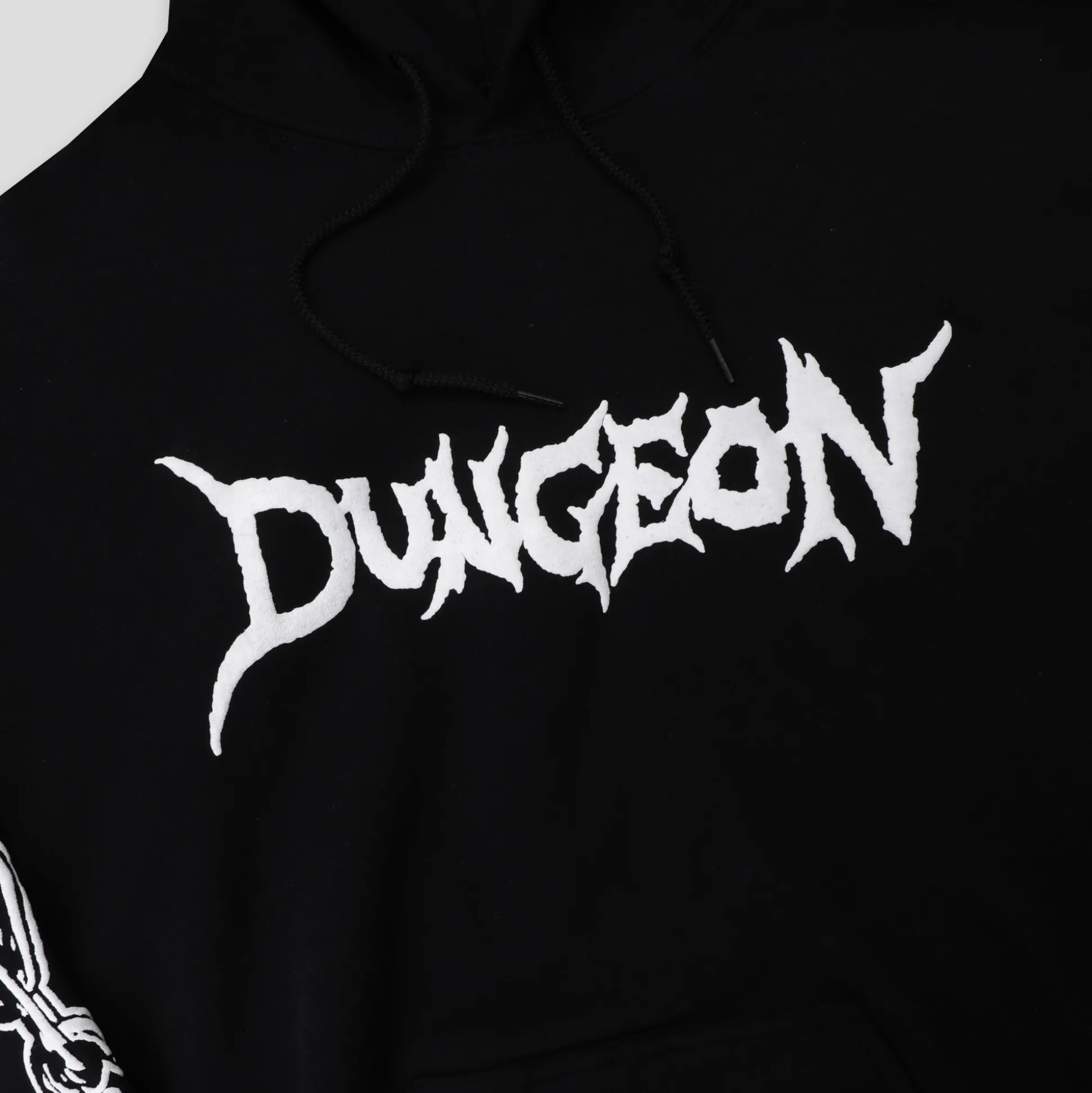 Working with brands such as Aries, Carhartt and Beams, artist Funeral French offers the newest range of Dungeon to Pass~Port Store & Gallery. The Dungeon Break The Chain Logo hood features a puff print on sleeve and front.