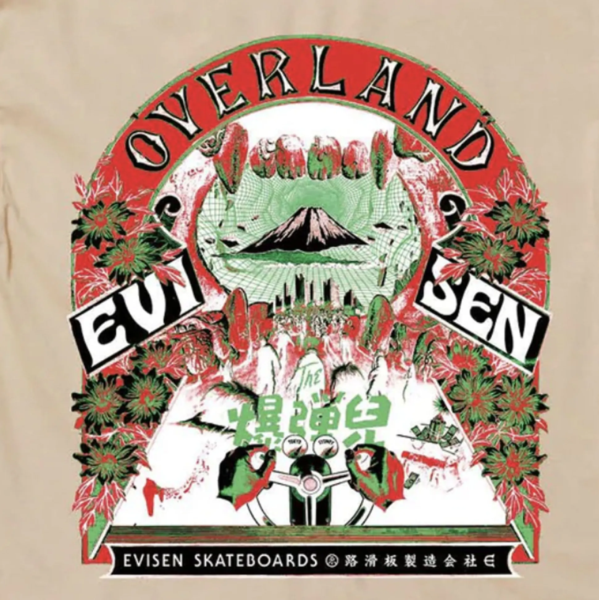 Japanese based skate label Evisen release their new range to Pass~Port Store & Gallery. The Overland tee in sand is made from 100% cotton with screen printed graphic on front.