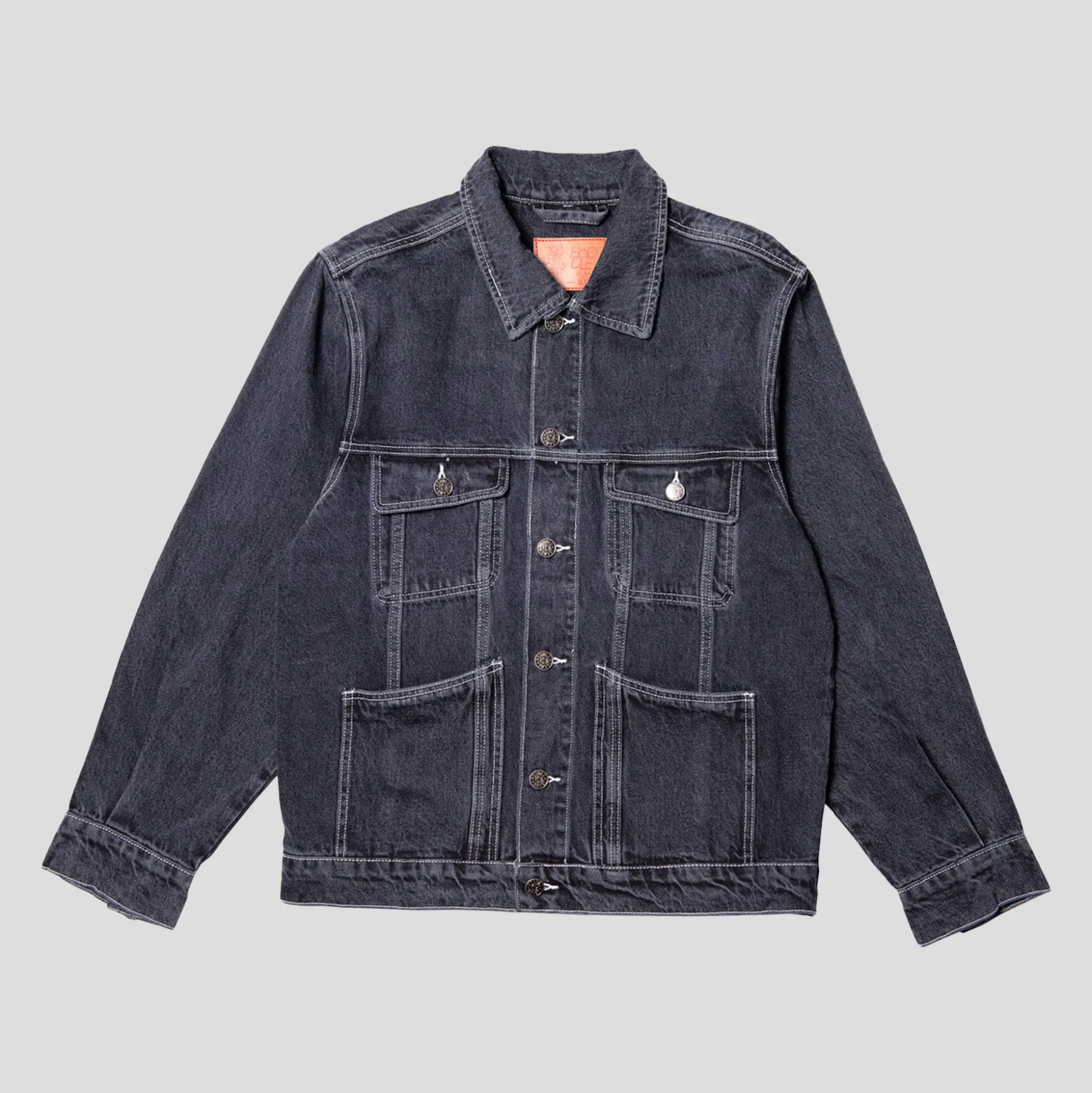 Melbourne based brand Hoddle has released their Range 17 to Pass~Port Store & Gallery. The Denim Trucker Jacket is a 12 ounce denim and features buttoned chest pockets and lower patch pockets as well as signature Hoddle jean embossed buttons.