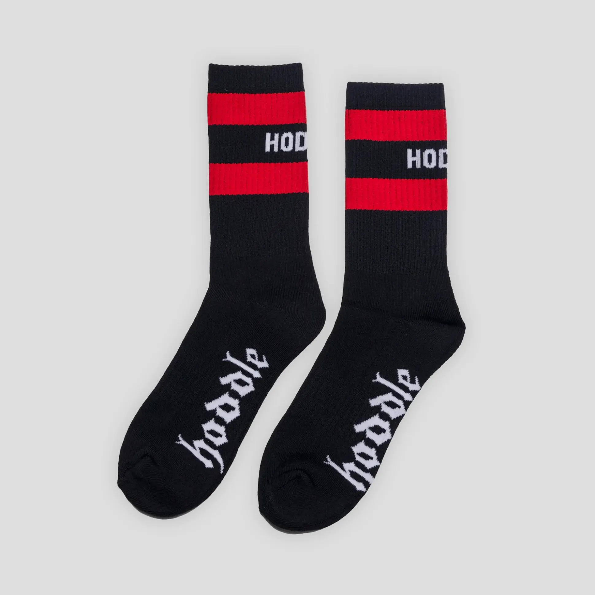 Melbourne based skate label Hoddle offers their Range 22 to Pass~Port Store & Gallery. The Old English Socks are a calf-high rib knit stretch cotton-blend socks with jacquard logos.
