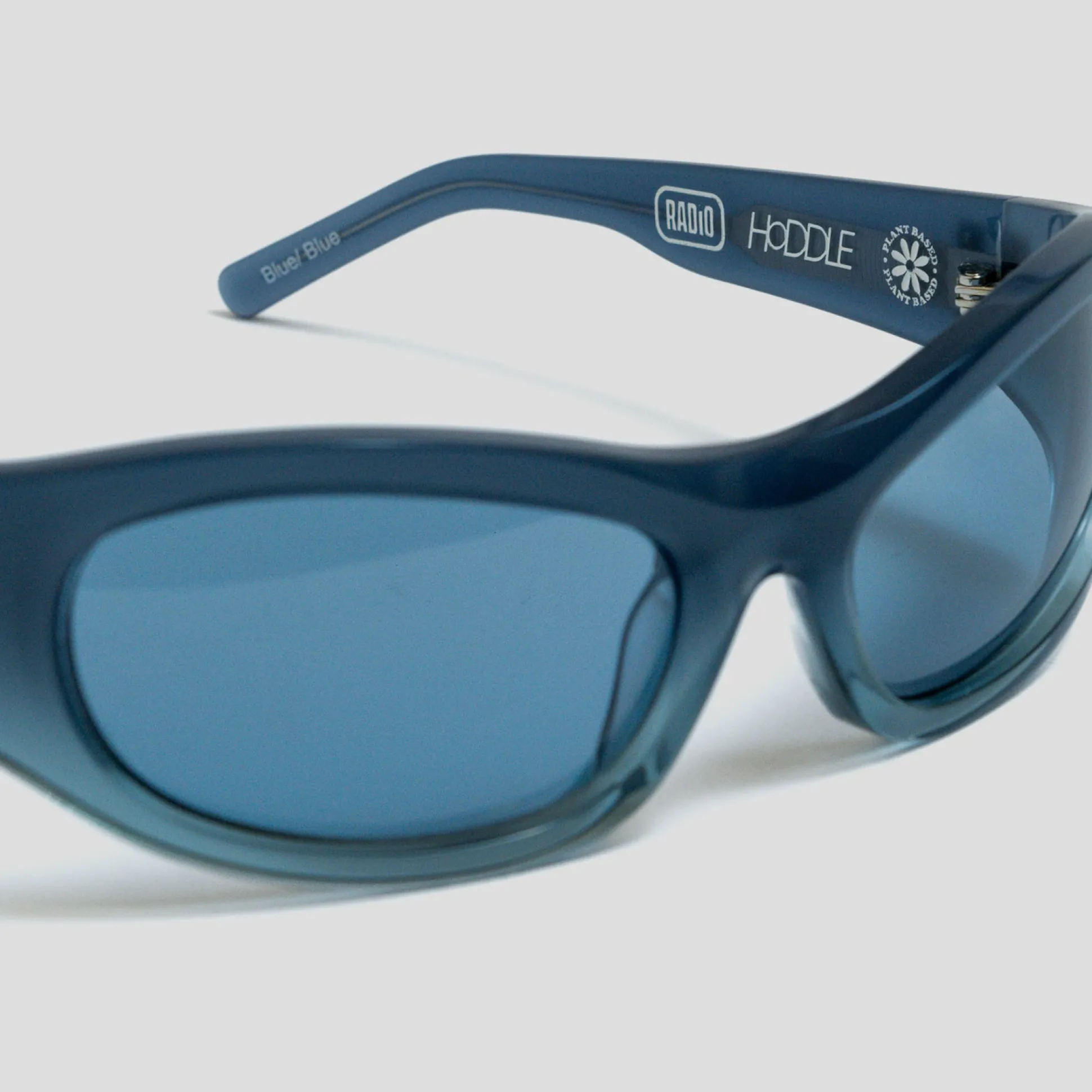 The graphics are driven by Hoddle and Radio Eyewear’s interest in old record covers and flyers. The glasses feature Hoddle’s signature brand mark ‘H’ Logo in silver metal on each temple. Radio’s signature Sound Reflection temple core also features on the internal arms.