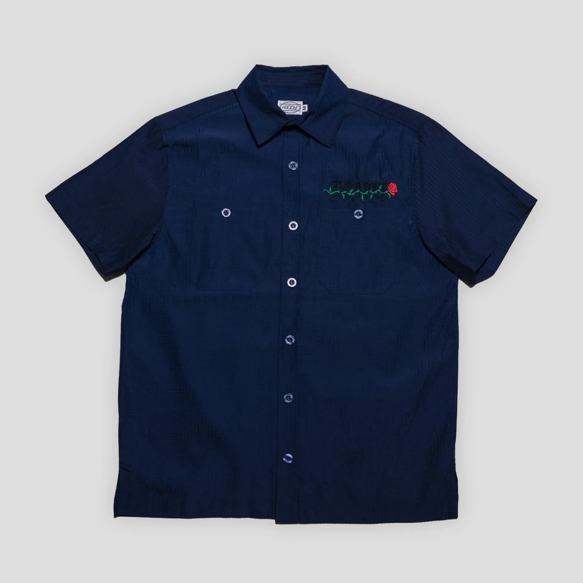 Melbourne based skate label Hoddle offers their Range 22 to Pass~Port Store & Gallery. The Thorn Seersucker short sleeve shirt is a light weight collared shirt made from seersucker fabric with embroidery on front.