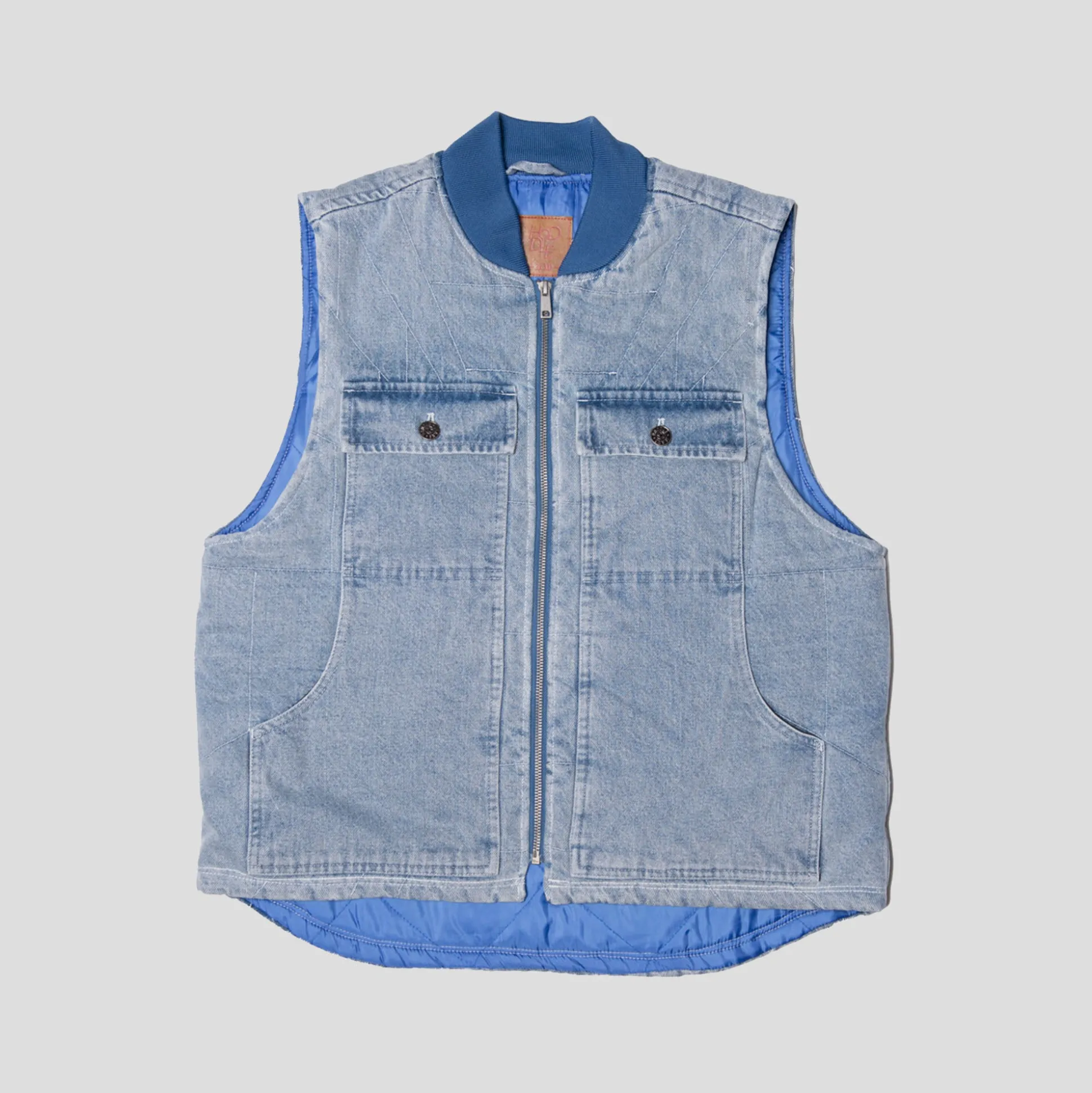 Hoddle Zip Up Carpenter Vest – Blue Denim Wash