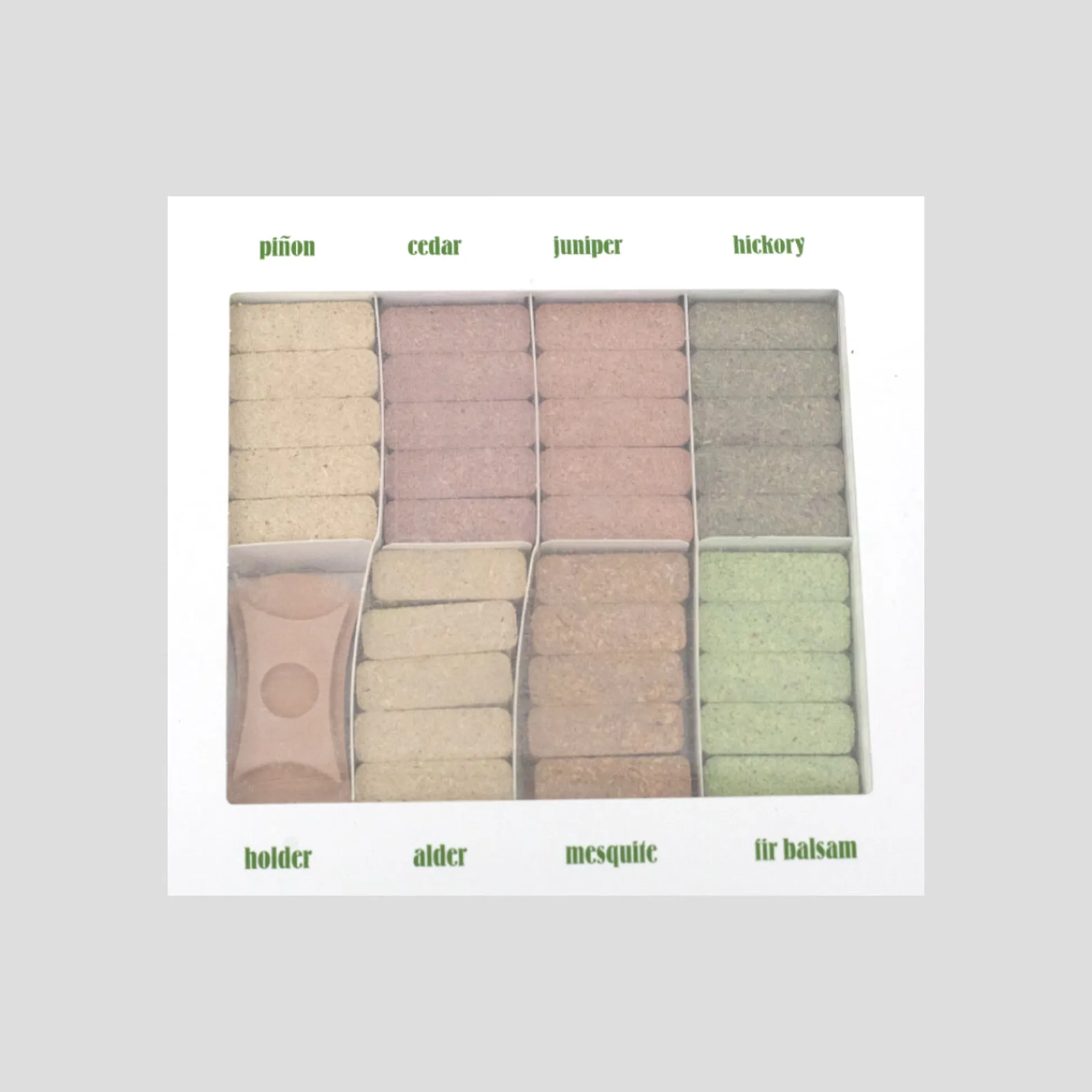 - Scent: Alder, Pinon, Cedar, Juniper, Hickory, Mesquite and Fir Balsam