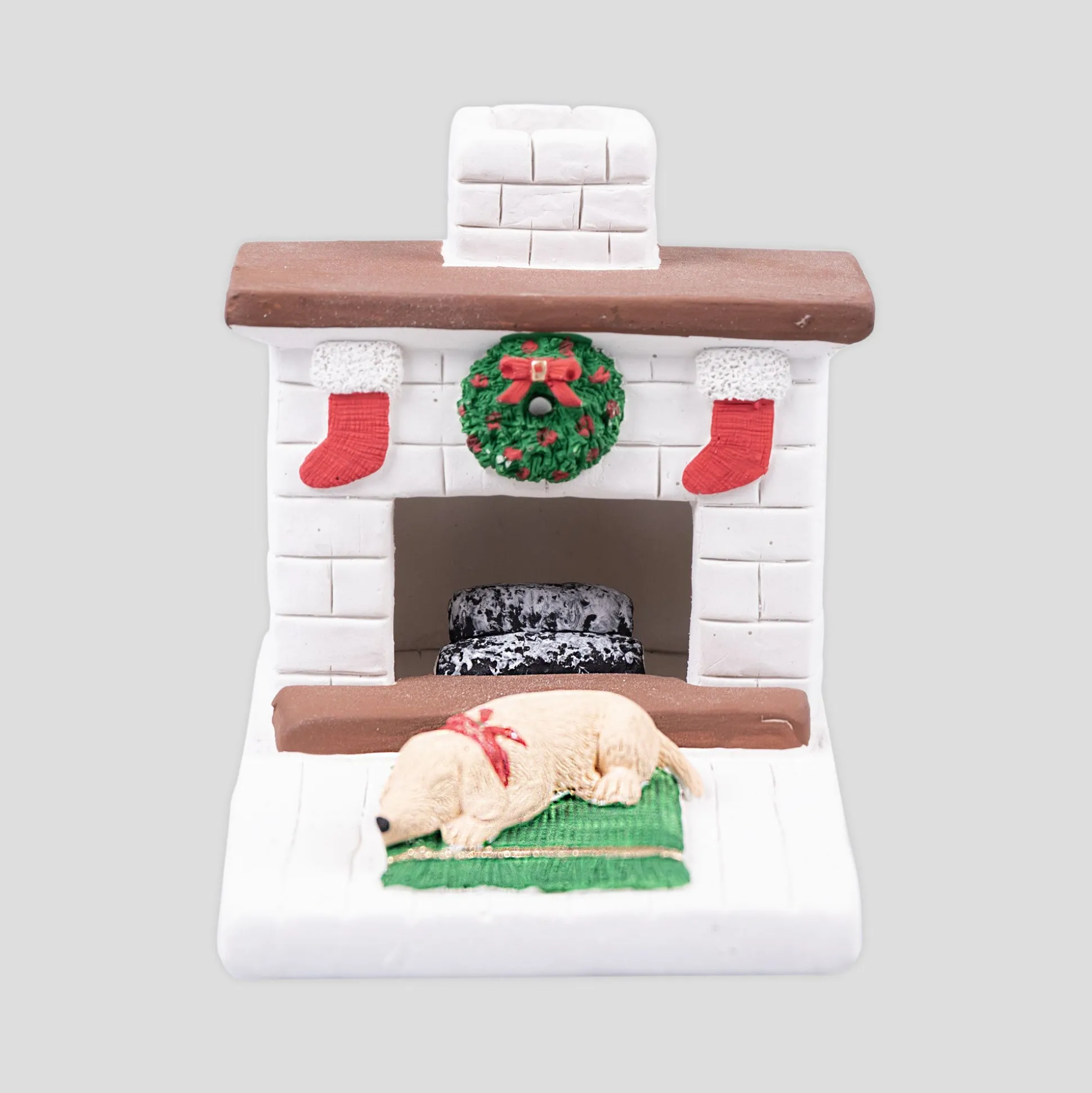 The Incienso De Santa Fe Corner Fireplace Chamber is a handmade incense chamber for bricks. This fine detailed piece is a take on a fireplace over the holiday period of Christmas. The pack also includes 20 pack of incense bricks.