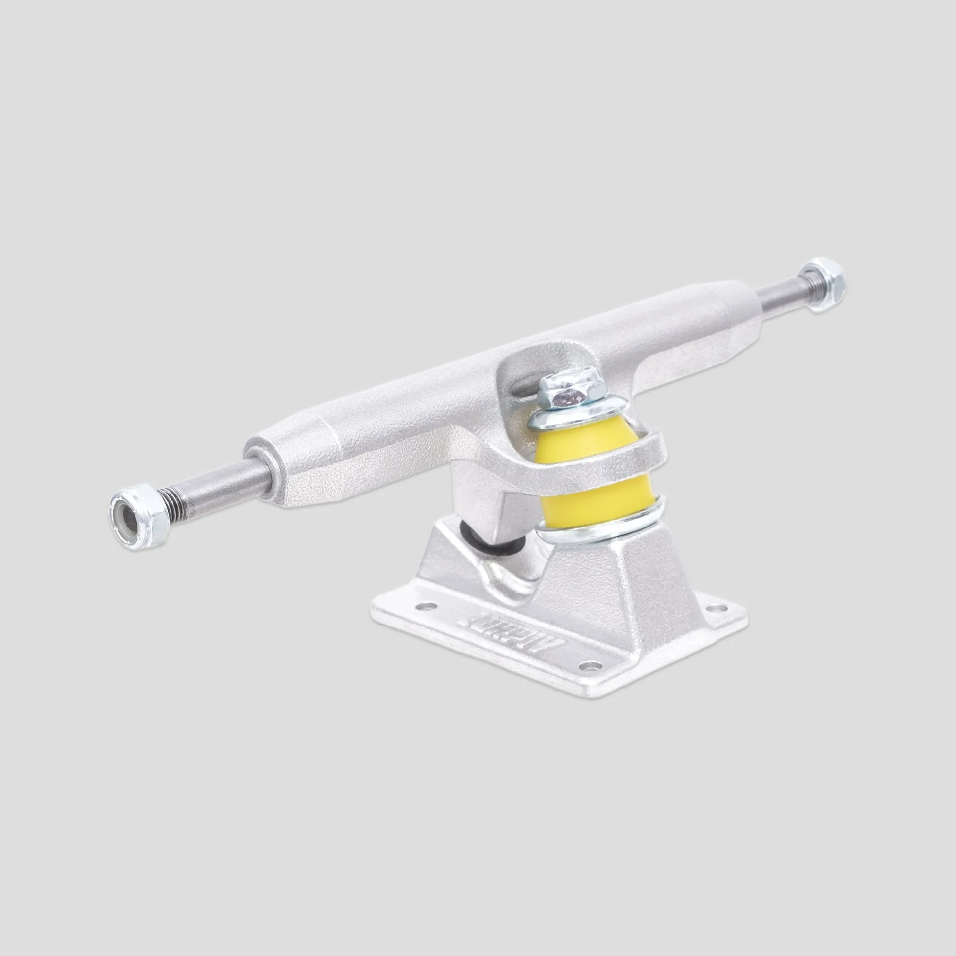 The Lurpiv Solid Truck features a T6 heat-treated baseplate and hanger with built in hanger spacer. The new and improved construction offers new kingpin in SMC435 steel and axle in SCM440 steel. The bushings are 92A hardness and come in a yellow colouring. Price is for a set of trucks (2 trucks)
