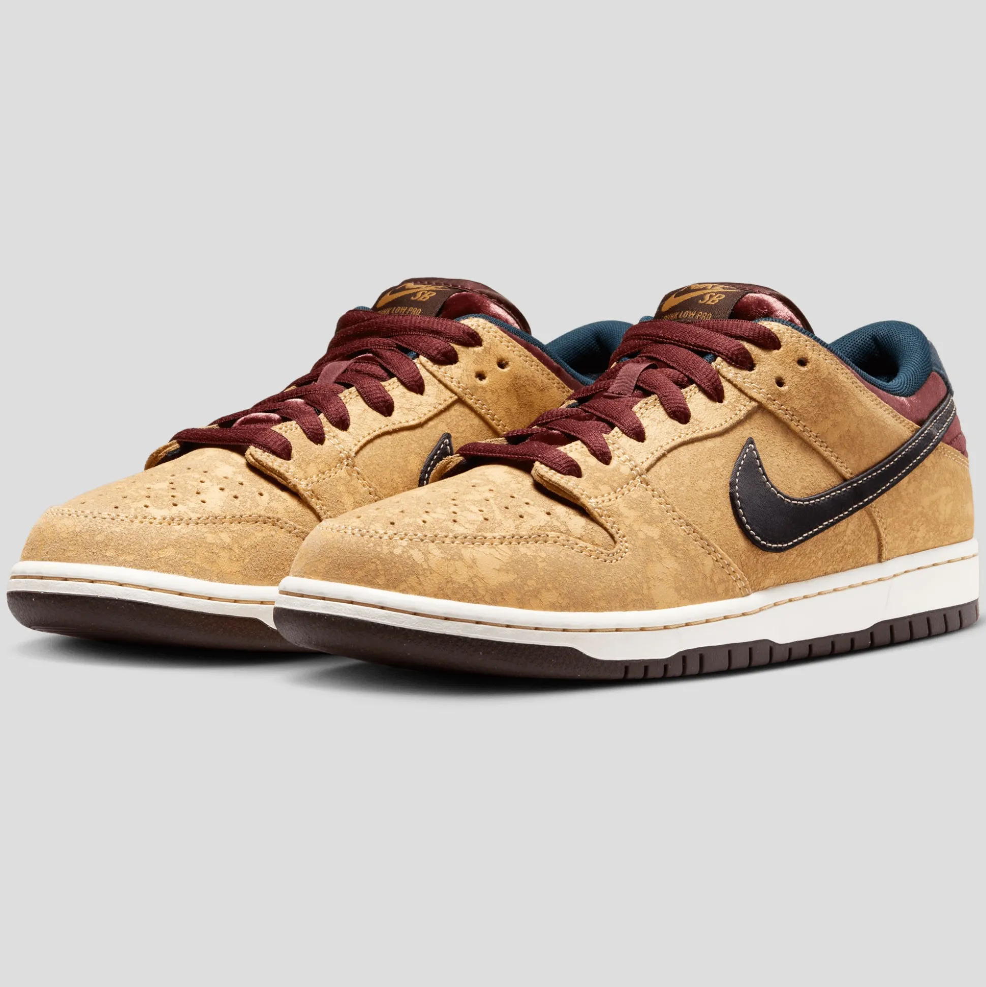 A special Nike SB Dunk Low draws distinct inspiration from the rich history of Parisian cinema, merging artistic elegance with iconic Dunk style. A vintage treatment on the Celestial Gold leather upper ushers in texture and character, nodding to the classic velvet ropes and seats, it comes equipped with plush velvet accents in lavish Dark Team Red and Armoury Navy.