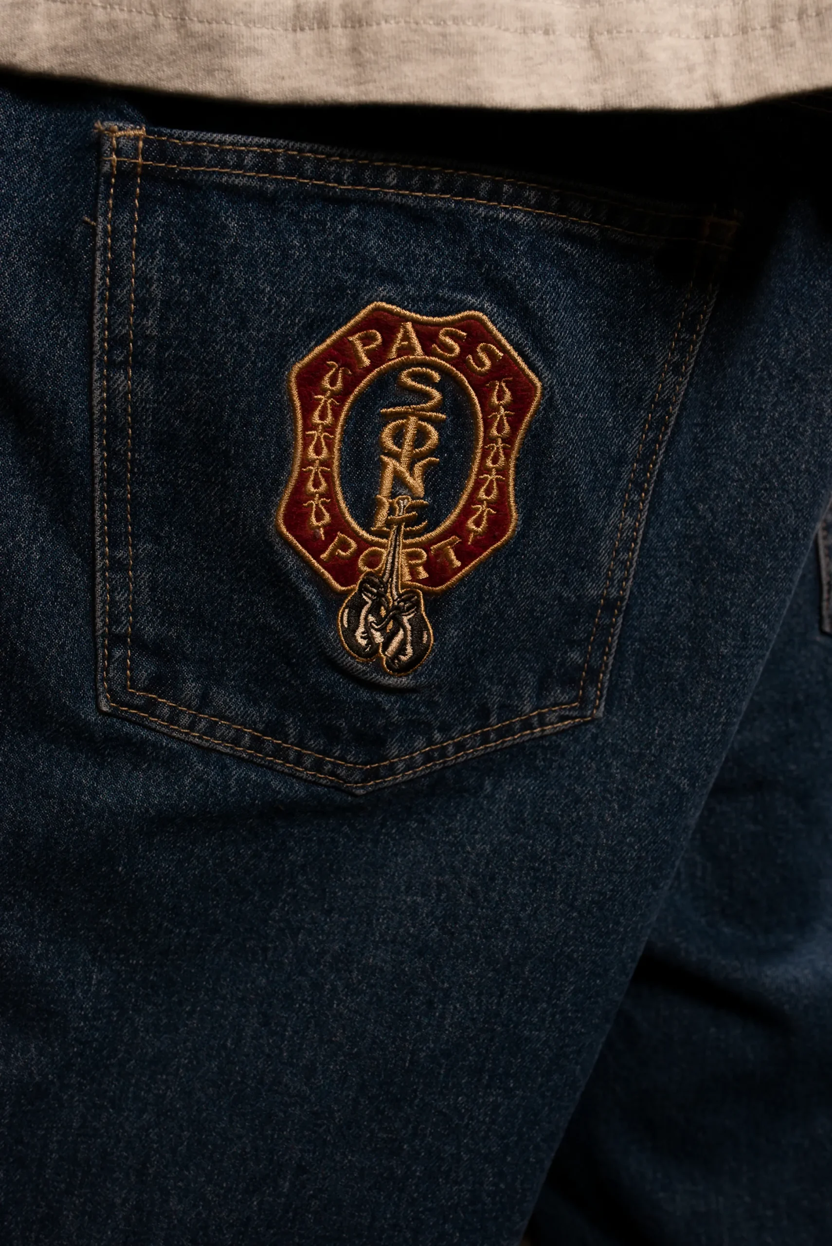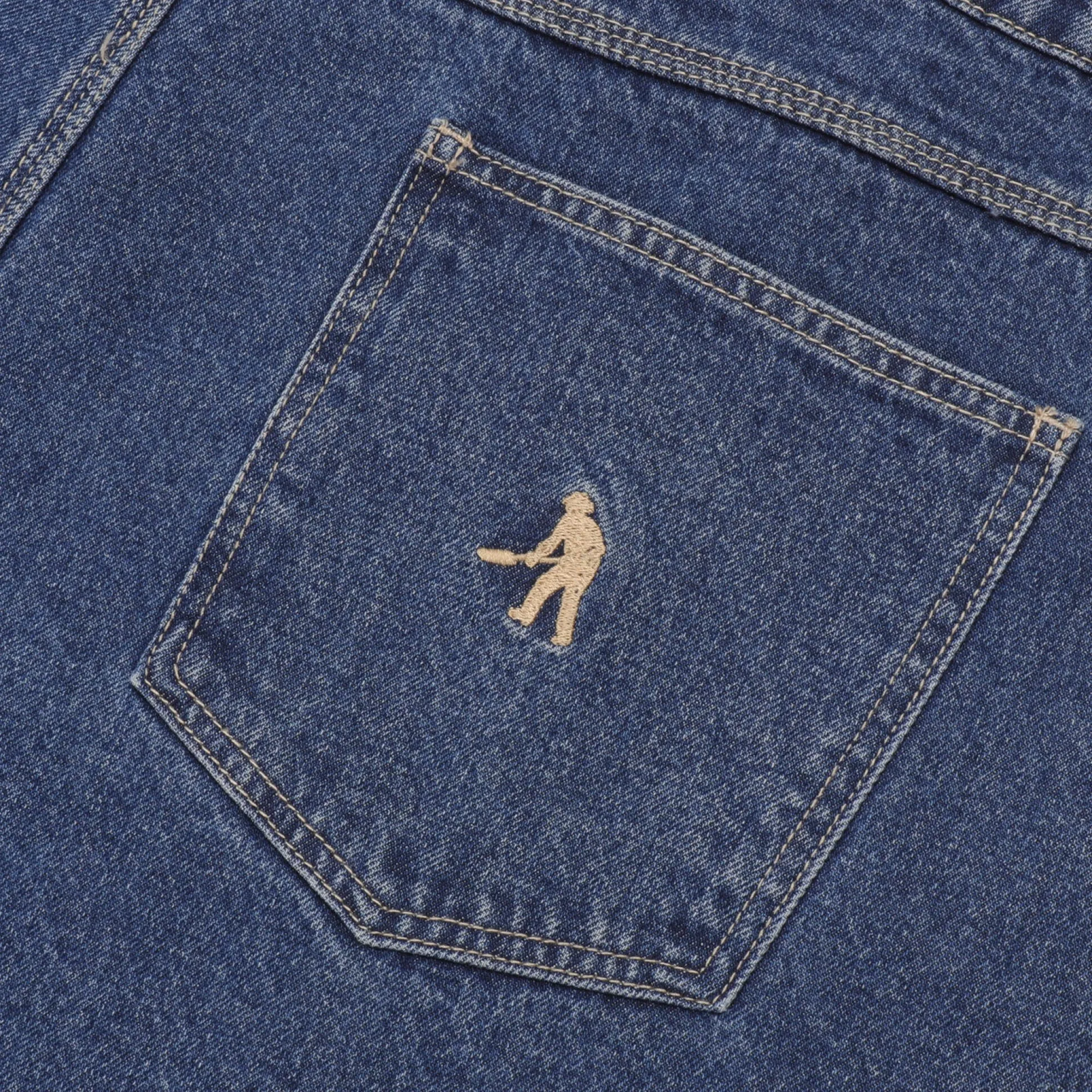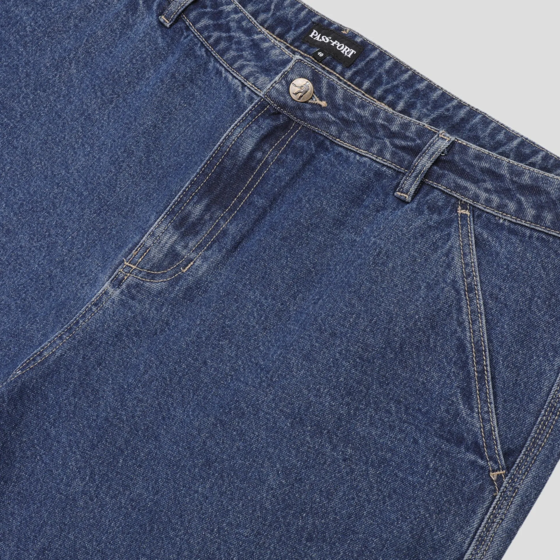 The Workers denim shorts is made from 100% cotton 16oz rigid denim and fine yarn for extra strength. The denim jean features gold contrast stitching, double direct embroidery on back pockets as well a faux leather label on waist.