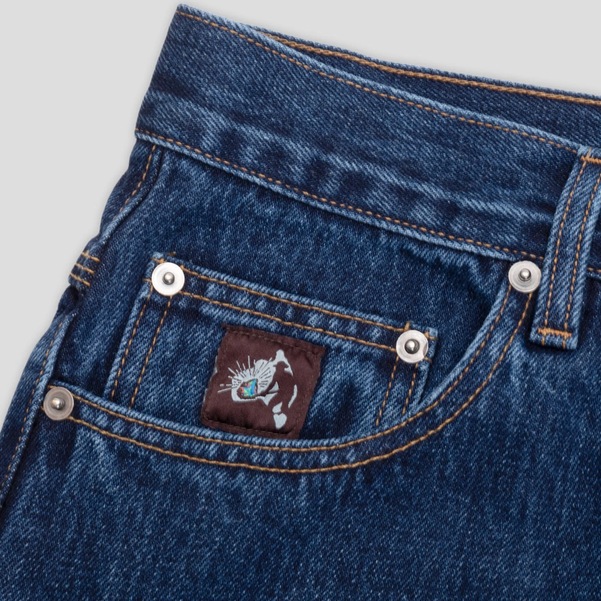 Australian Made Denim Jean from the Pass~Port Australian Manufactured Range #1. The Pass~Port pant is made from a 12 oz cotton denim that features gold triple stitched for extra strength. The Pass~Port jeans have back pocket tilde detailing, woven label on coin pocket with silver rivets & custom silver button.
