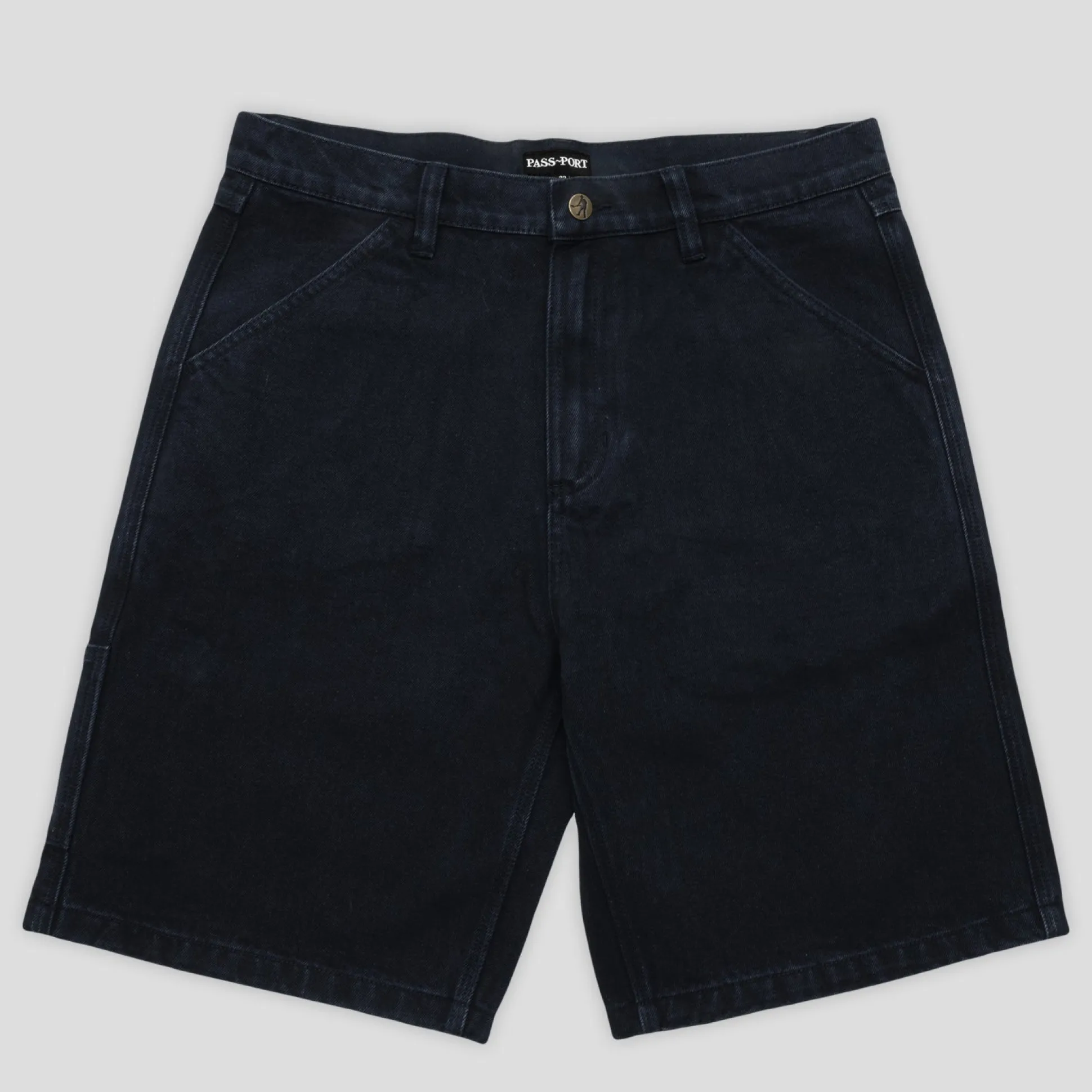 Pass~Port Recycled Cotton Workers Club Jean Short from range #44. The Recycled Cotton Workers Jean Short is made from 20% Recycled Cotton 80% Cotton 16oz rigid denim. The denim short features a digger embroidery on back pocket as well a faux leather label on waist.