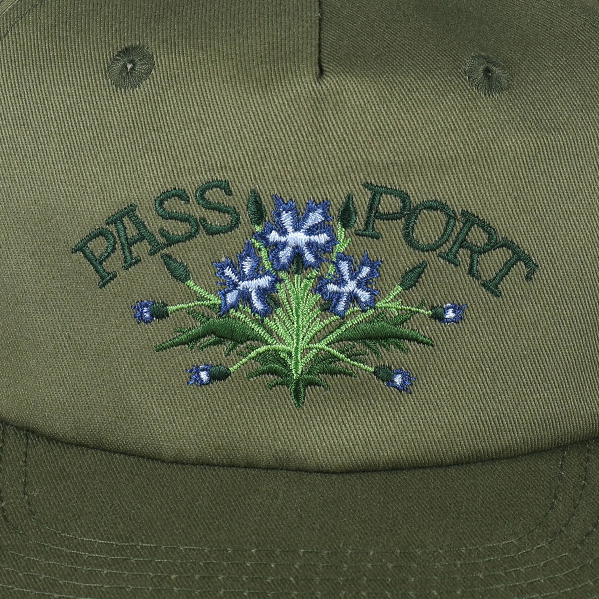 Pass~Port Bloom workers cap from range #41. The Bloom workers cap is a 5 panel construction made from 100% cotton twill which features direct embroidery on front and is finished in the classic Pass~Port workers cap fit.