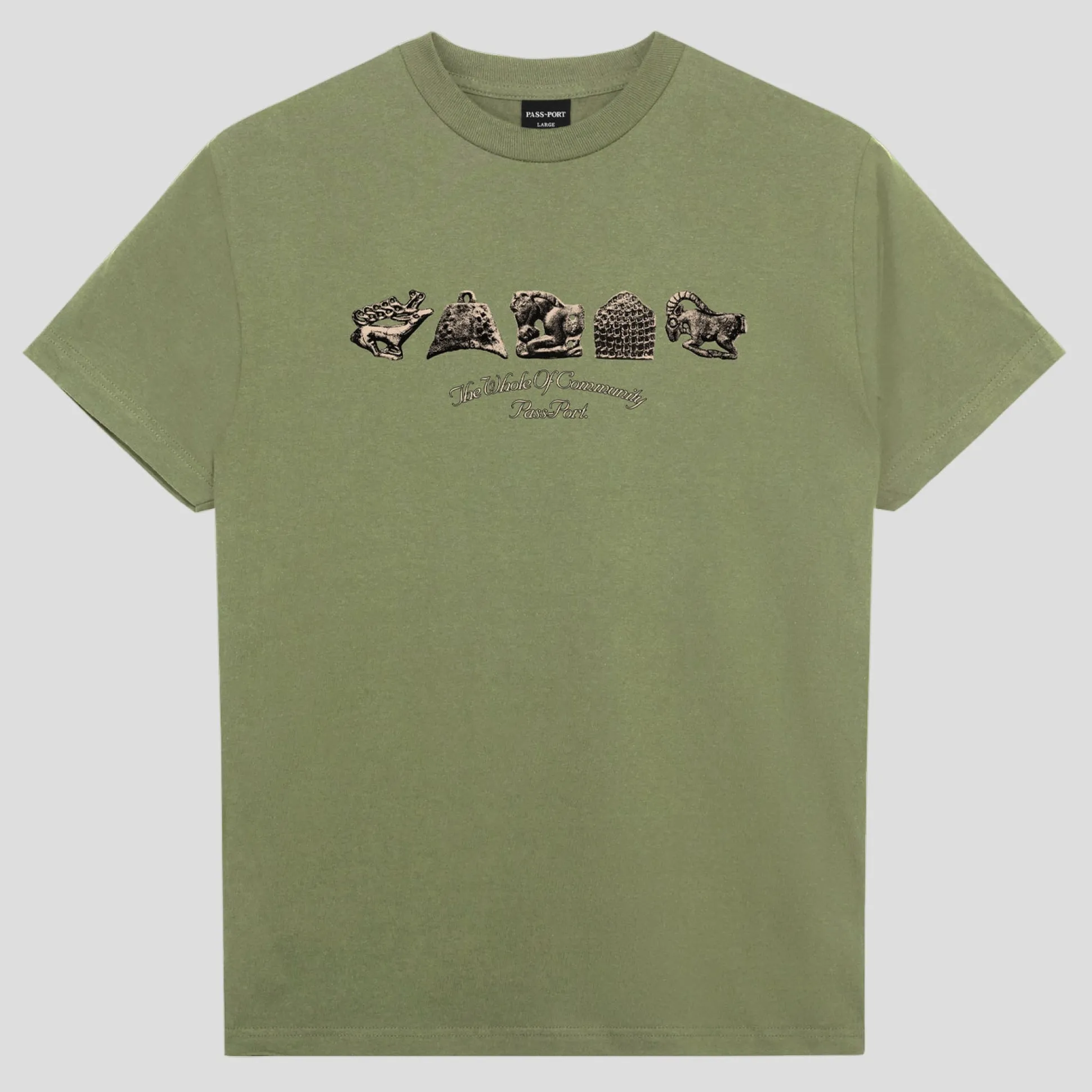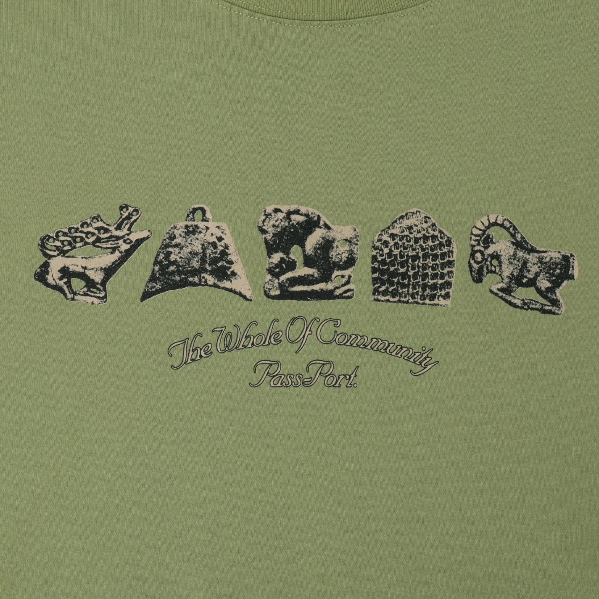 Pass~Port Bronzed Age tee in pistachio is part of range #41. The Bronzed Age Pass~Port T-shirt is made from 100% cotton and features screen printed graphic on front and is finished in the classic Pass~Port tee fit.