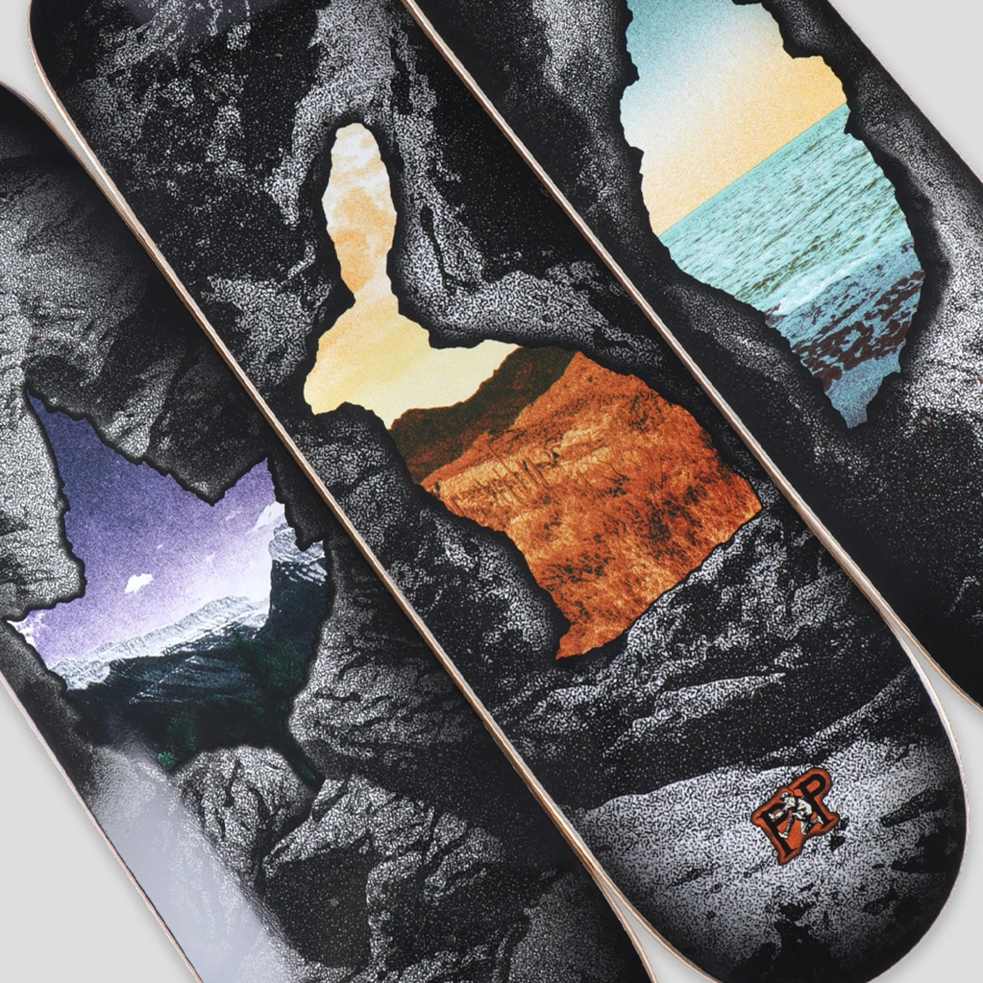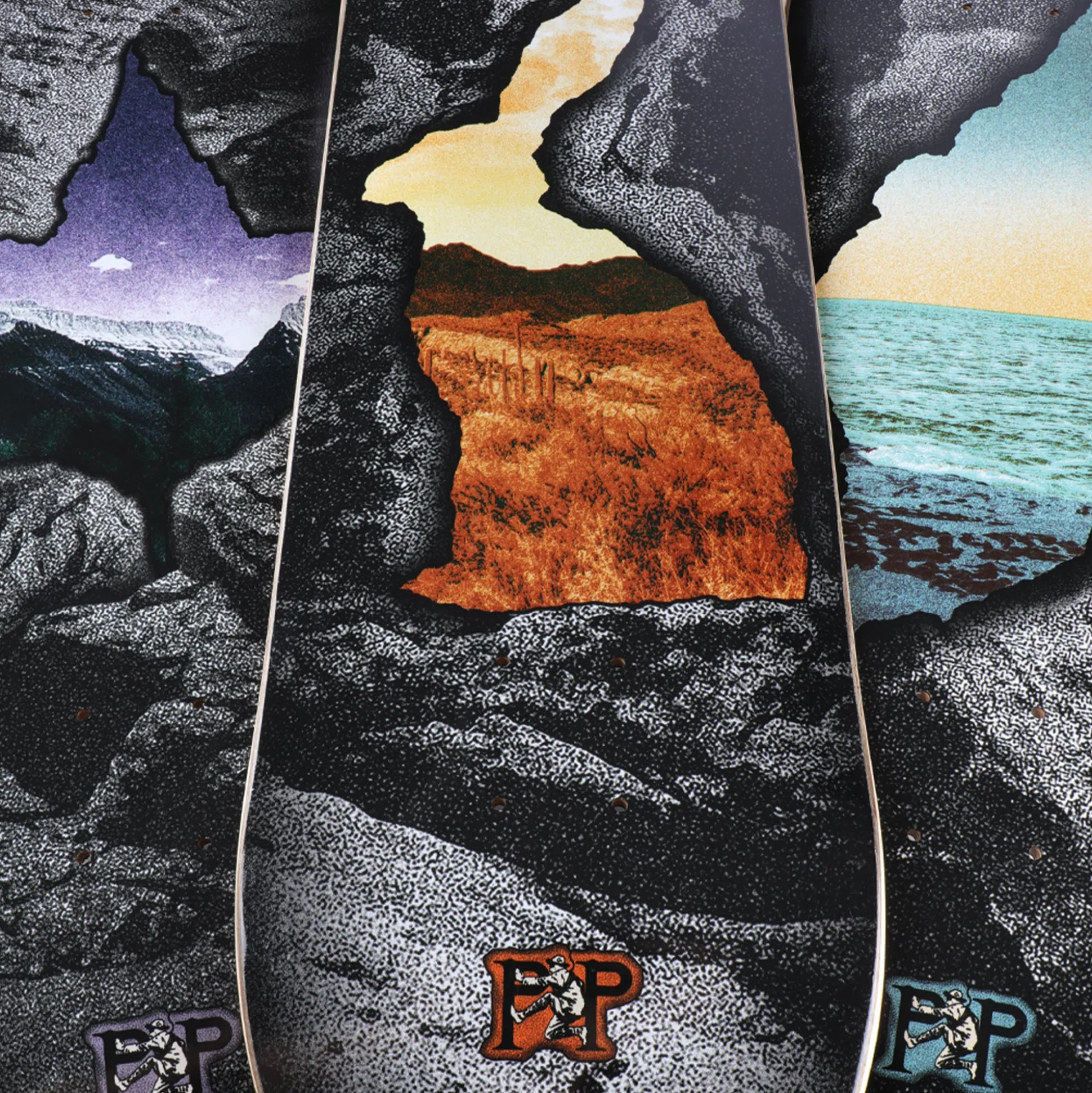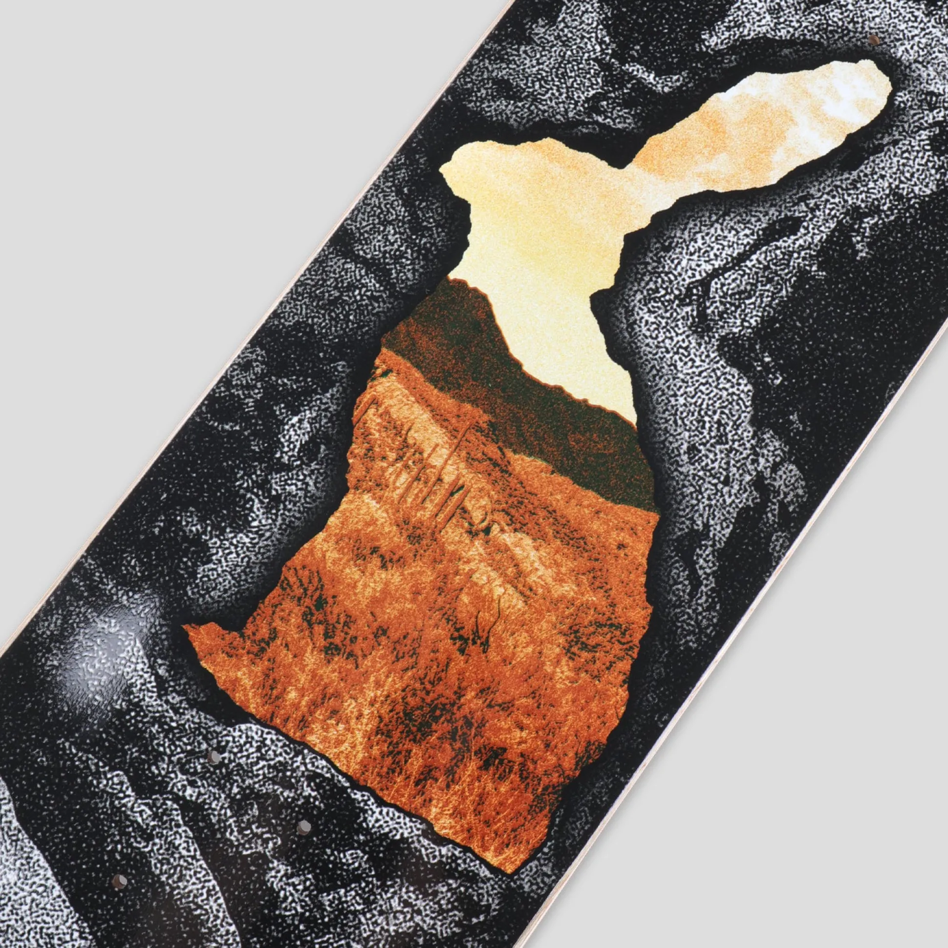 Pass~Port Cave~in series for range 44 features gritty grottos with beautiful vistas. Aesthetically inspired by vintage outdoor guidebooks & risograph print techniques. The deck is cut and pressed to the classic Pass~Port shape. The board features full concave medium kick shape and is pressed in Mexico with premium-quality materials.