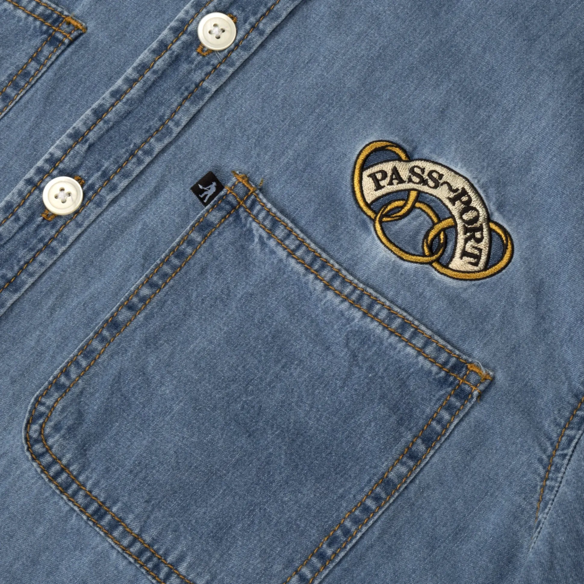 PASS~PORT “COMMUNAL RINGS” DENIM S/S SHIRT WASHED LIGHT DENIM