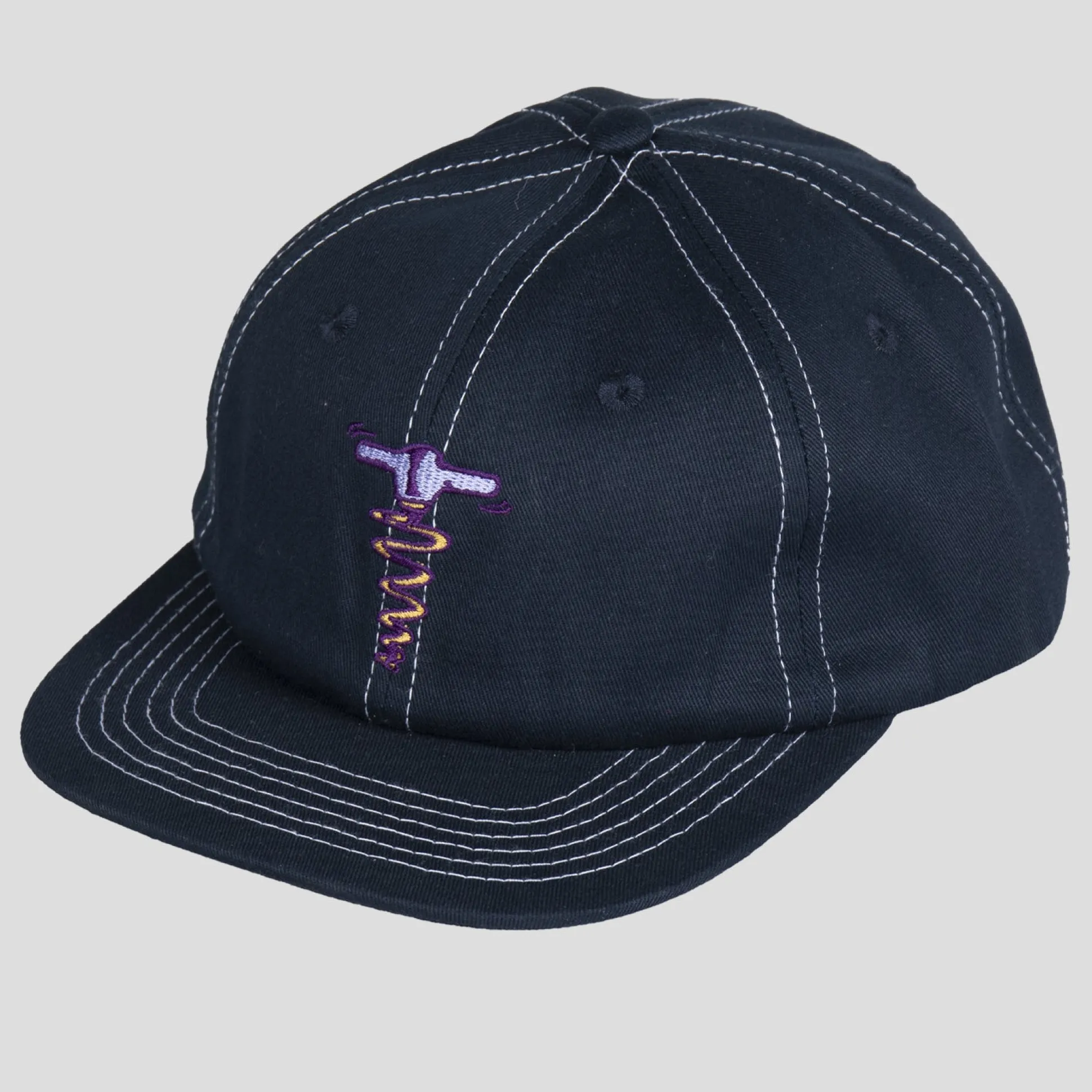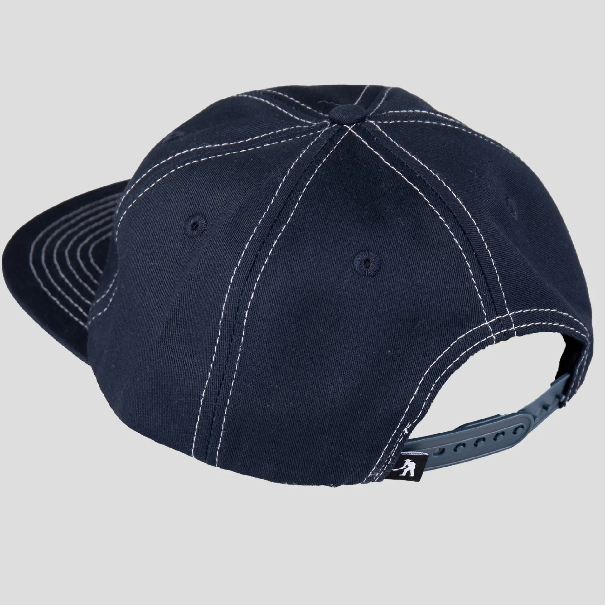 Pass~Port Corkscrew 5 panel hat in navy from range #38. Made from 100% cotton with tonal stitching & embroidery.