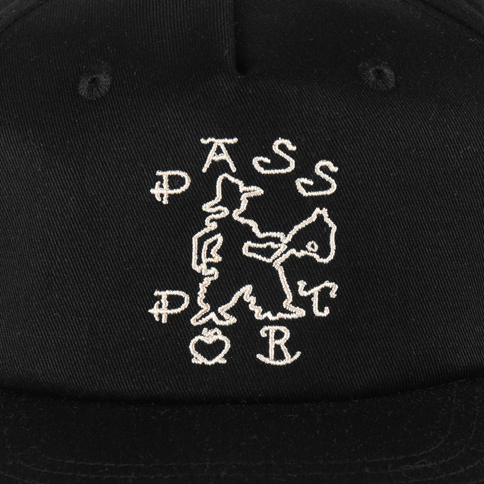 Pass~Port Cowpoke workers cap from range #43. The Pass~Port hat is a 5 panel construction made from 100% cotton twill and features direct embroidery on front with strap back adjustment.