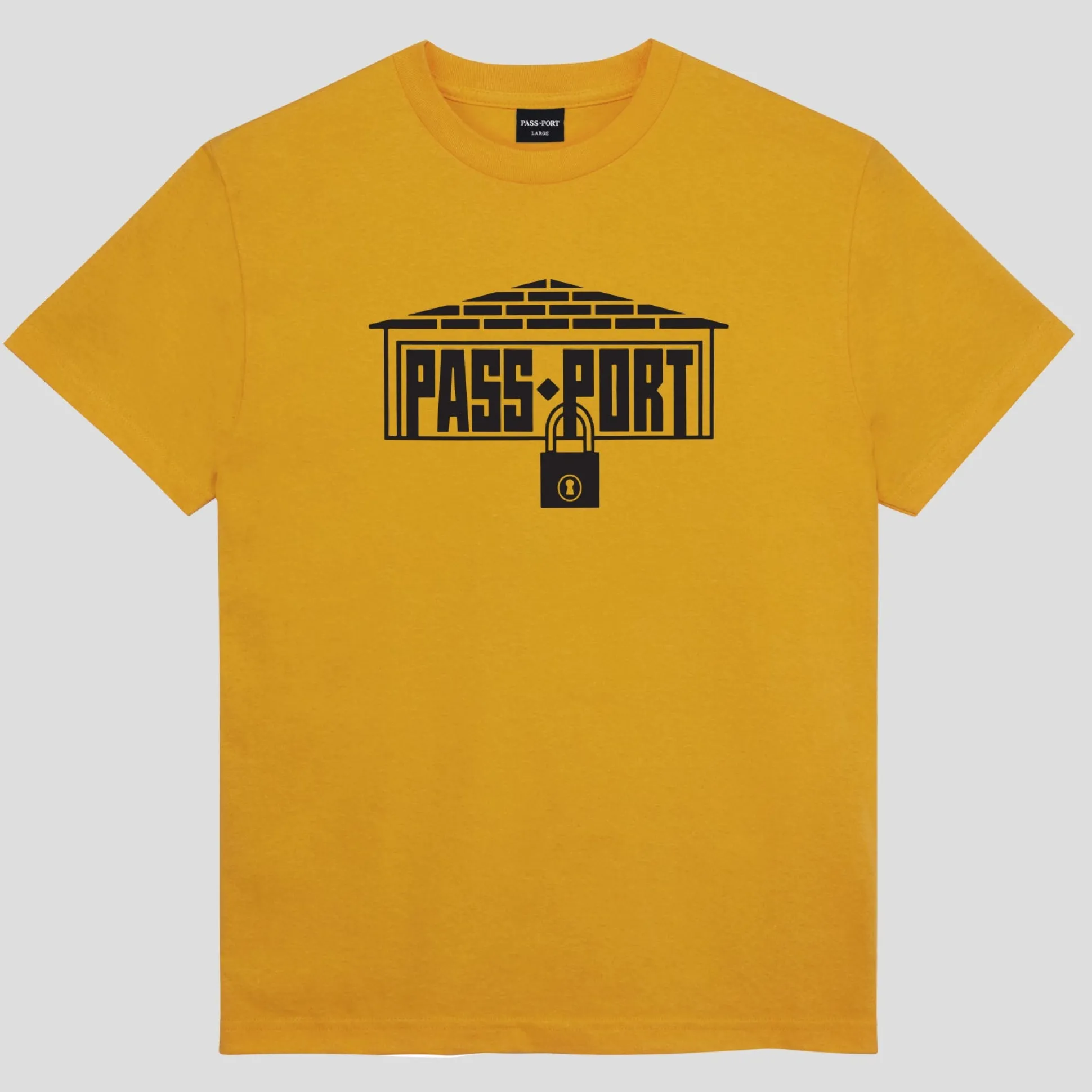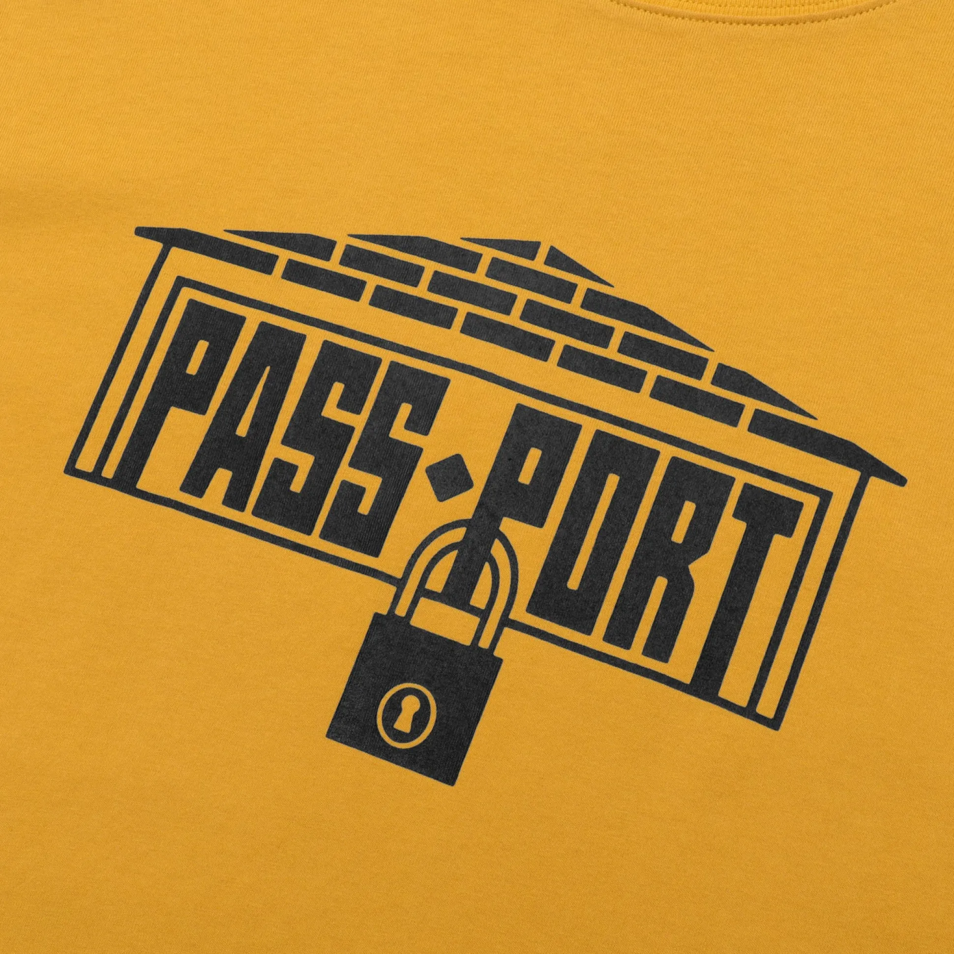 Pass~Port Depot t-shirt in gold is apart of the tee collection for range #40. The Depot Pass~Port T-shirt is made from 100% cotton and features screen printed graphic and is finished in the classic Pass~Port tee fit.