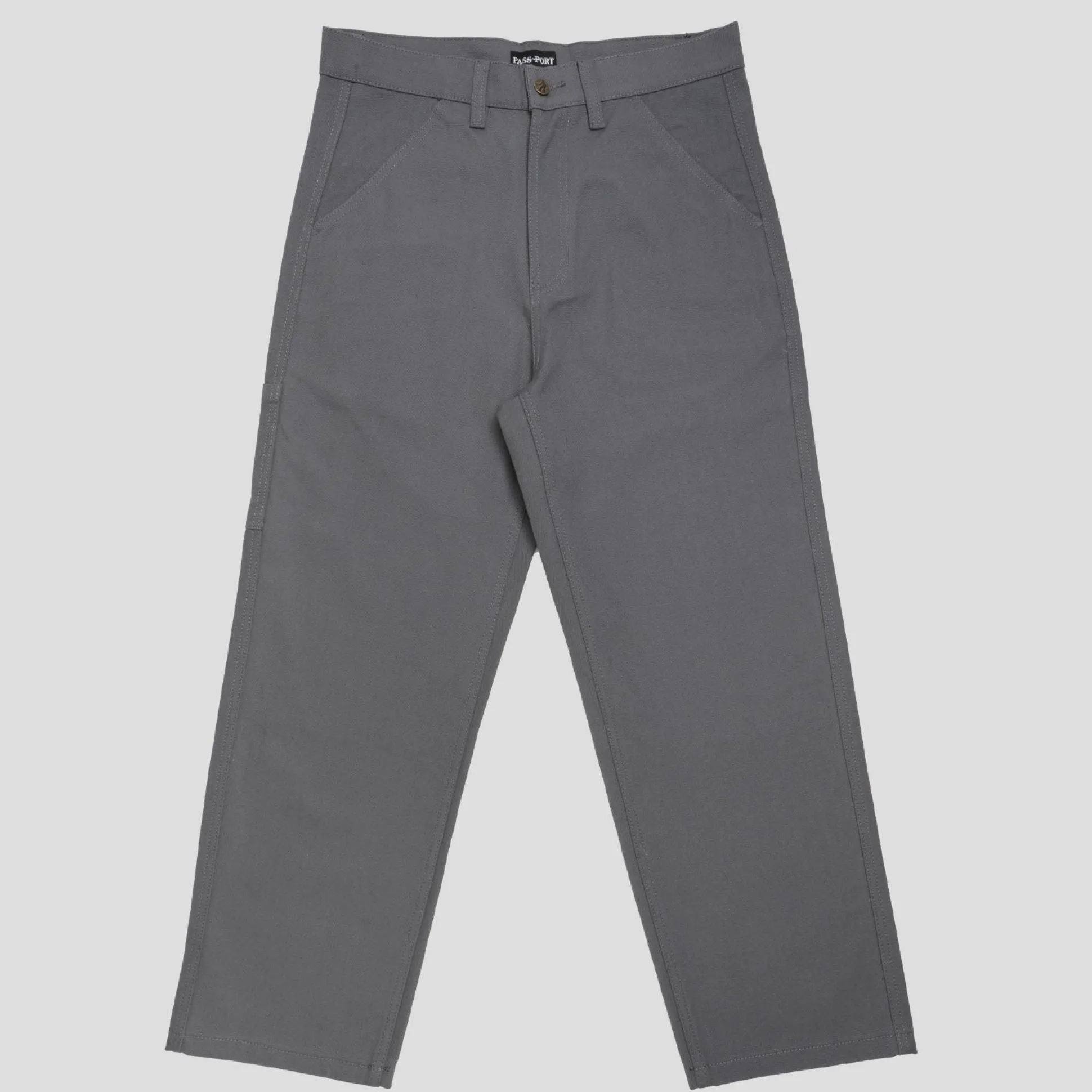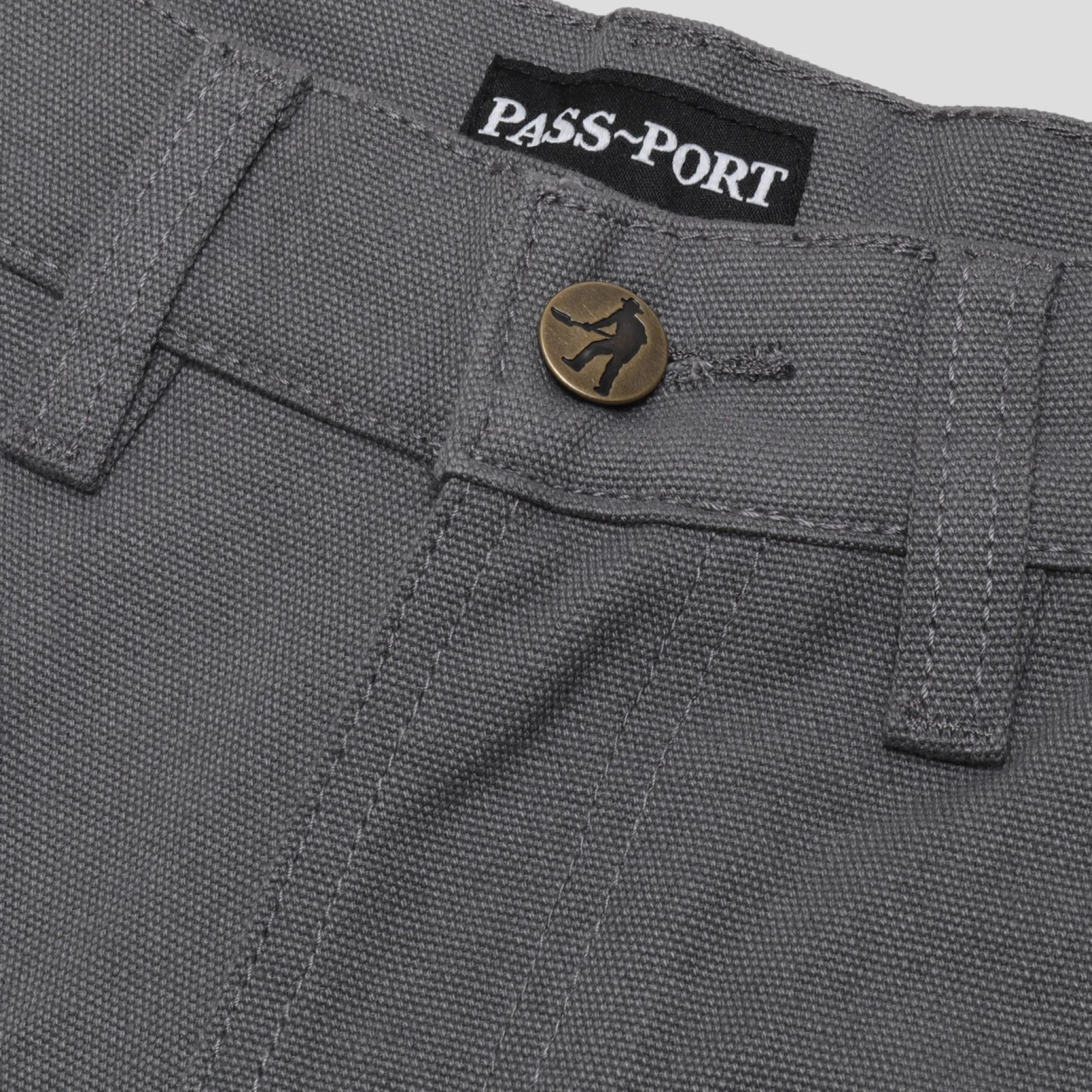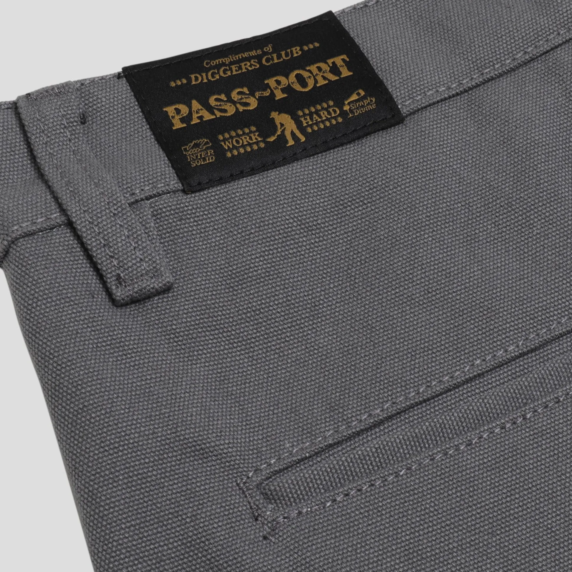 Pass~Port Diggers Club pant in tonal steel from range #39. Made from 100% cotton heavy duty canvas, the trouser features digger embroidery on back pocket as well tonal triple stitch construction.