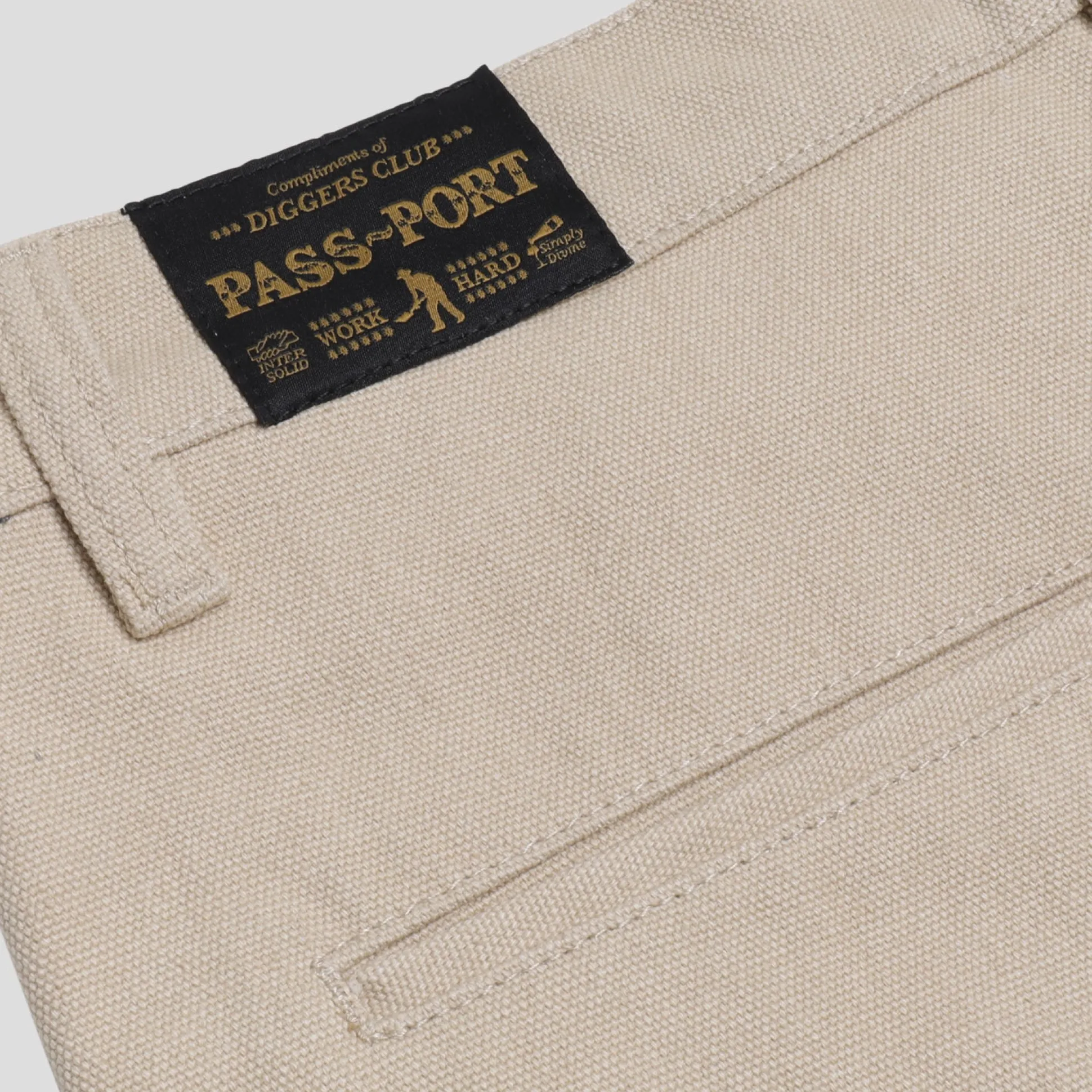Pass~Port Diggers Club Short in khaki from range #39. Made from 100% cotton heavy duty canvas with woven label on waist patch.