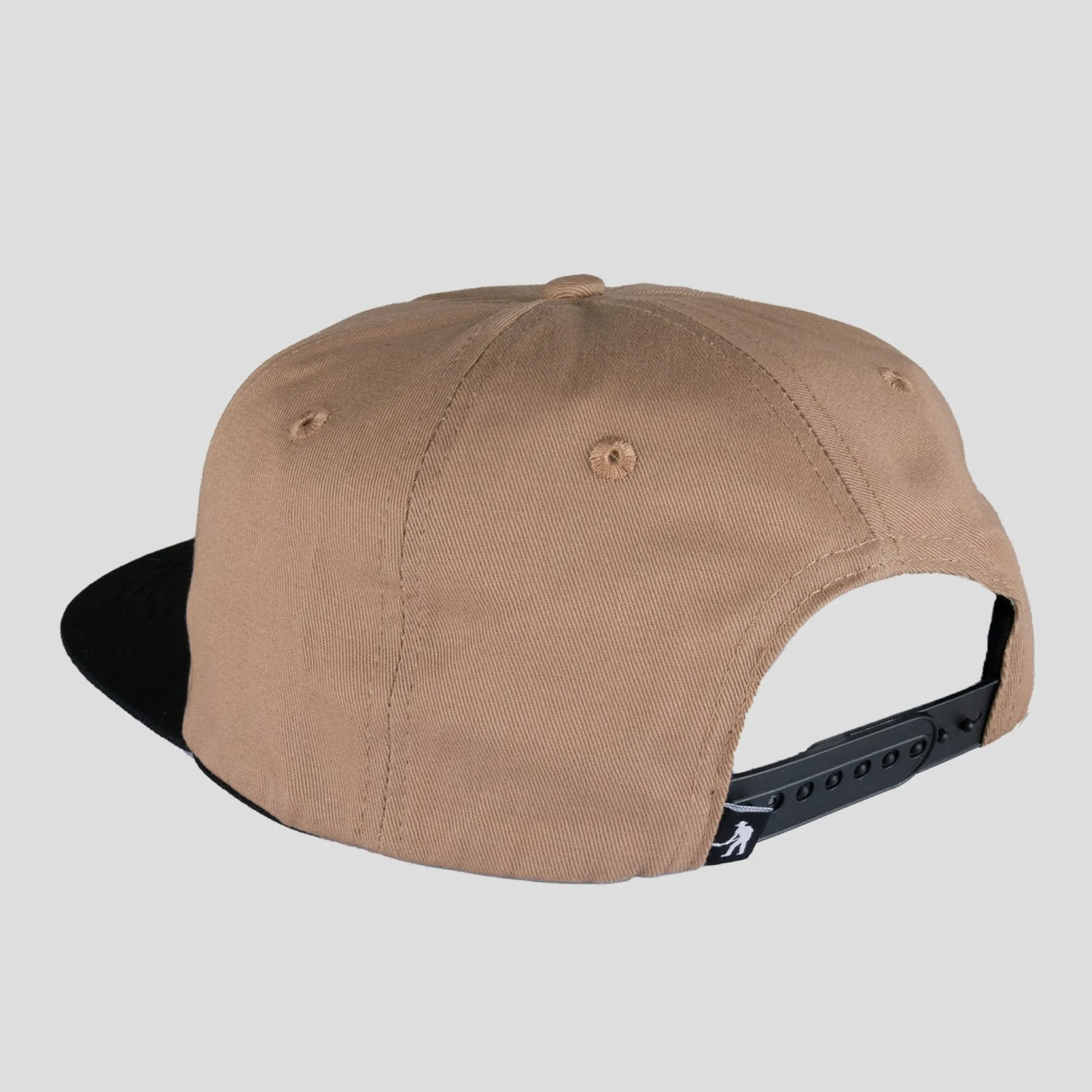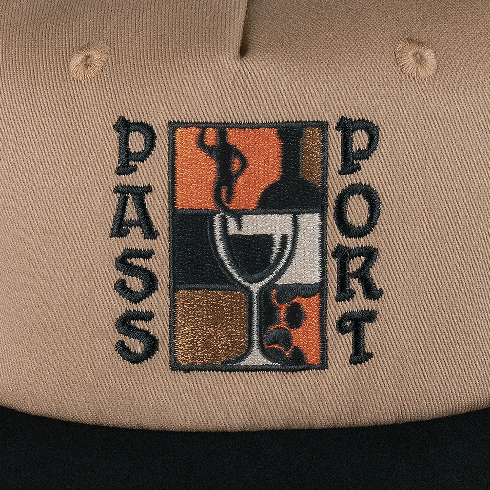 Pass~Port Dine Em’ Workers cap in black / sand from range #42. The Pass~Port hat is a 5 panel construction made from 100% cotton and features direct embroidery on front with snapback adjustment.