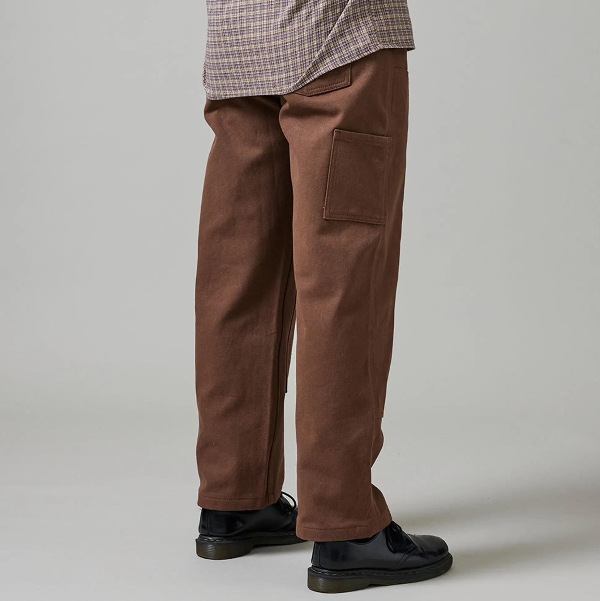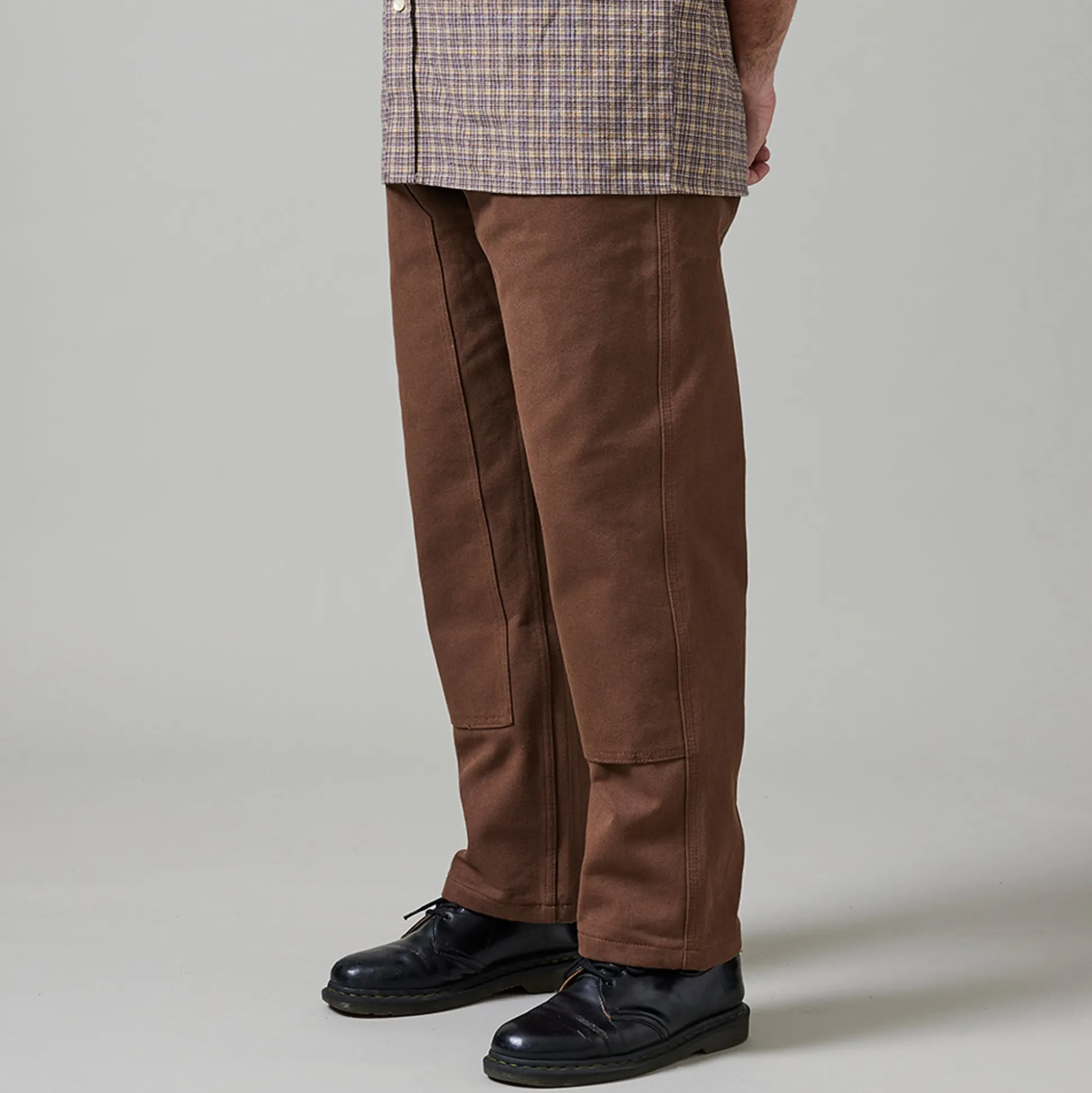 Pass~Port Double Knee Diggers Club pant in mud from range #40. A update to the favourite staple the Diggers Pant. The Double knee pant is made from 100% cotton heavy duty canvas and has been updated with double paneling in the knees. Made for hard work these trousers feature the digger embroidery on back pocket as well tonal triple stitch construction.