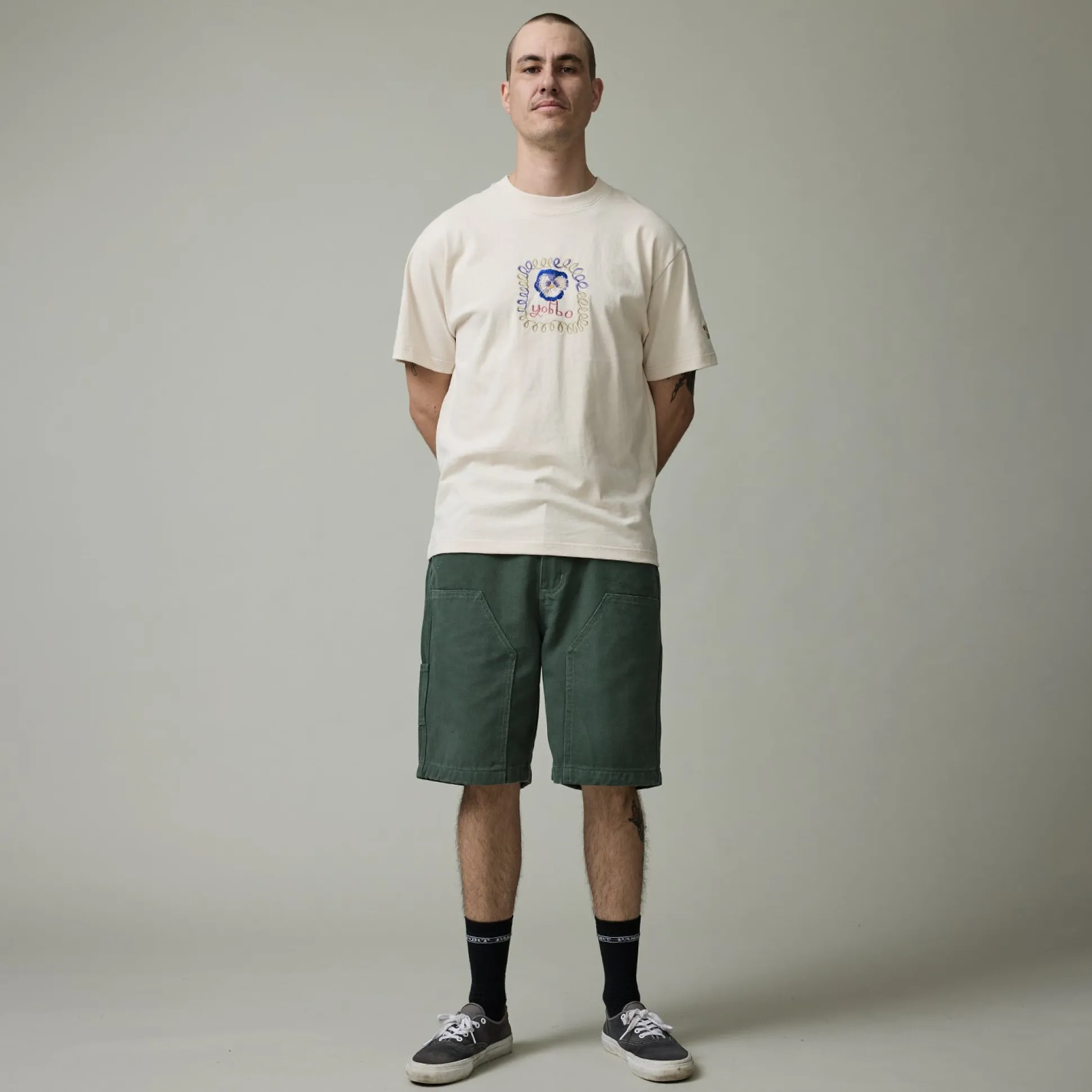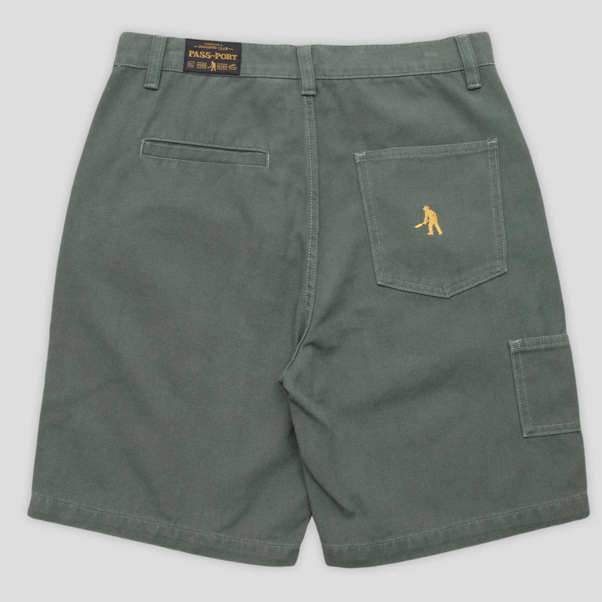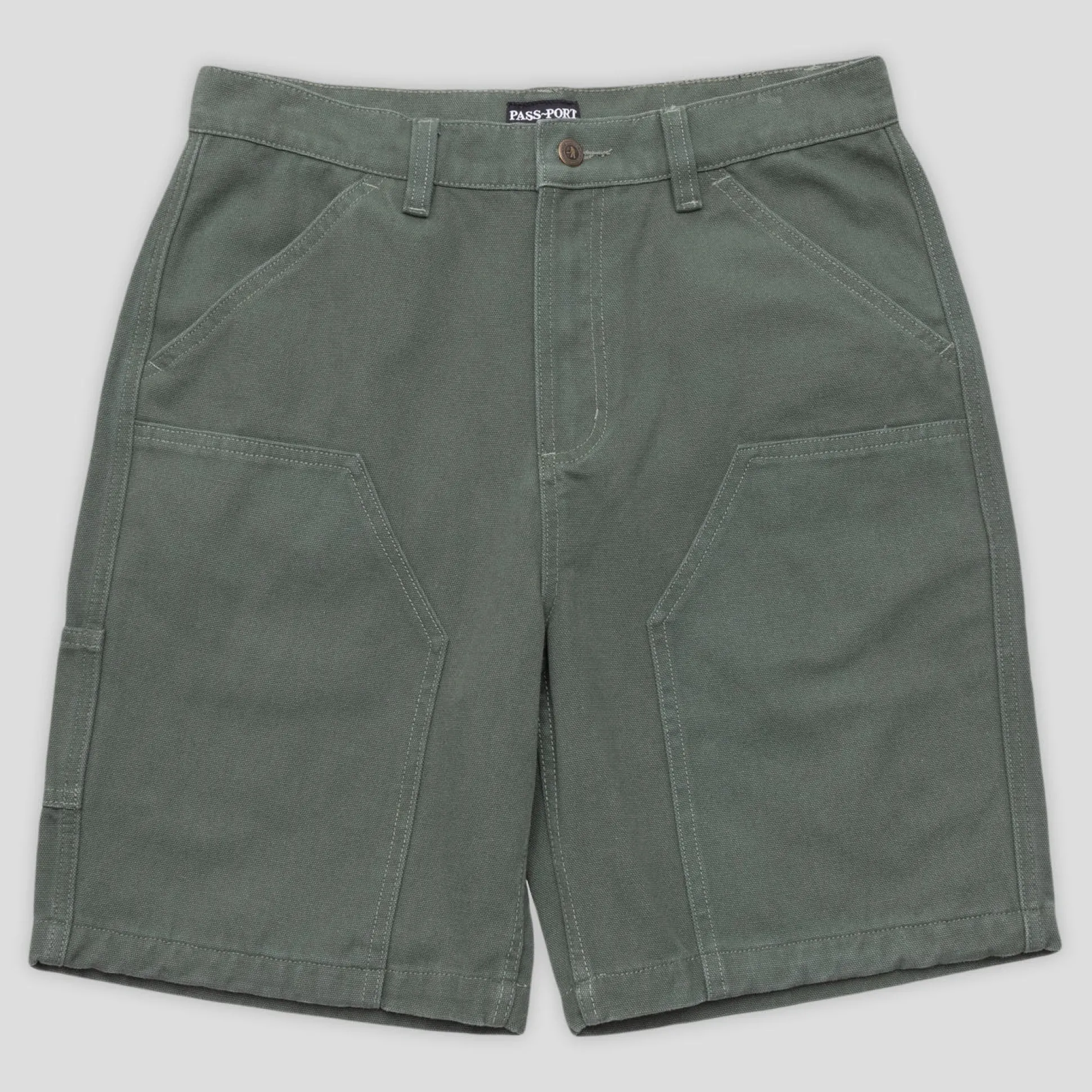 Pass~Port Double Knee Diggers Club short from range #43. The Double knee pant is made from 100% cotton heavy duty canvas and has been updated with double paneling in the knees. Made for hard work these trousers feature the digger embroidery on back pocket as well triple stitch construction.
