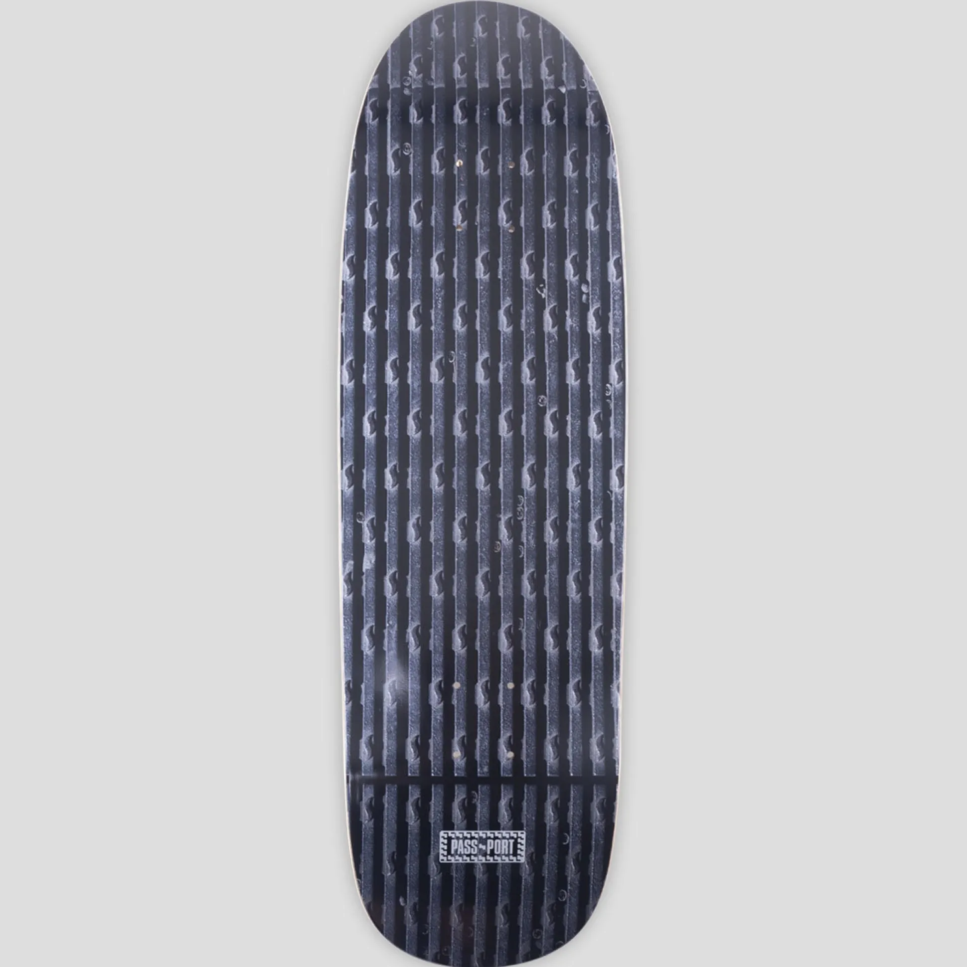 Pass~Port Drain Series in the Tilde drain. The drain series is a variation of drains pictured from around Australia. The spade deck is cut and pressed to the classic Pass~Port spade shape. The board features full concave medium kick shape and is pressed in Mexico with premium-quality materials.
