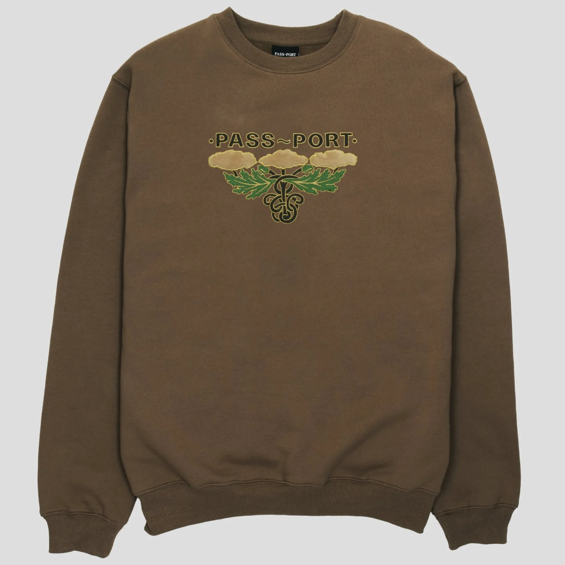 Pass~Port Emblem Appliqué sweatshirt in chocolate from range #38. Embroidery with felt appliqué on the front in the classic Pass~Port sweater fit.