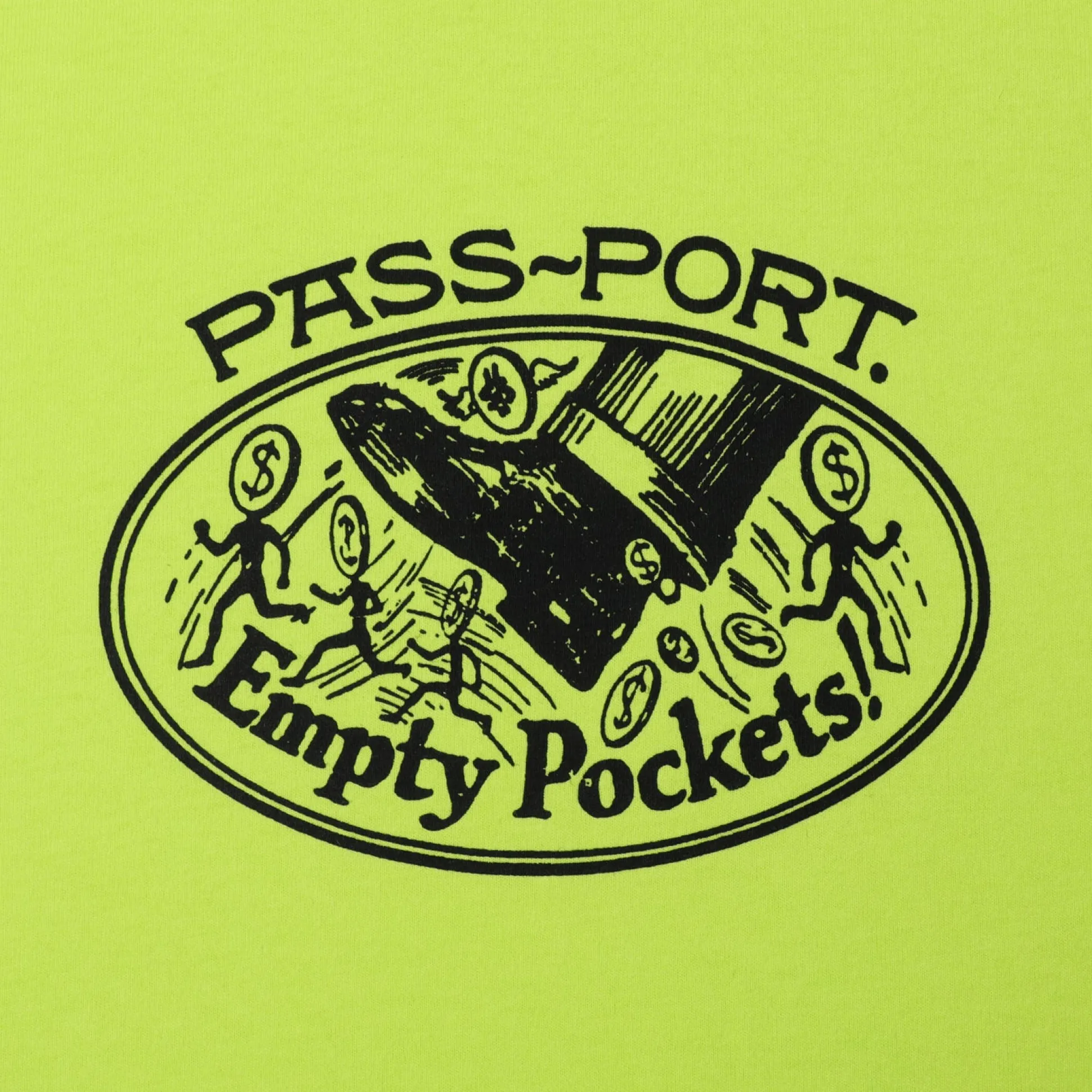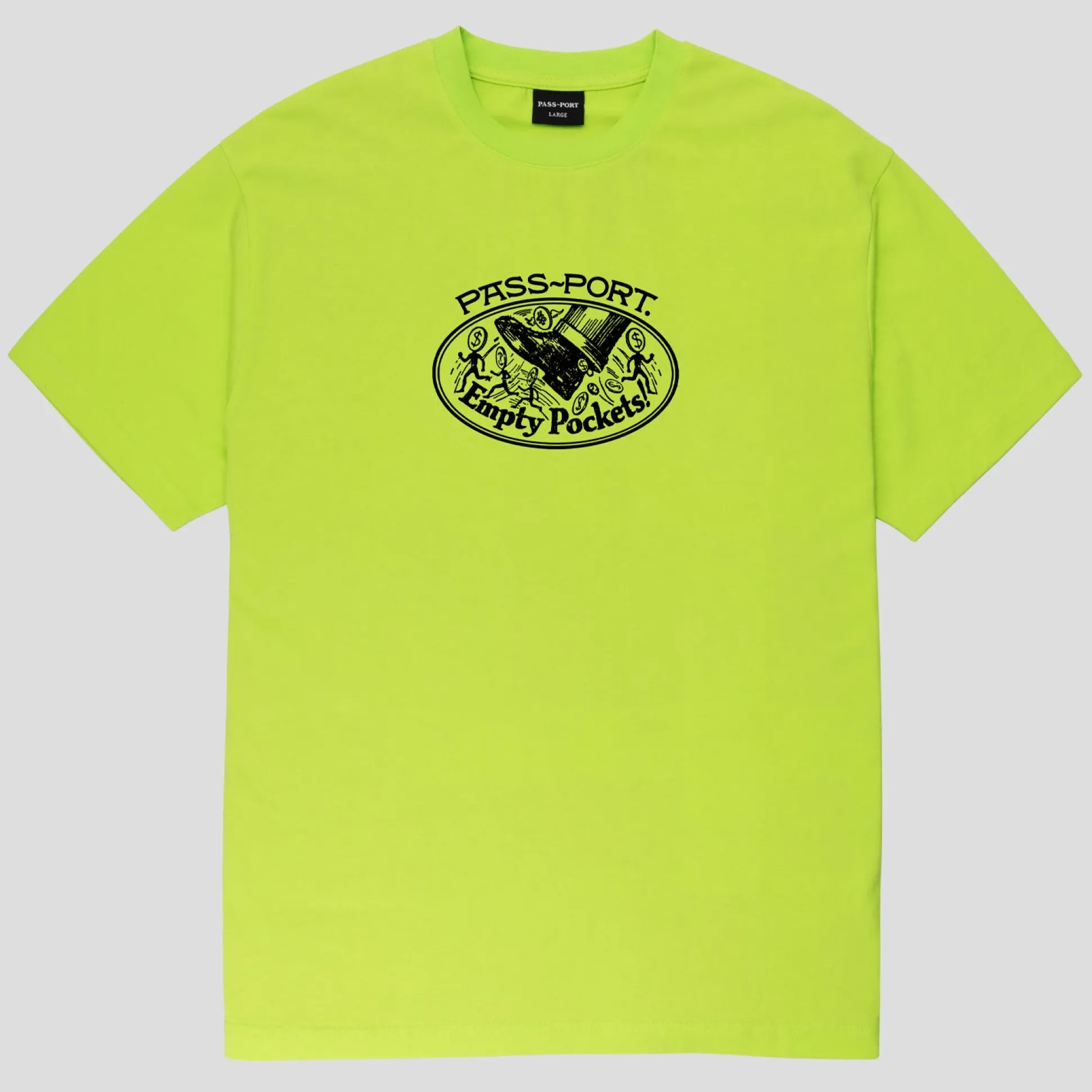 Pass~Port Empty Pockets Tee in safety yellow from range #42. The Pass~Port t-shirt is made from 100% cotton which features screen print on front and is finished in the classic Pass~Port tee fit.