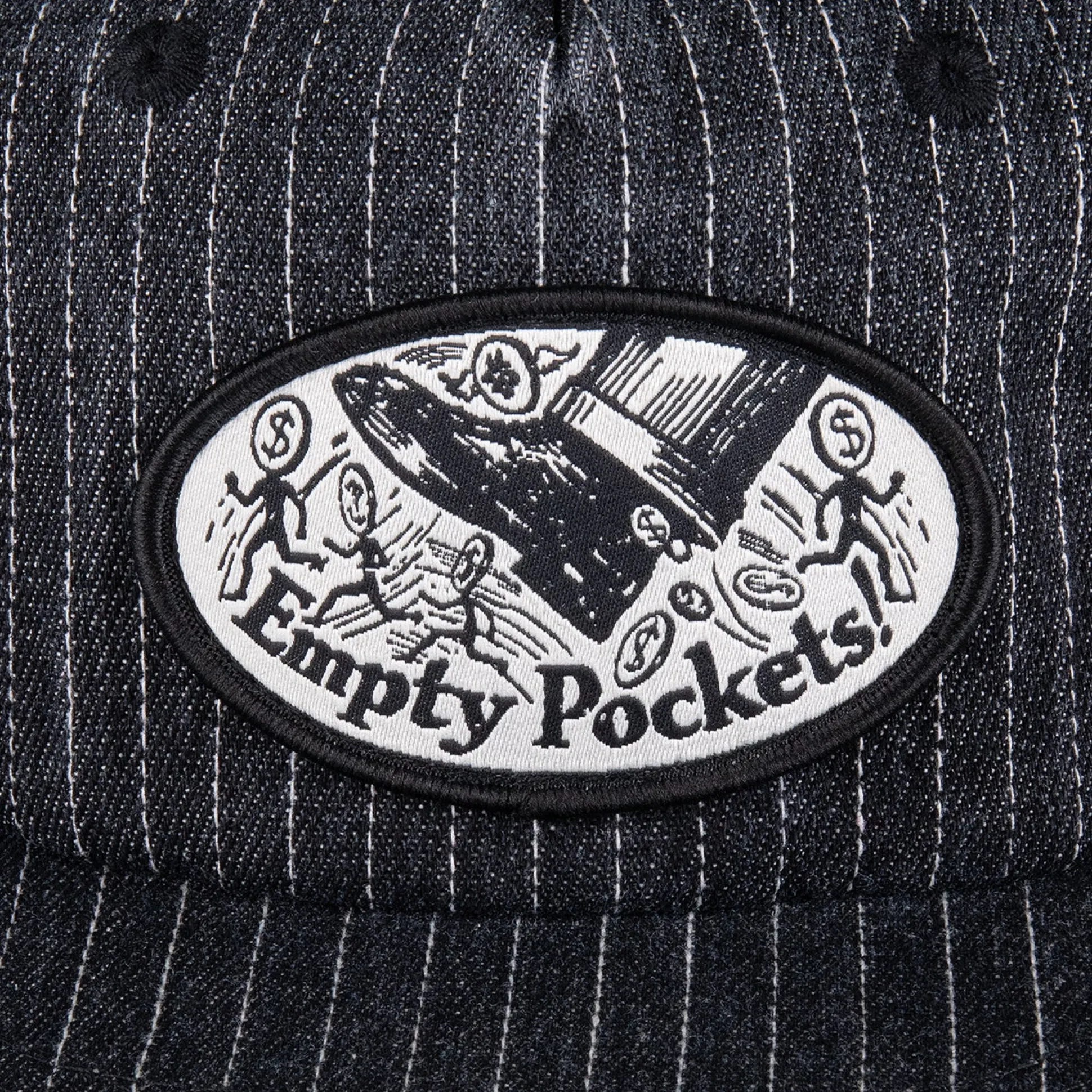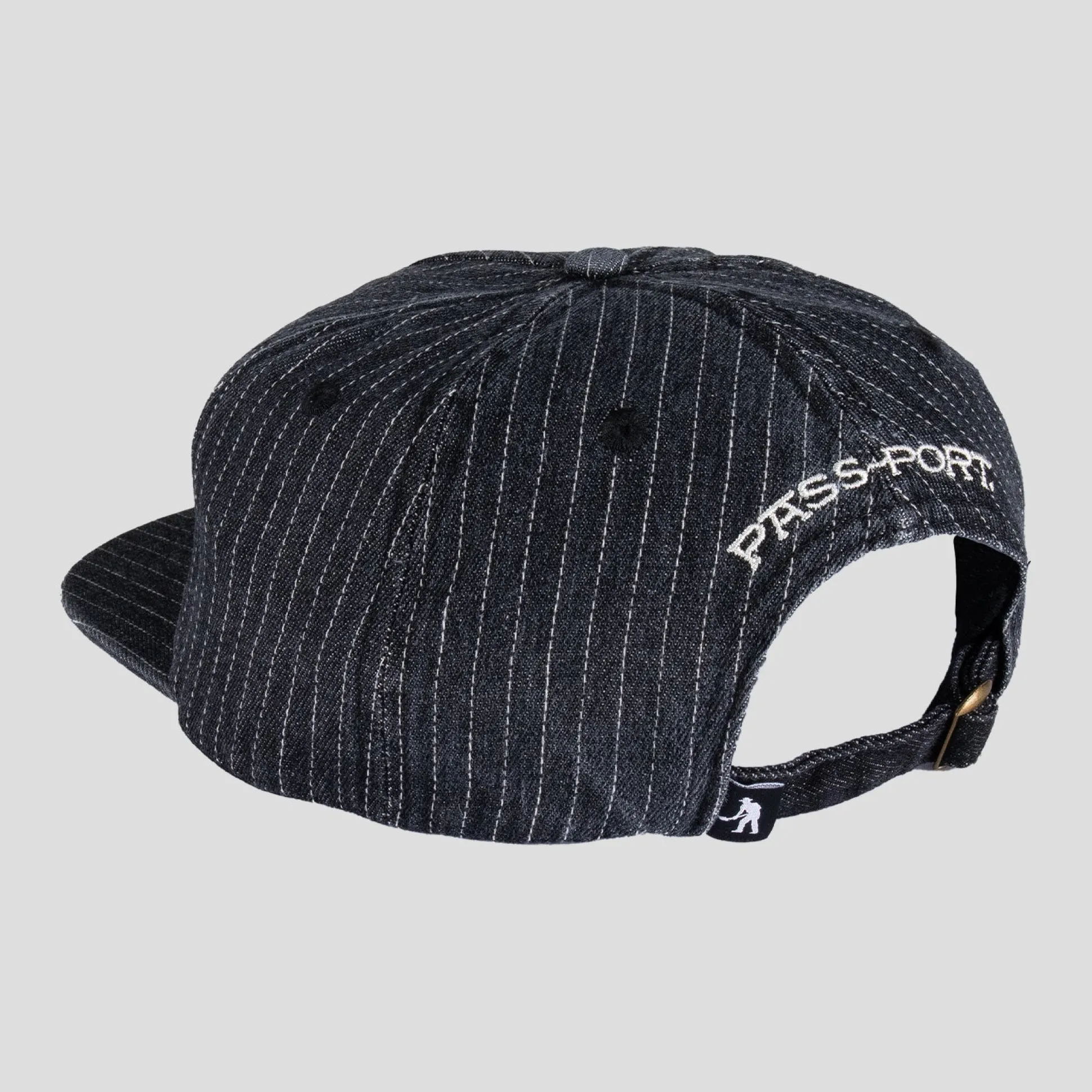 Pass~Port Empty Pockets Workers Cap in black from range #42. Made from 100% 10oz cotton denim with woven patch and self fabric closure.