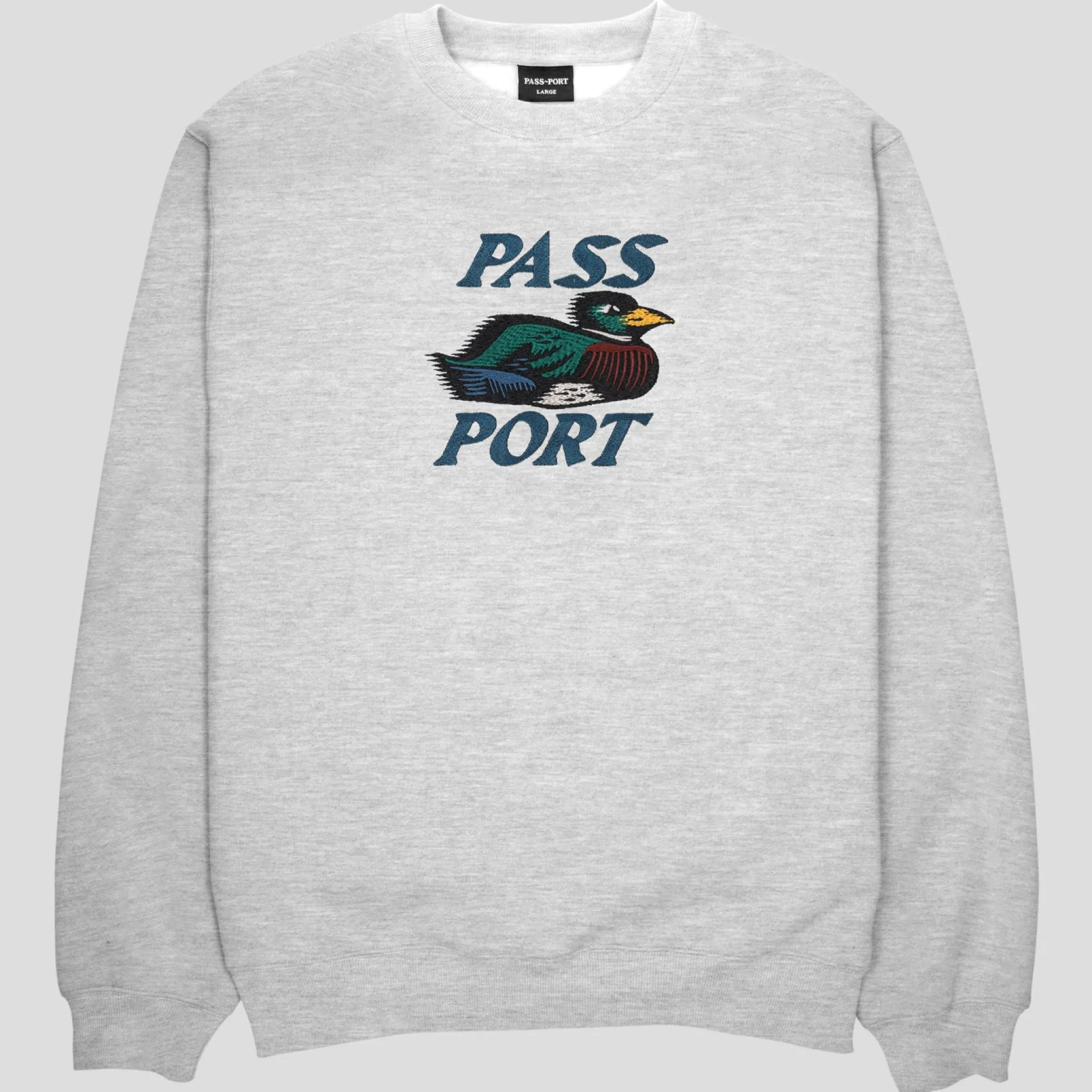 Pass-Port Fast Duck sweater from Range #44. This Pass-Port jumper is crafted from a cotton-polyester blend and features an embroidered design on the front, finished in the classic Pass-Port sweater fit.
