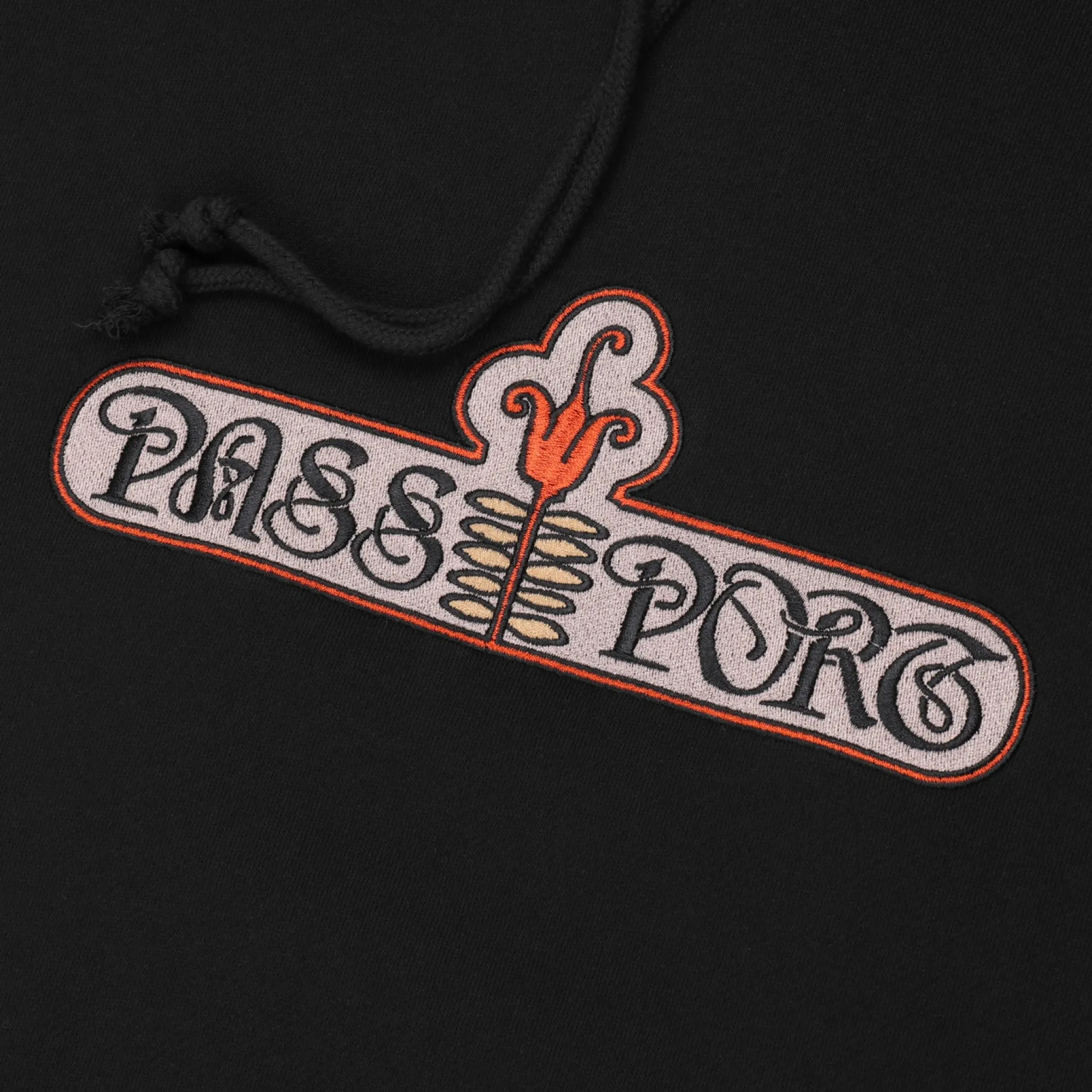 Pass-Port Gardenia hoodie from Range #44. This Pass-Port jumper is crafted from a cotton-polyester blend and features a direct embroidery on the front, finished in the classic Pass-Port hoodie fit.
