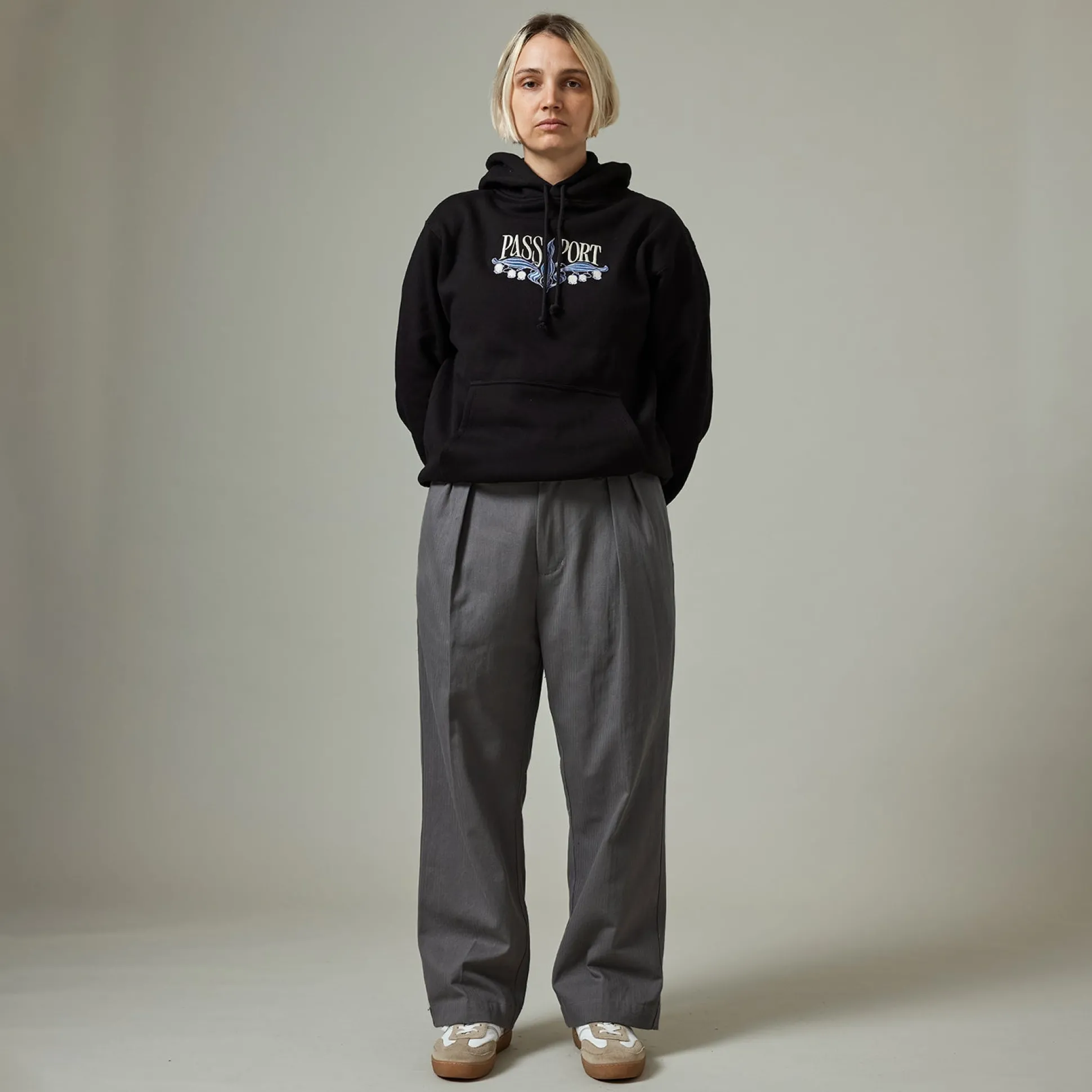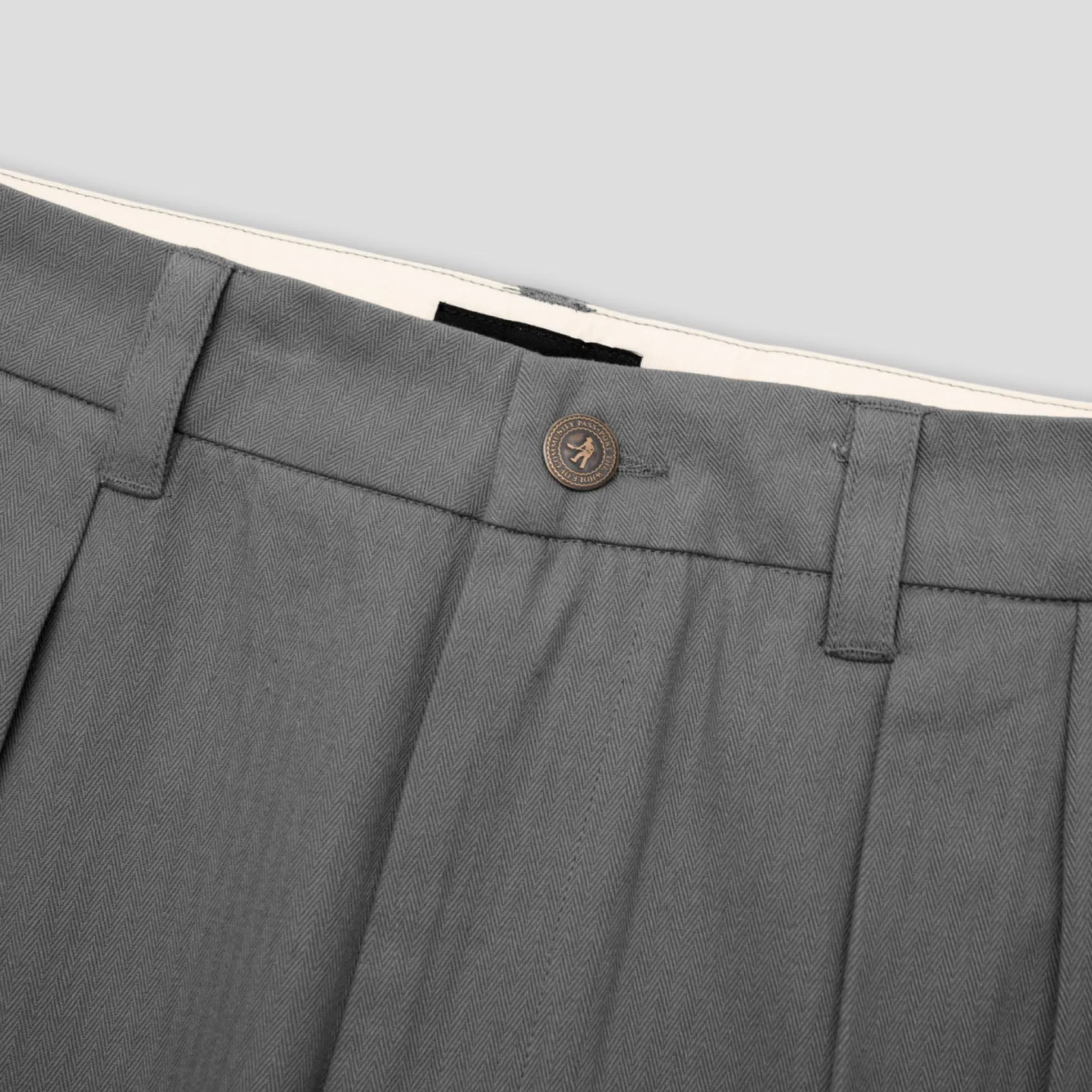 Pass~Port Leagues Club Pant from range #43. The Leagues club trouser is made from 100% herringbone twill and features double pleats and custom button, the perfect trouser to wear in all occasions.