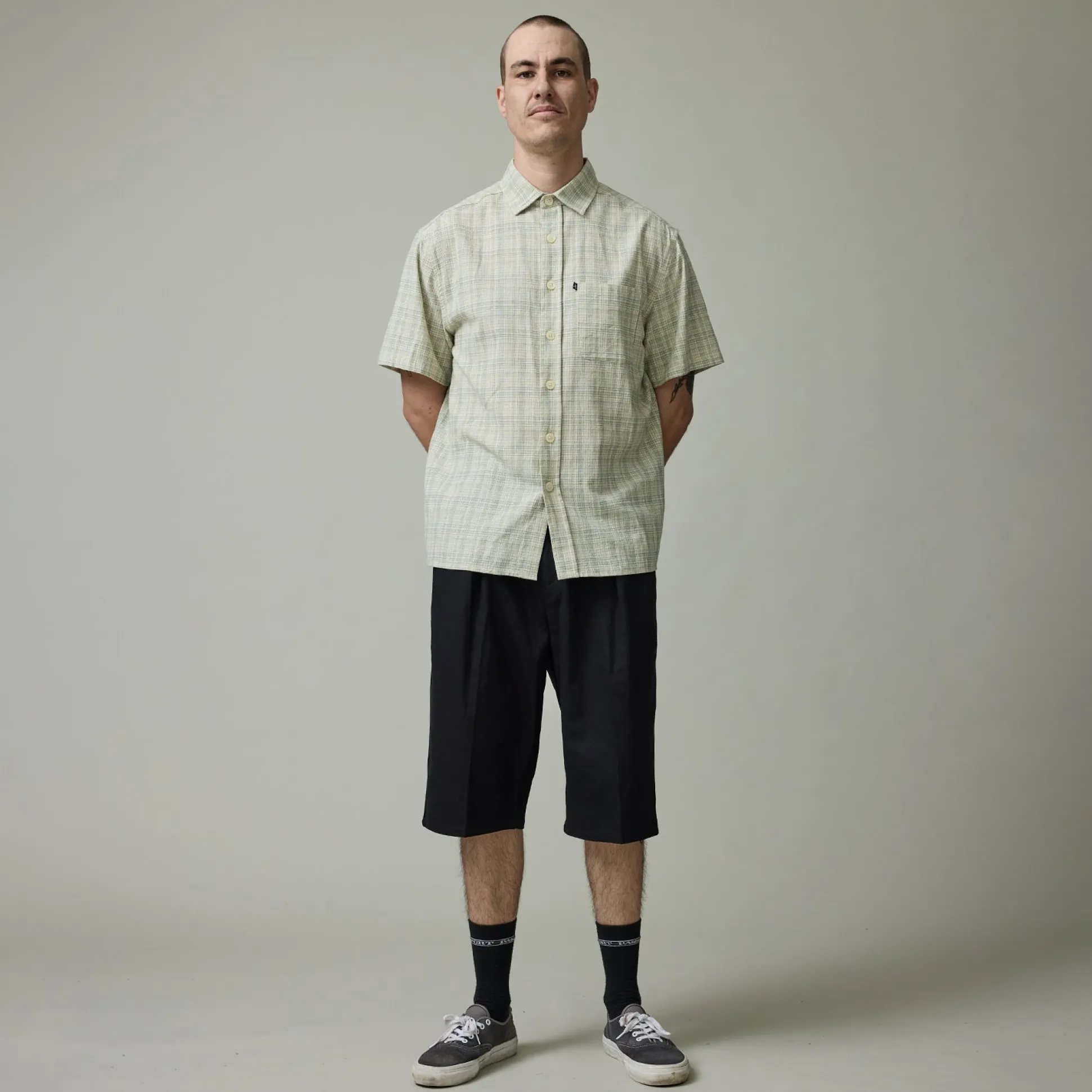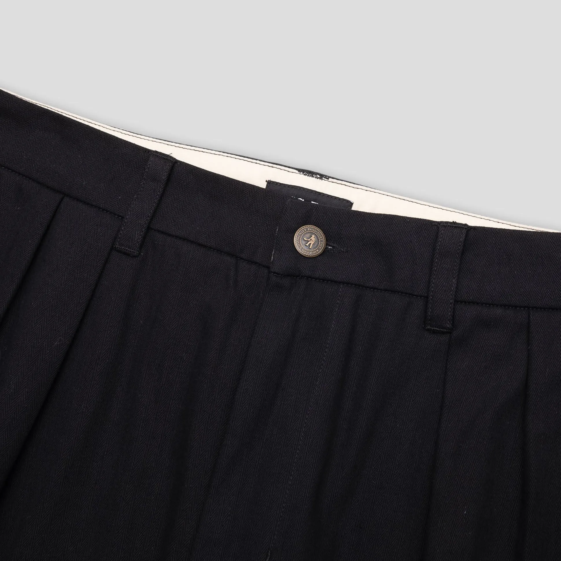 Pass~Port Leagues Club shorts from range #44. The Leagues club trouser is made from 100% herringbone twill and features double pleats and custom button, the perfect trouser to wear in all occasions.