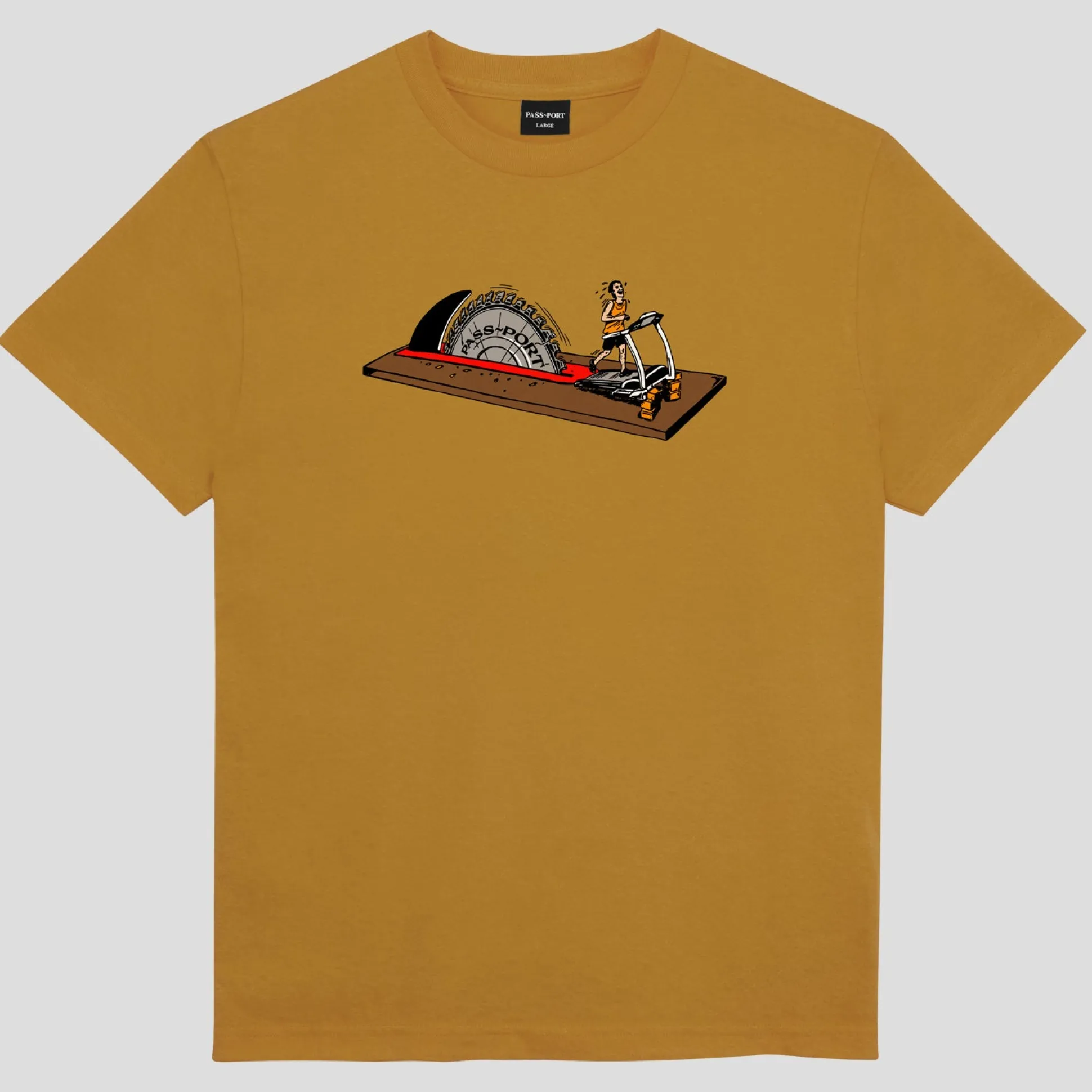 Introducing Range #44: The Pass-Port Keep Running tee in mustard is made from 100% cotton and features a screen printed graphic on front. It offers the signature Pass-Port fit.