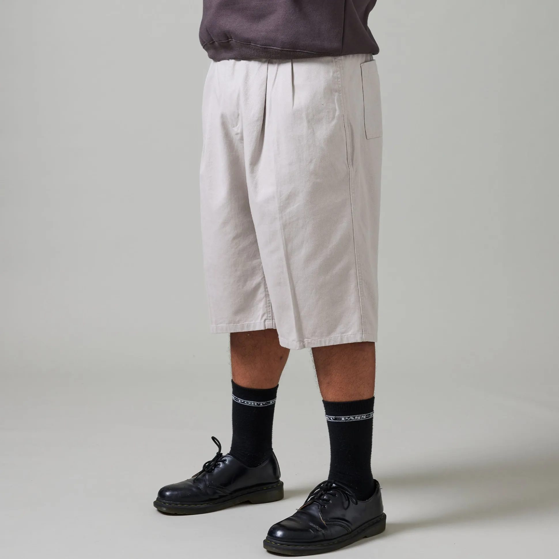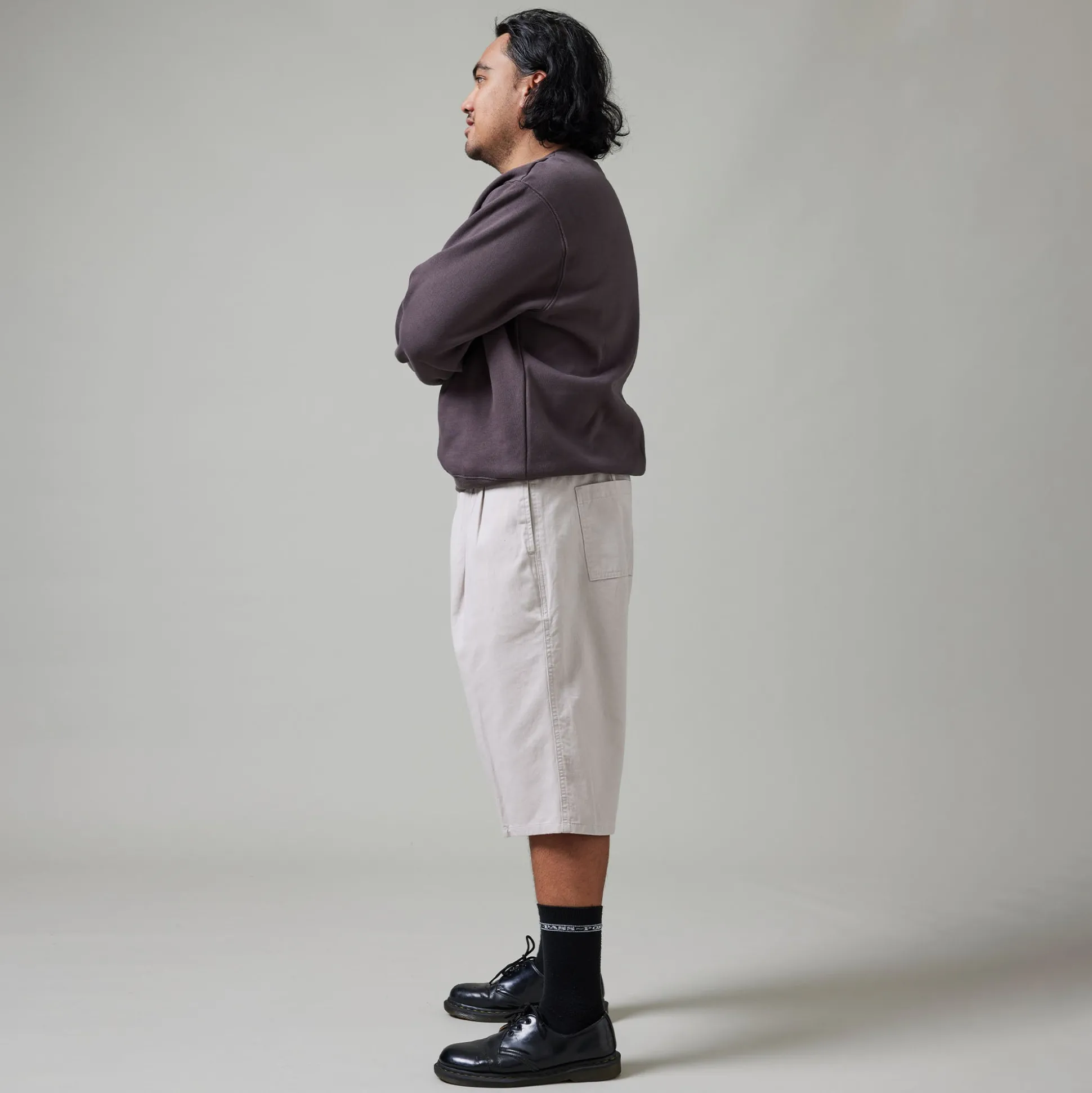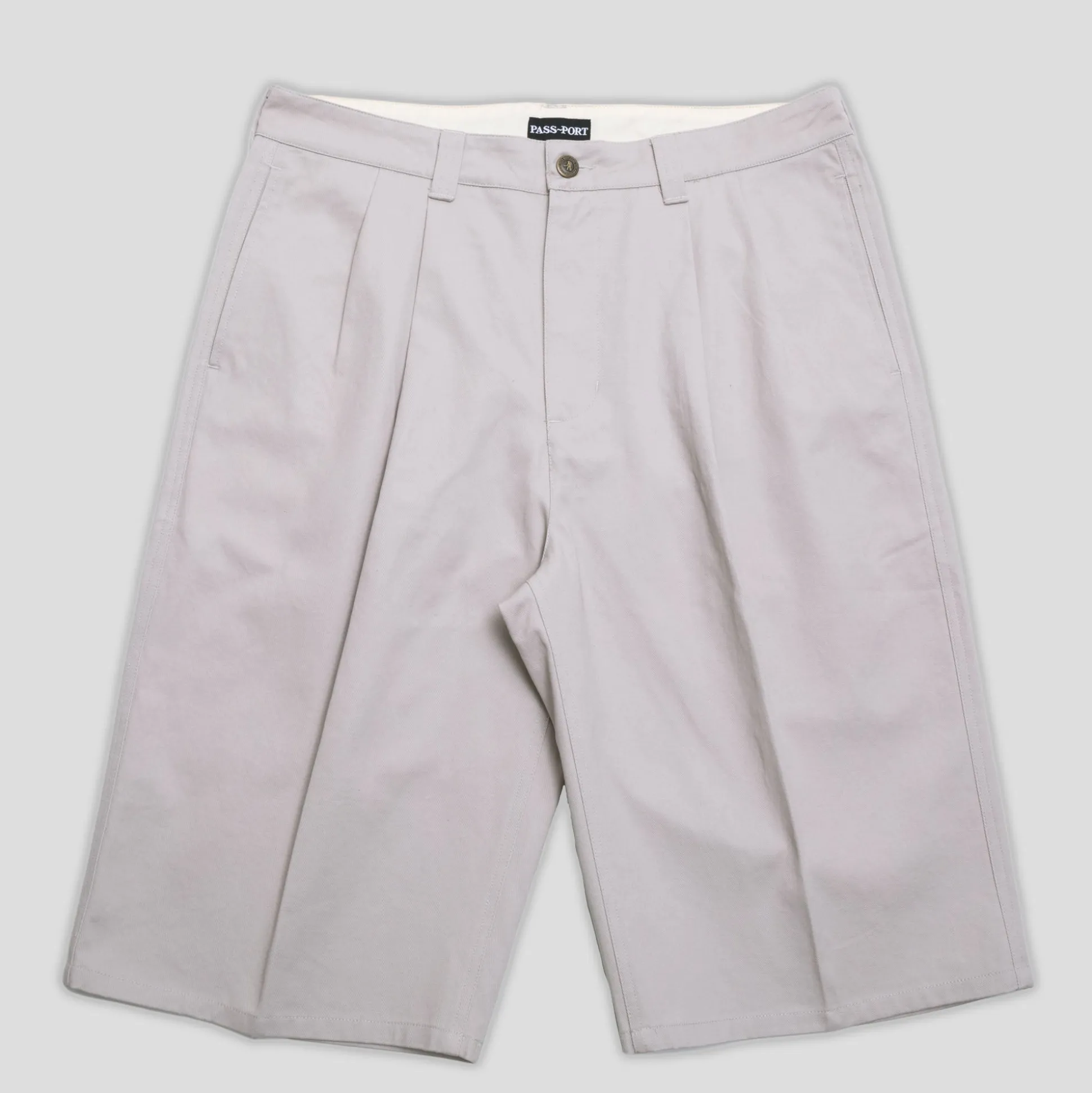 Pass~Port Leagues Club short in stone from range #40. Since introducing the Leagues Club to the range it has been a high demand pant. Now introducing the Leagues Club short, this short is made from 100% cotton twill and features double pleats with stitched Leagues Club patch on back. The trouser also has signature digger embroidery on back pocket.