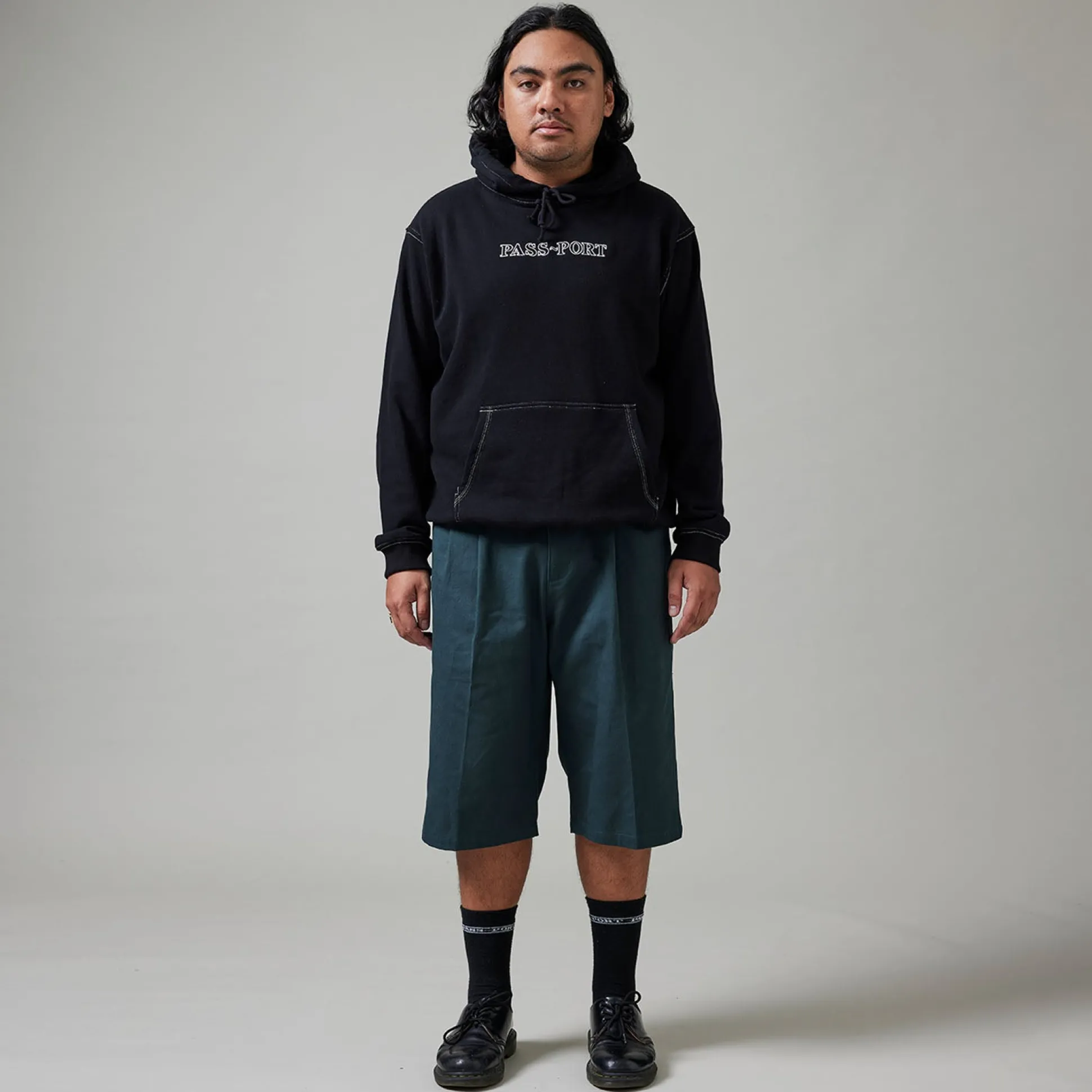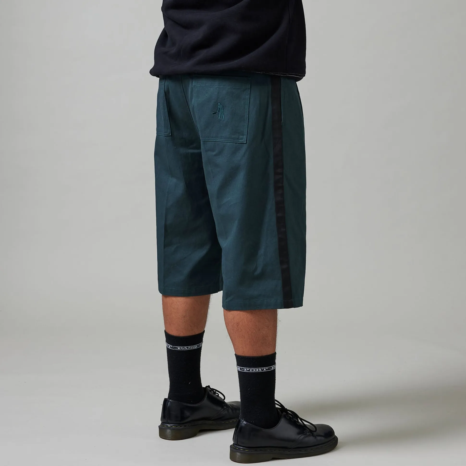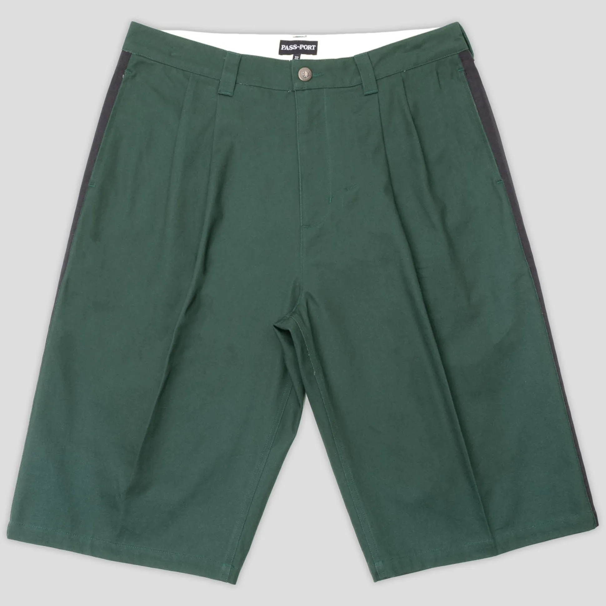 Pass~Port Leagues Club short in dark teal / black from range #41. A brand new short introduced last range, the Leagues Club short is back. Now introducing the Leagues Club striped short, this short is made from 100% cotton twill and features double pleats with stitched Leagues Club patch on back. Finished the in the signature leagues club fit the short now features contrast stitch down both sides.