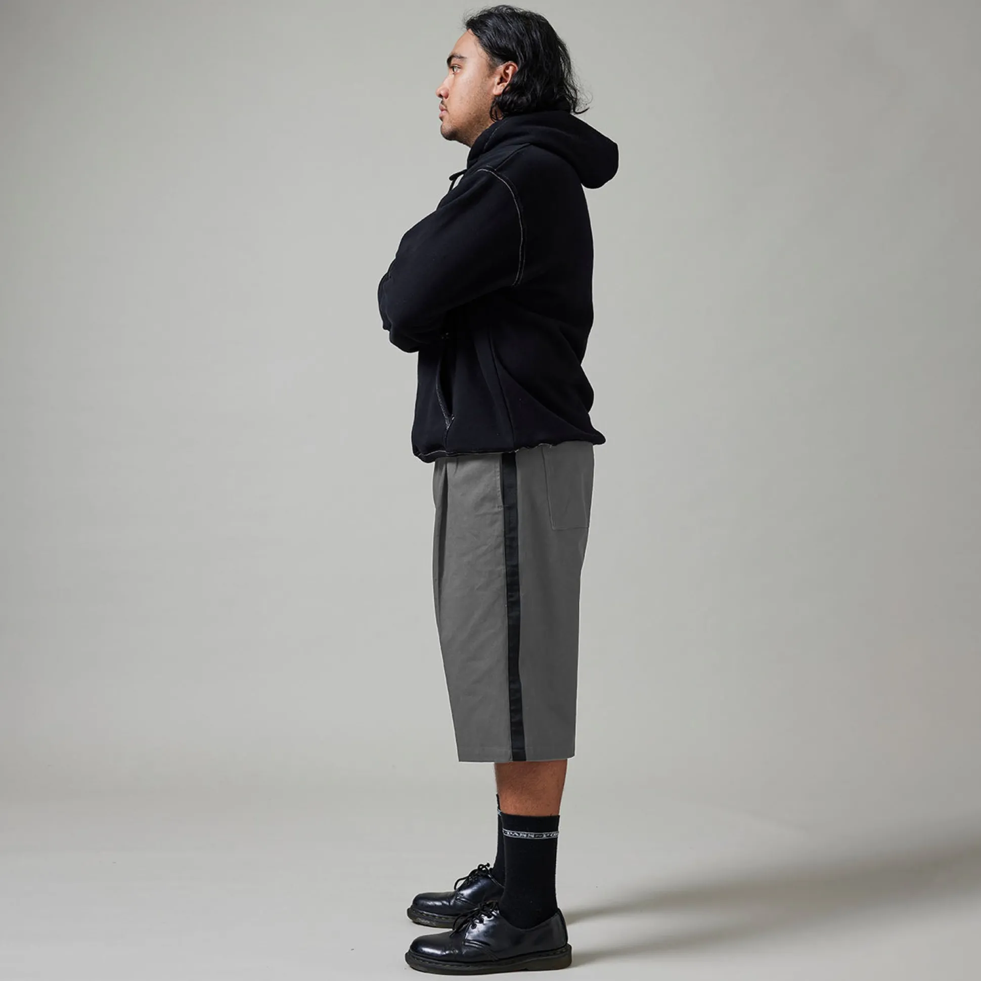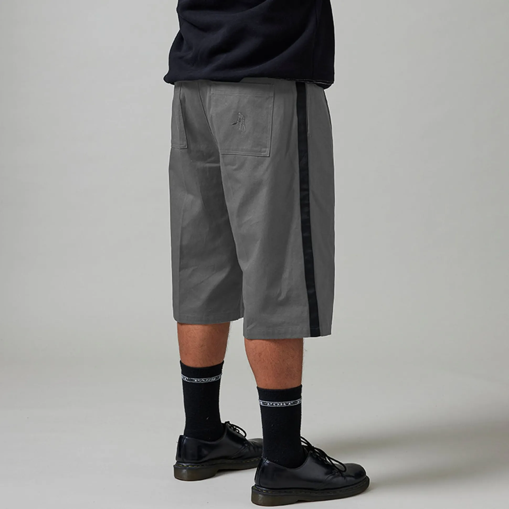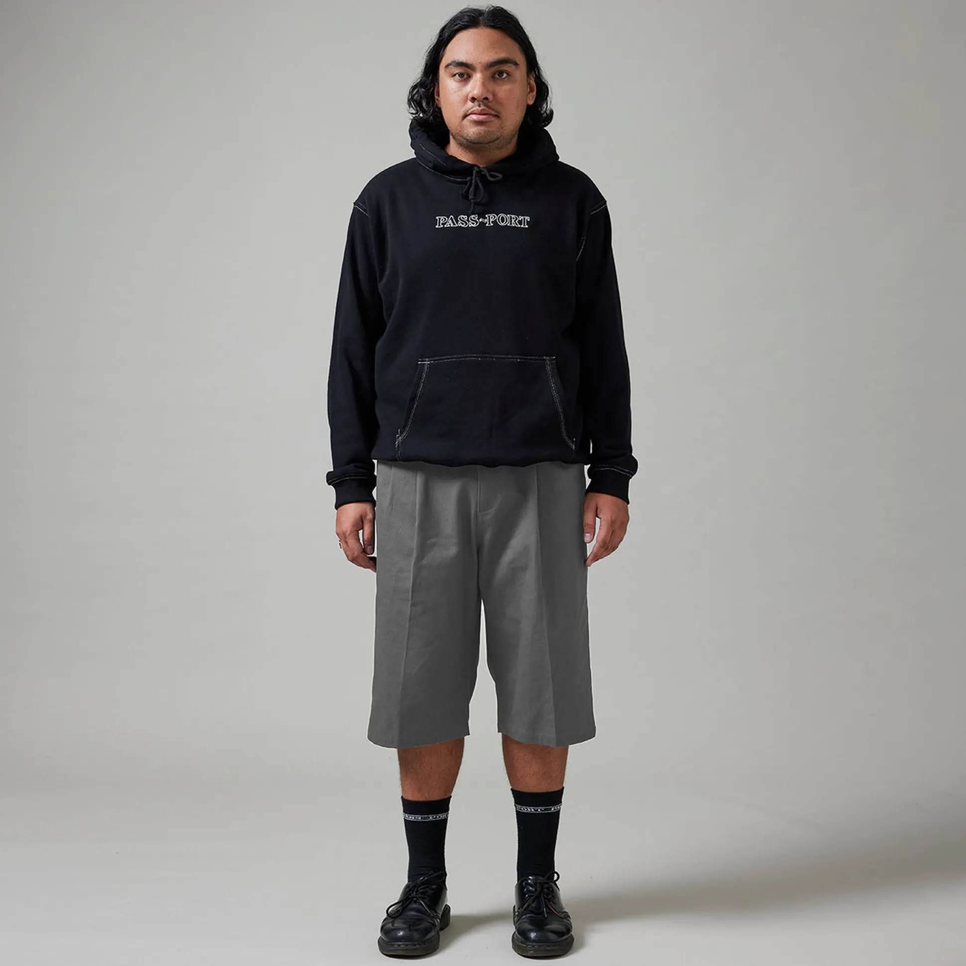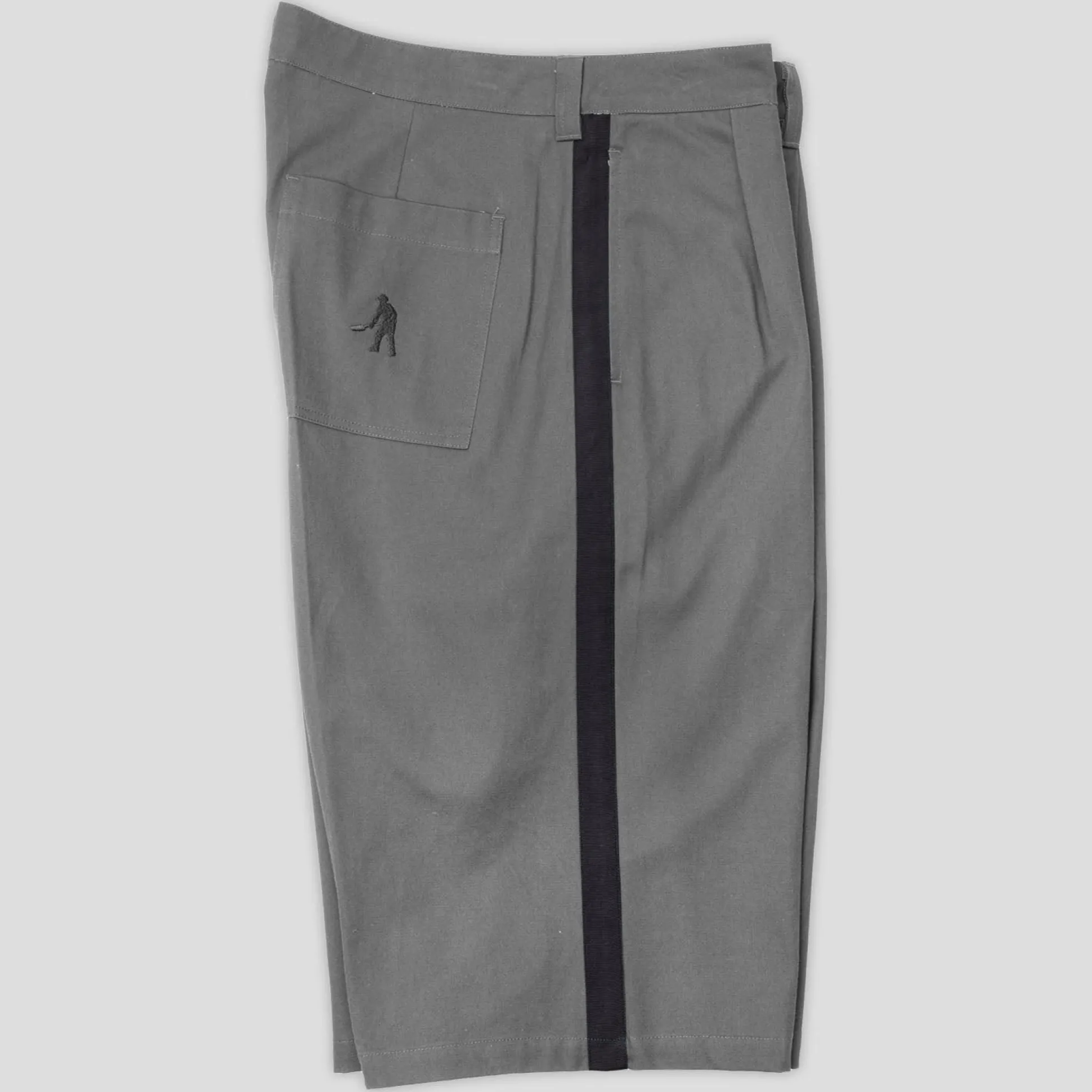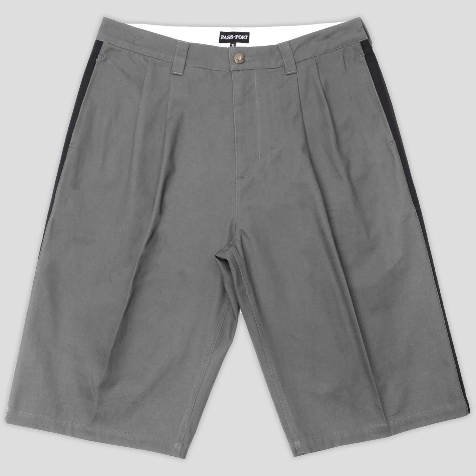 Pass~Port Leagues Club short in grey / black from range #41. A brand new short introduced last range, the Leagues Club short is back. Now introducing the Leagues Club striped short, this short is made from 100% cotton twill and features double pleats with stitched Leagues Club patch on back. Finished the in the signature leagues club fit the short now features contrast stitch down both sides.