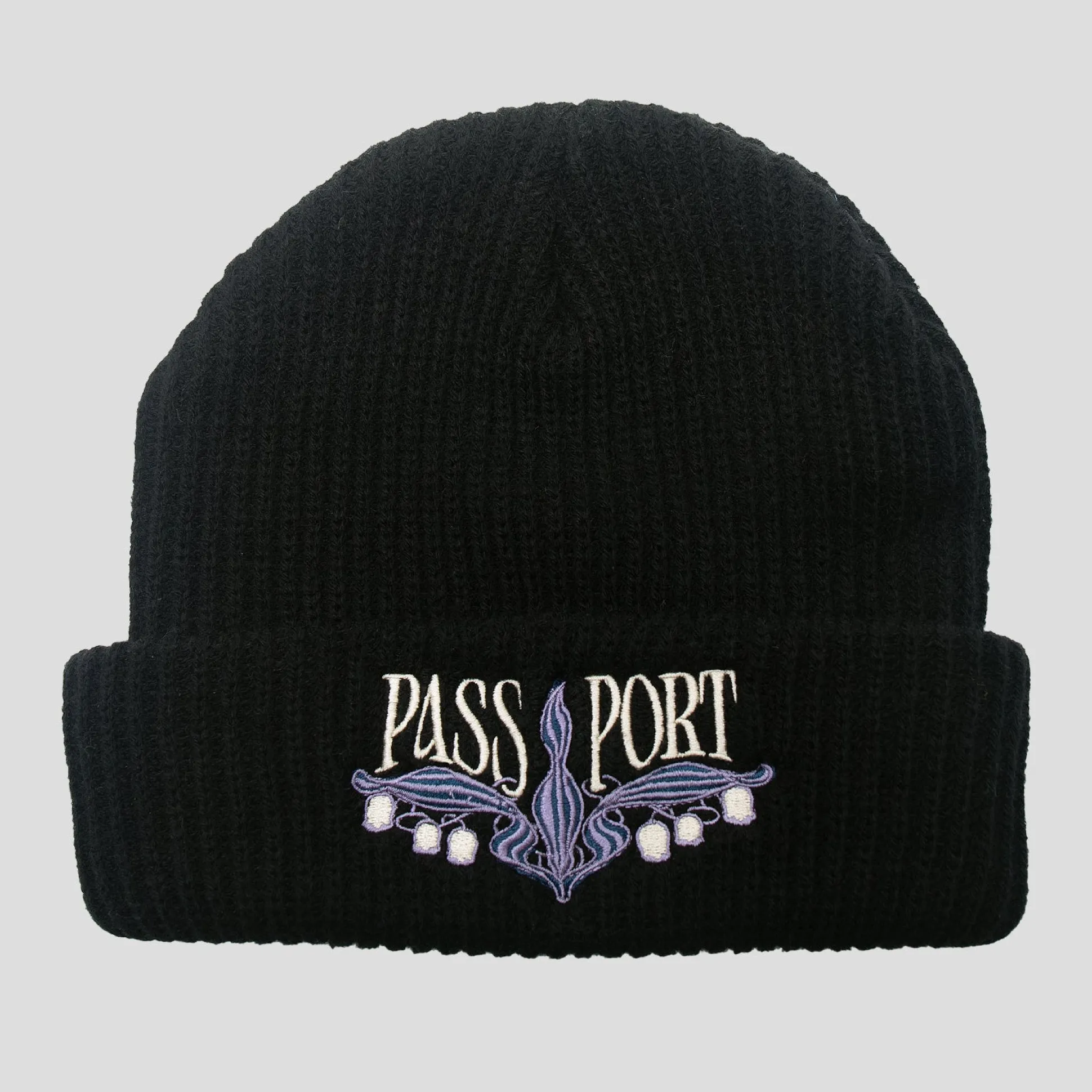 Pass~Port Lily of the Valley beanie from range #43. The Pass~Port beanie is made from 100% acrylic and features direct embroidered on the front which is finished in the classic Pass~Port beanie fit.