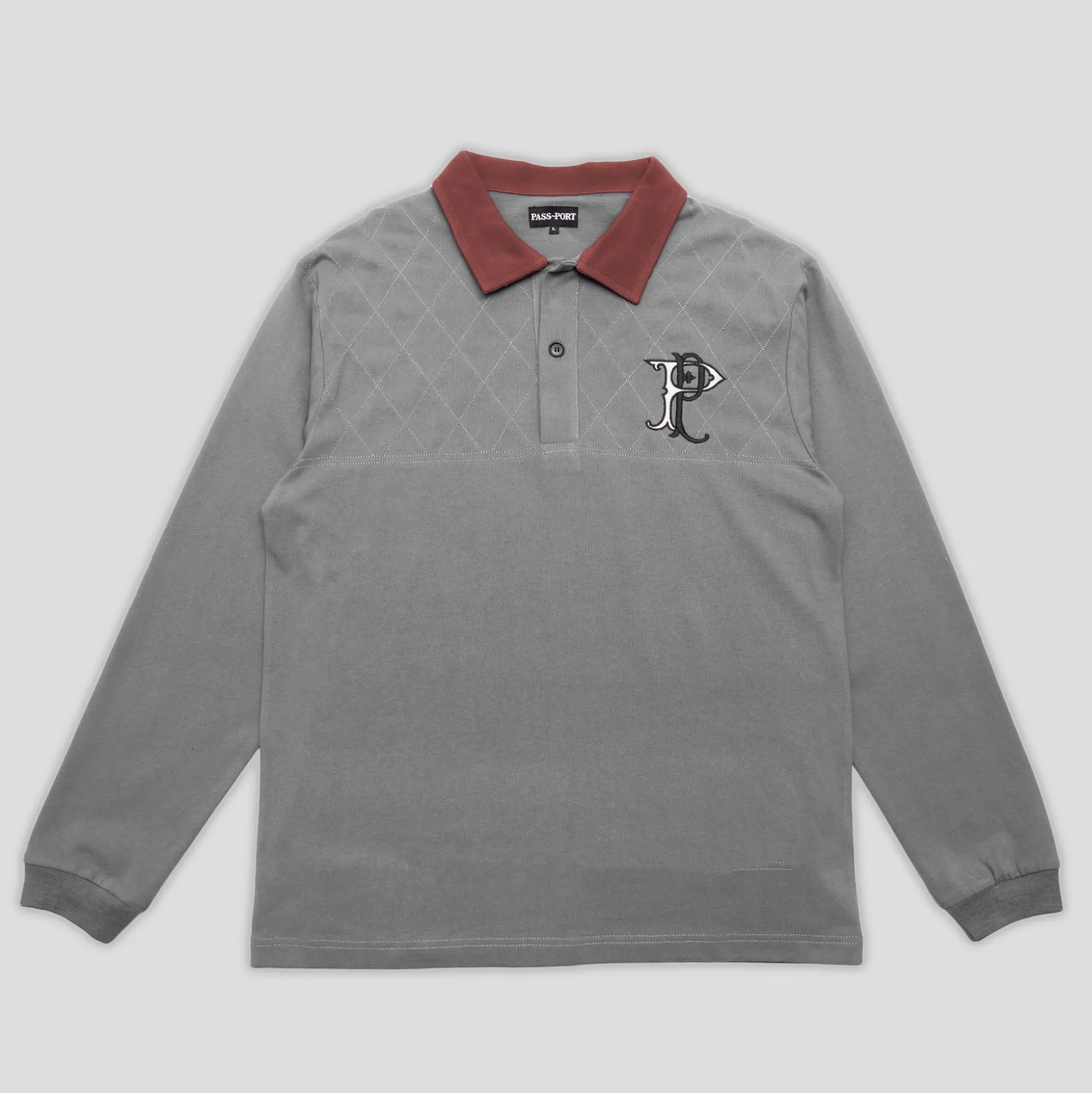 Pass~Port Monogram Jersey in grey is apart of the shirting range #40. The Monogram polo jersey is made from 100% cotton knit and features direct embroidery logo on front. The Pass~Port rugby jersey has fine top stitch detail and a two button closure.