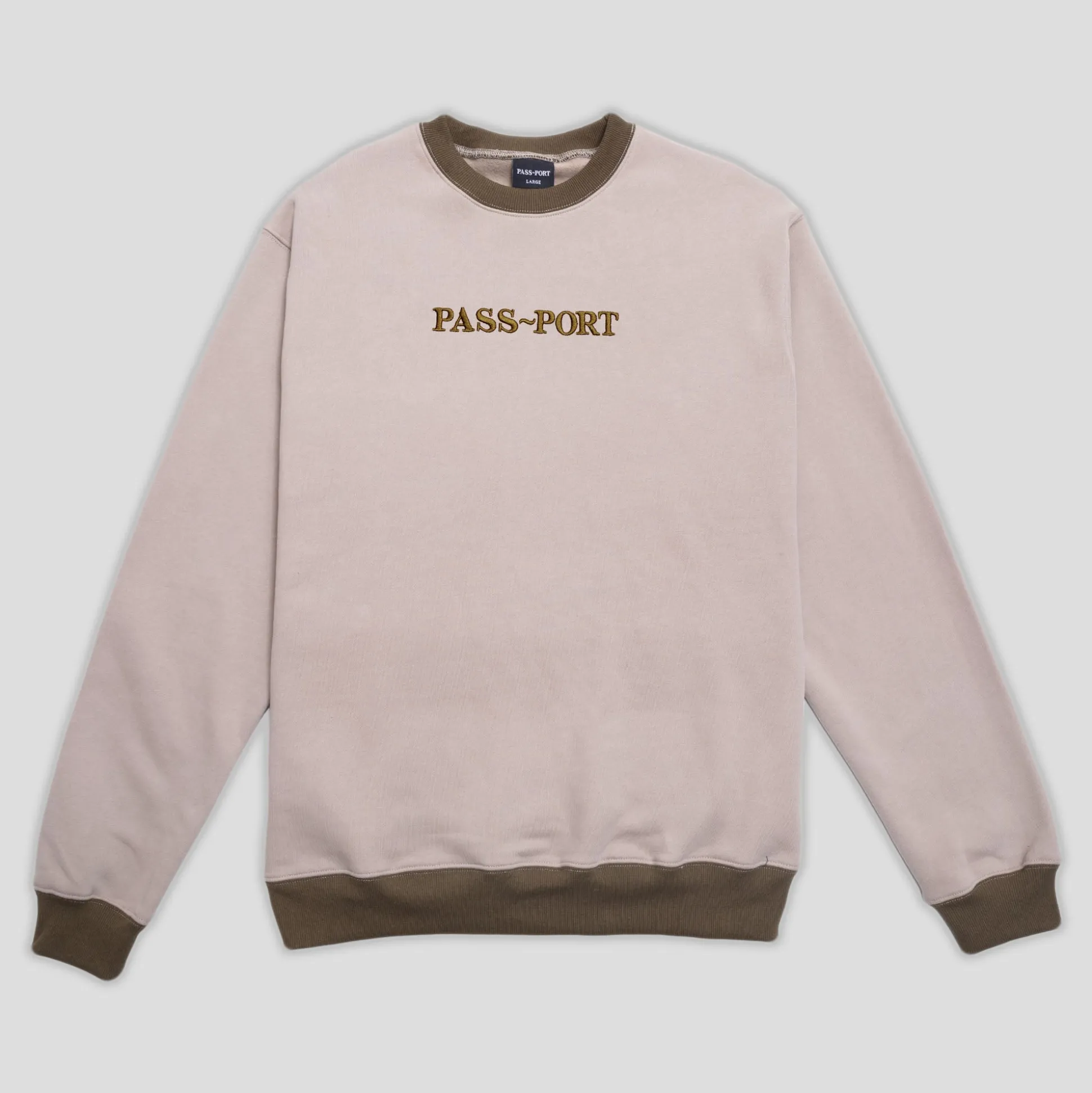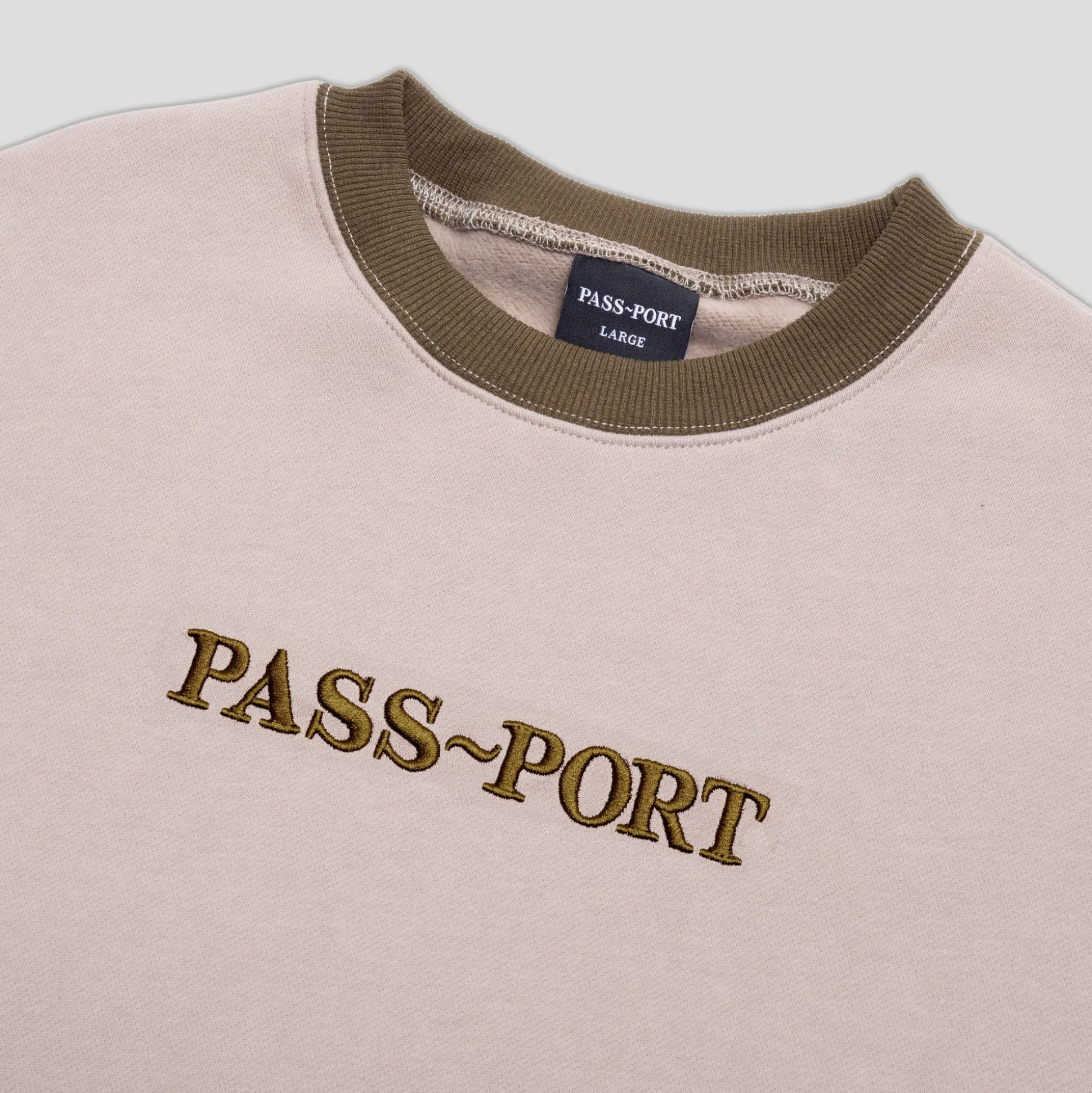Pass~Port Official Contrast Organic crewneck in kahki is apart of the organic clothing collection for range #40. The Pass~Port organic jumper is made from 100% organically grown cotton and features Pass~Port embroidery on front in the classic sweater fit.