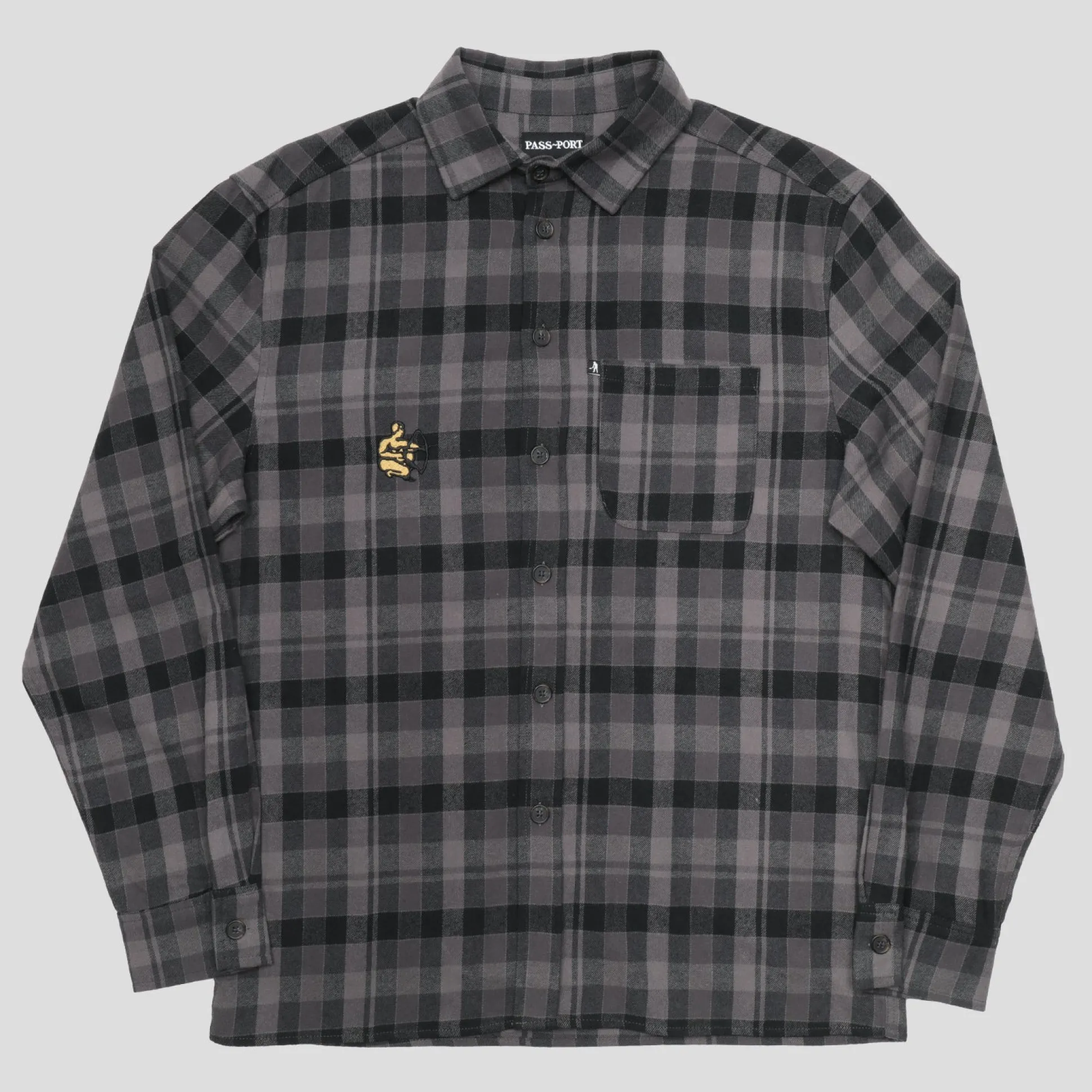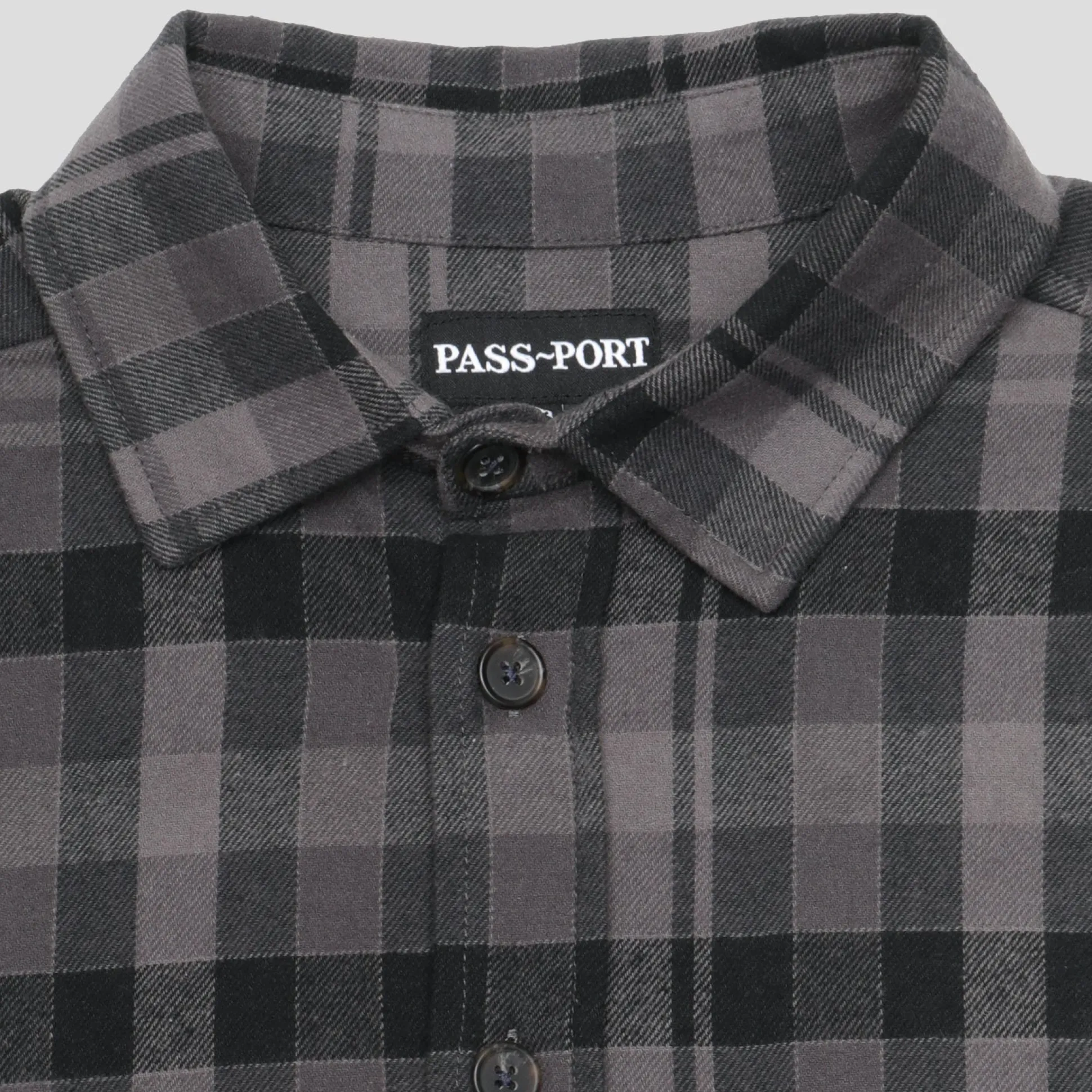 Pass~Port Potters Mark workers flannel in grey from range #38. Made from 100% cotton flannel with Potters Mark embroidery on front