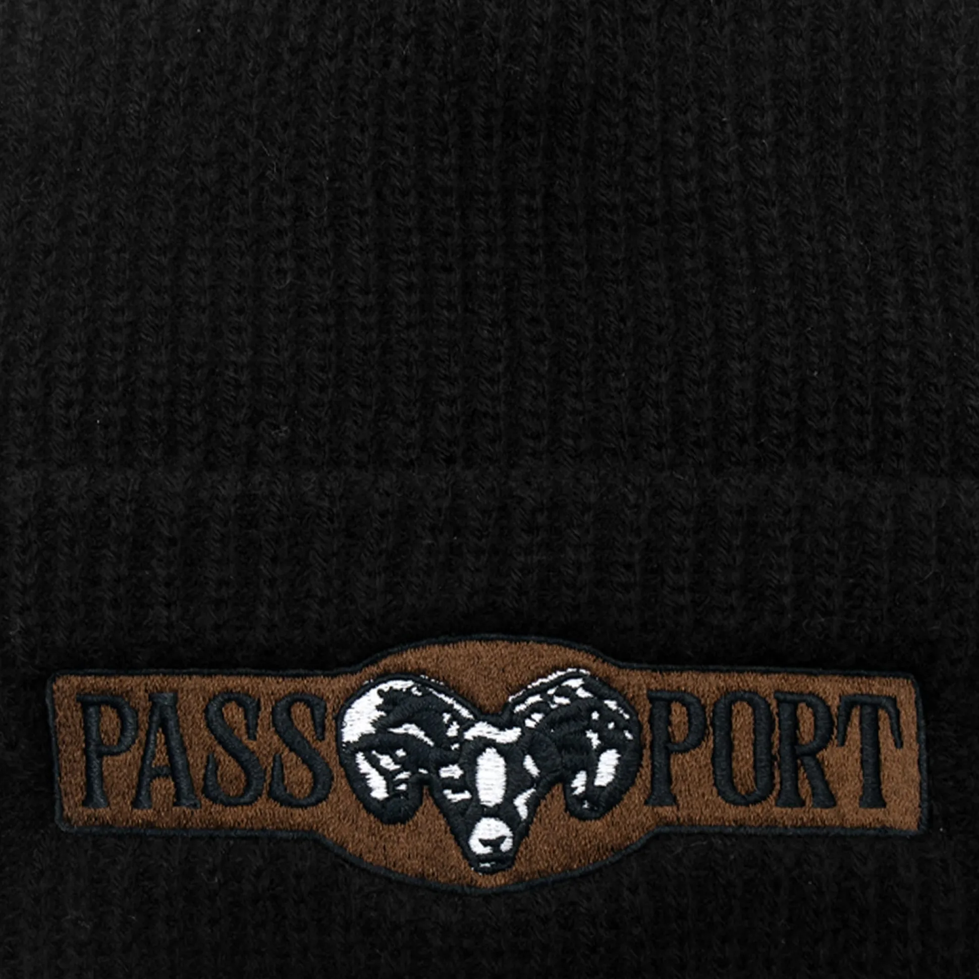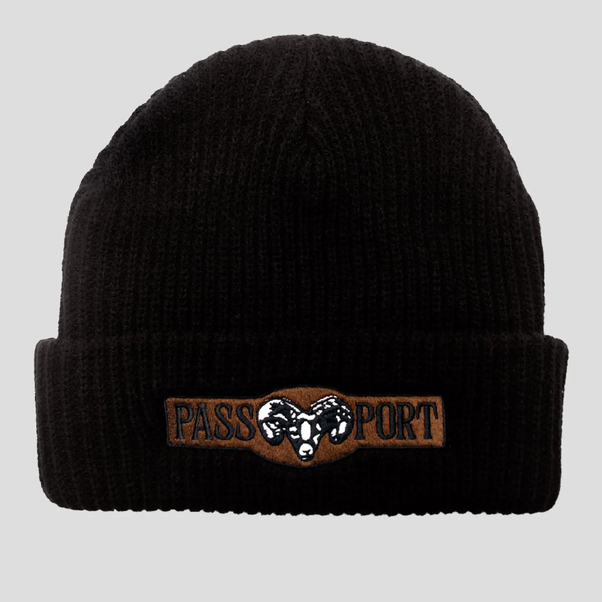 Pass~Port Ram beanie from range #43. The Pass~Port beanie is made from 100% acrylic and features direct embroidered patch on the front which is finished in the classic Pass~Port beanie fit.