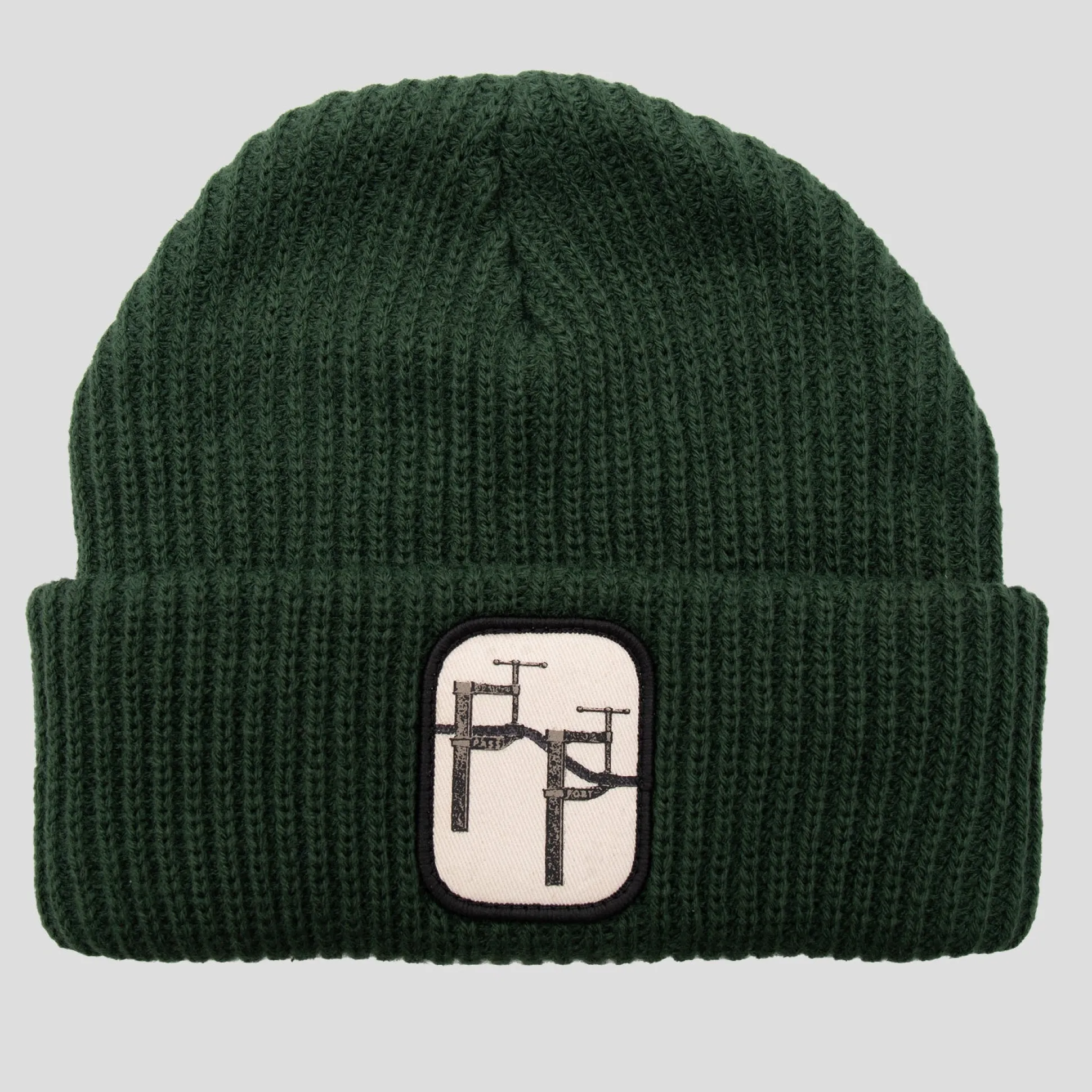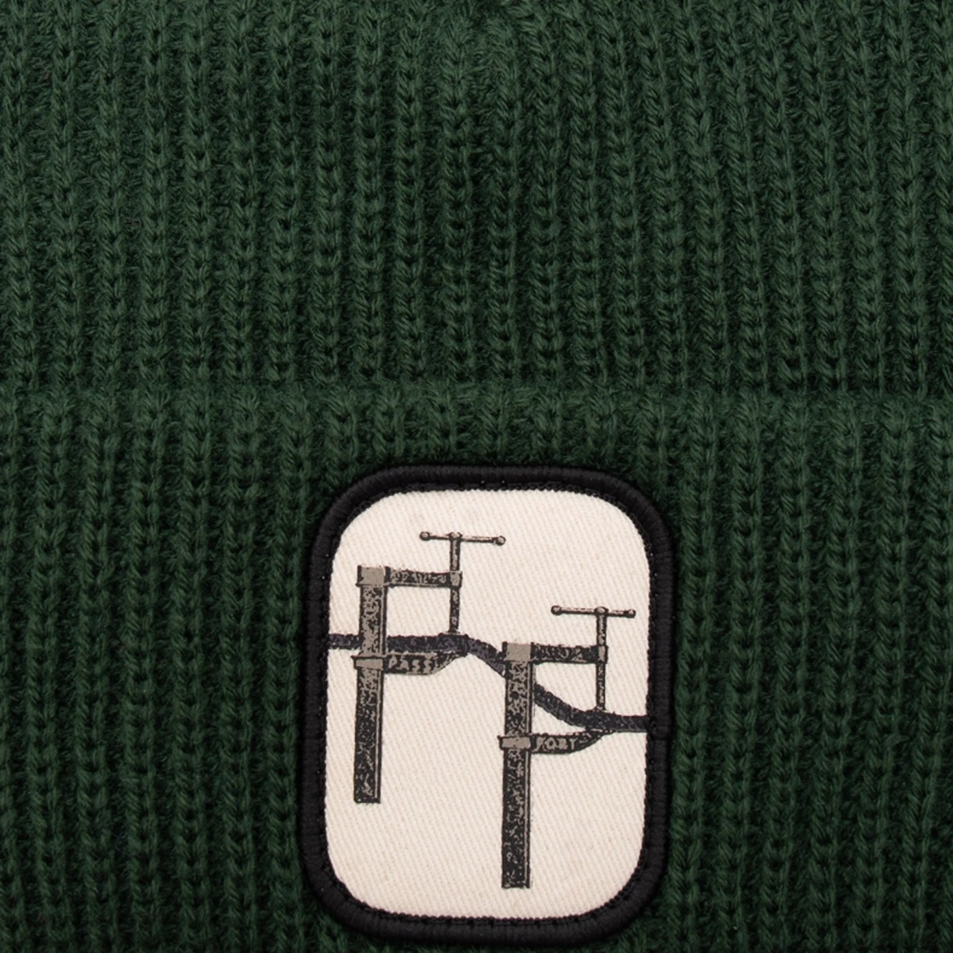 Pass~Port Re~Bar beanie in forest green from range #42. The Pass~Port beanie is made from 100% acrylic and features single screen printed patch on the front which is finished in the classic Pass~Port beanie fit.