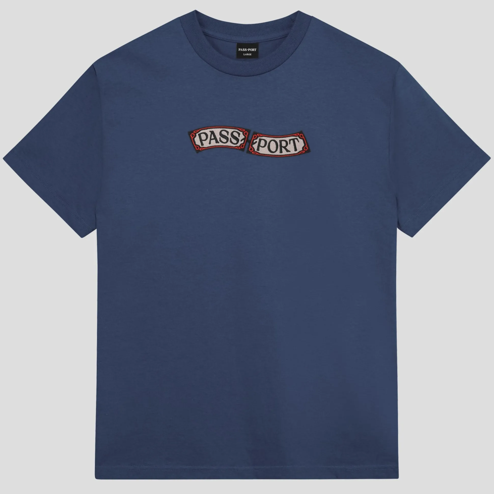 Introducing Range #44: The Pass-Port Red Flag tee in harbour blue is made from 100% cotton and features a direct embroidered front and screen printed back graphic. It offers the signature Pass-Port fit.