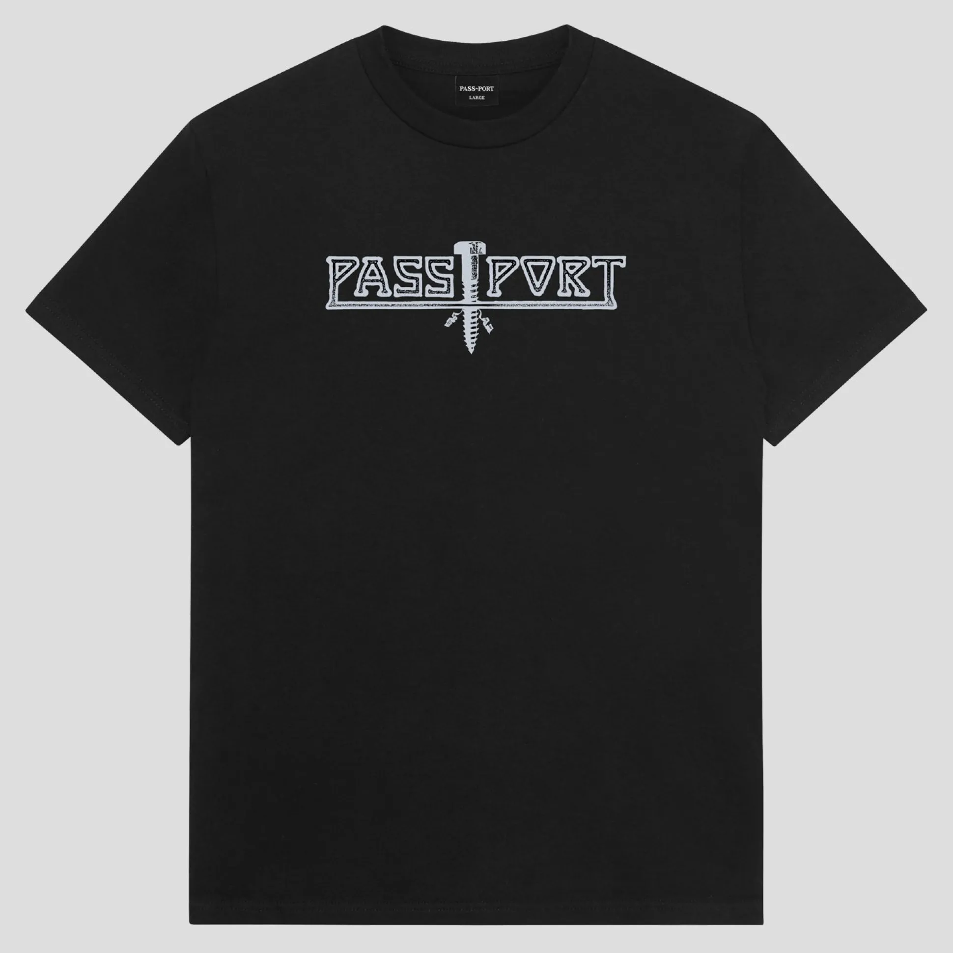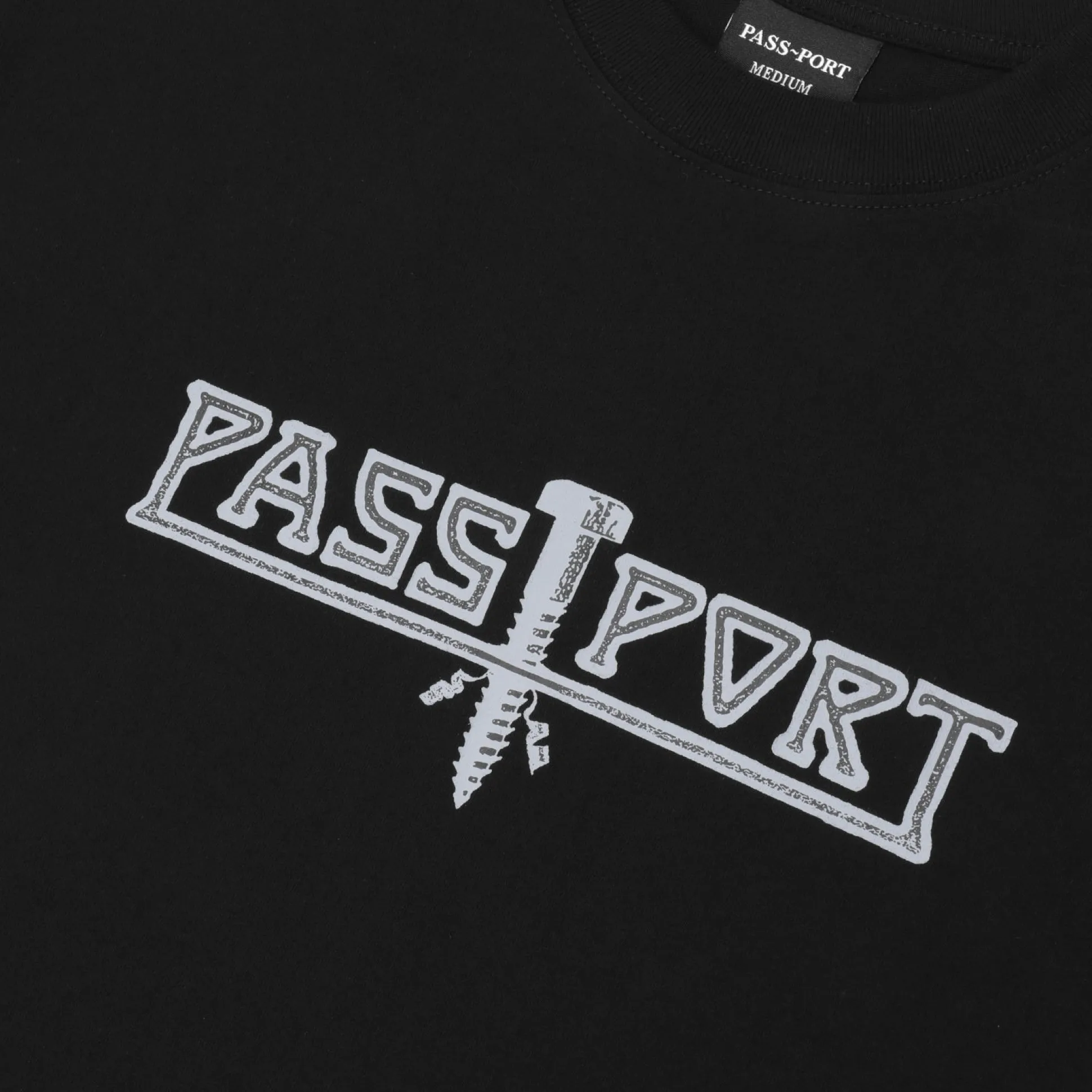 Introducing Range #44: The Pass-Port Screwed tee in black is made from 100% cotton and features a screen printed graphic on front. It offers the signature Pass-Port fit.